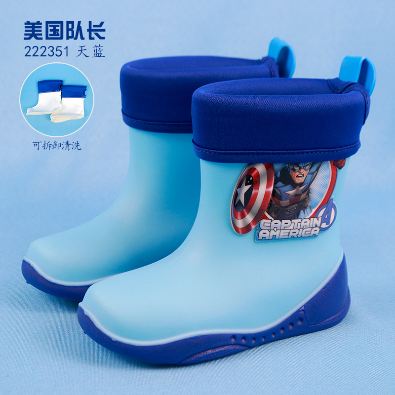 어린이 비 부츠 장화 소년 캡틴 아메리카 중간 실린더 미끄럼 방지 PVC 방수 분리 가능한 라이너 IV