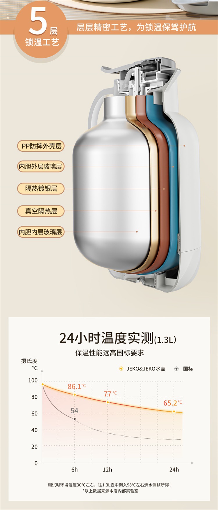 JEKO 보온병 가정용 대용량 보온병 유리 라이너 보온병 주전자 학생 기숙사 보온병 주전자