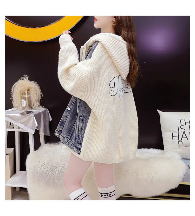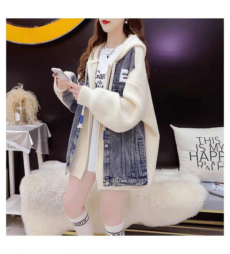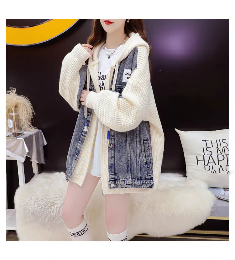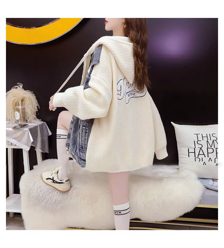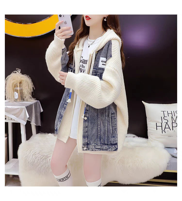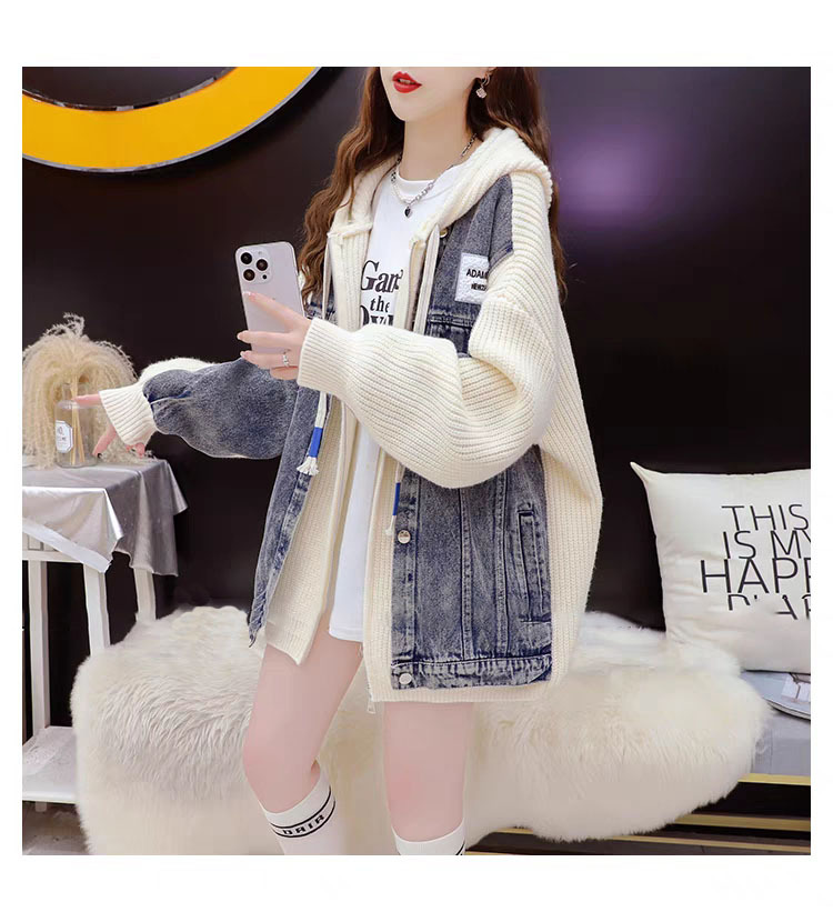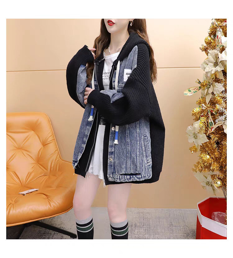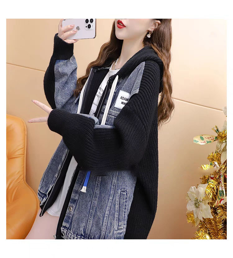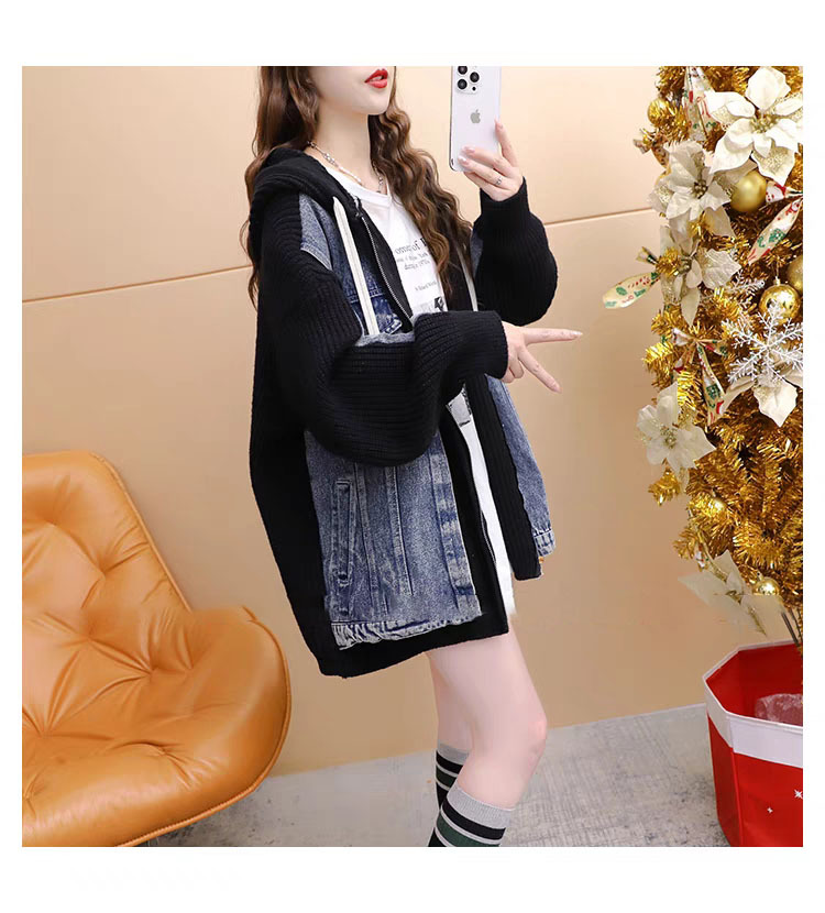 여성을위한 느슨한 가짜 투피스 디자인 지퍼 캐주얼 스웨터 카디건 2025 새로운 가을, 겨울 스플 라이스 니트 자켓스토어 가기