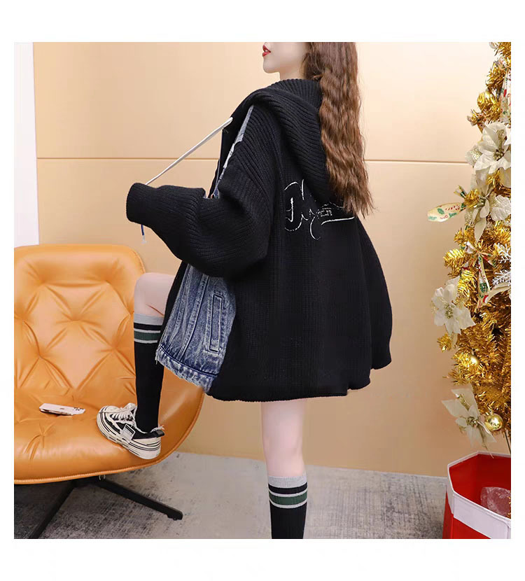 여성을위한 느슨한 가짜 투피스 디자인 지퍼 캐주얼 스웨터 카디건 2025 새로운 가을, 겨울 스플 라이스 니트 자켓