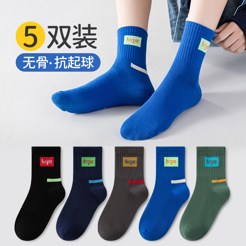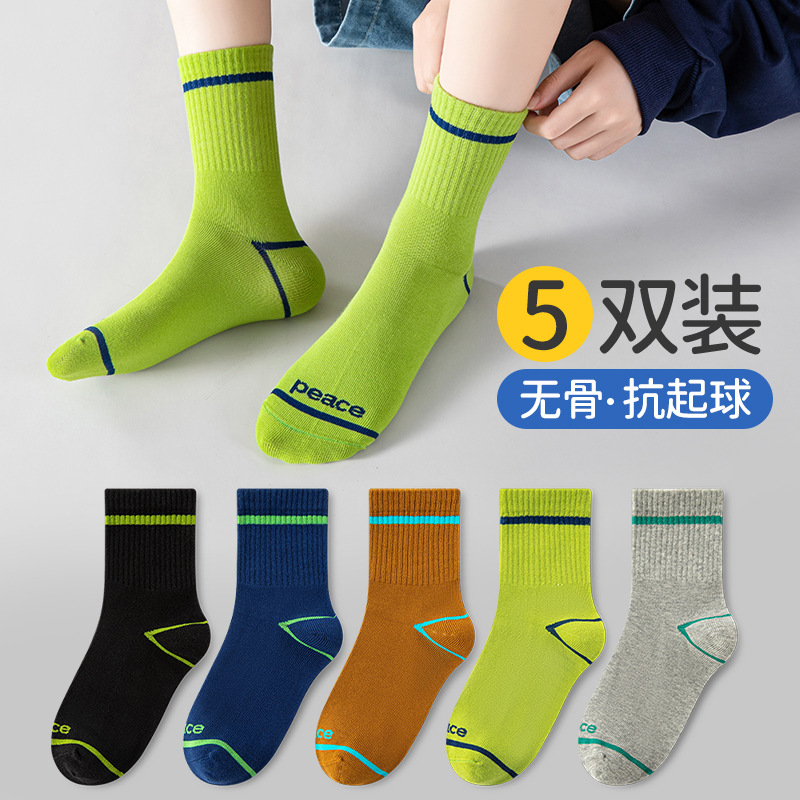어린이 양말 소년 봄과 가을 얇은 뼈없는 중간 길이 양말 아기 스포츠 면 양말 십대 가을과 겨울 농구 양말
