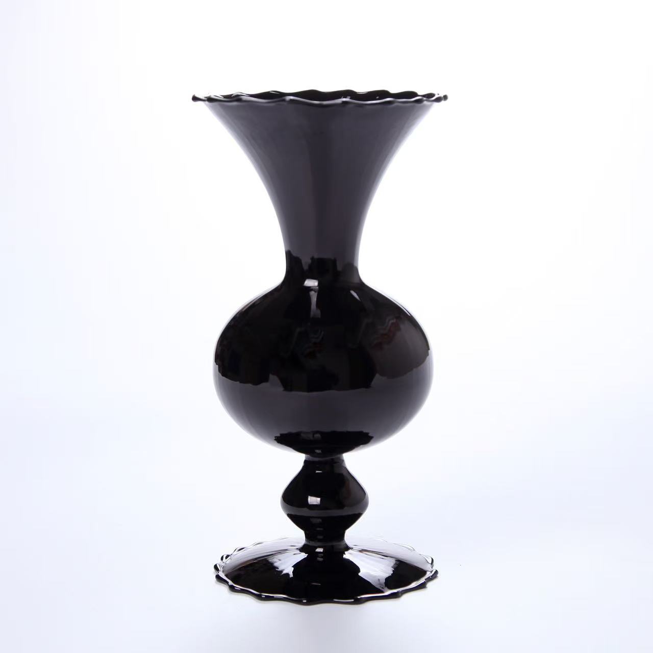 중간 고대 검은 꽃병 작은 빨간 책 검은 질산염 꽃 장치 거실 연구 다실 꽃 가게 우아한 유리 공예 장식품