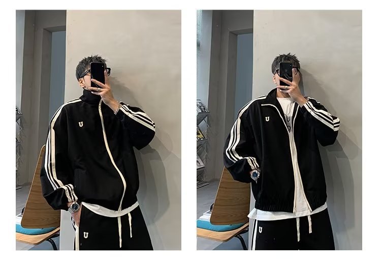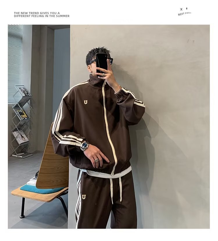 스포츠 세트 소년 가을 미국 스타일 유행 브랜드 느슨한 재킷 캐주얼 하이 스트리트 바지 봄과 가을 투피스 세트스토어 가기