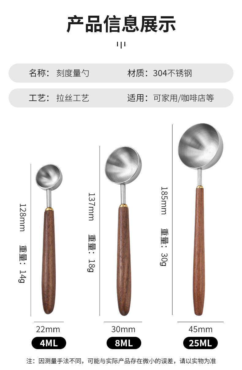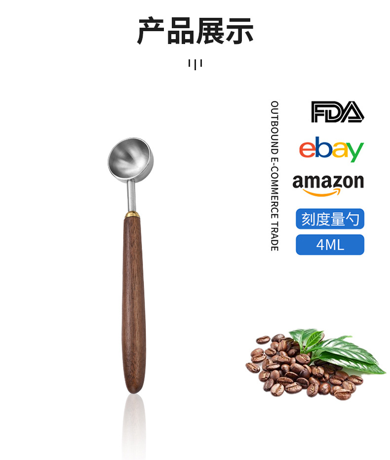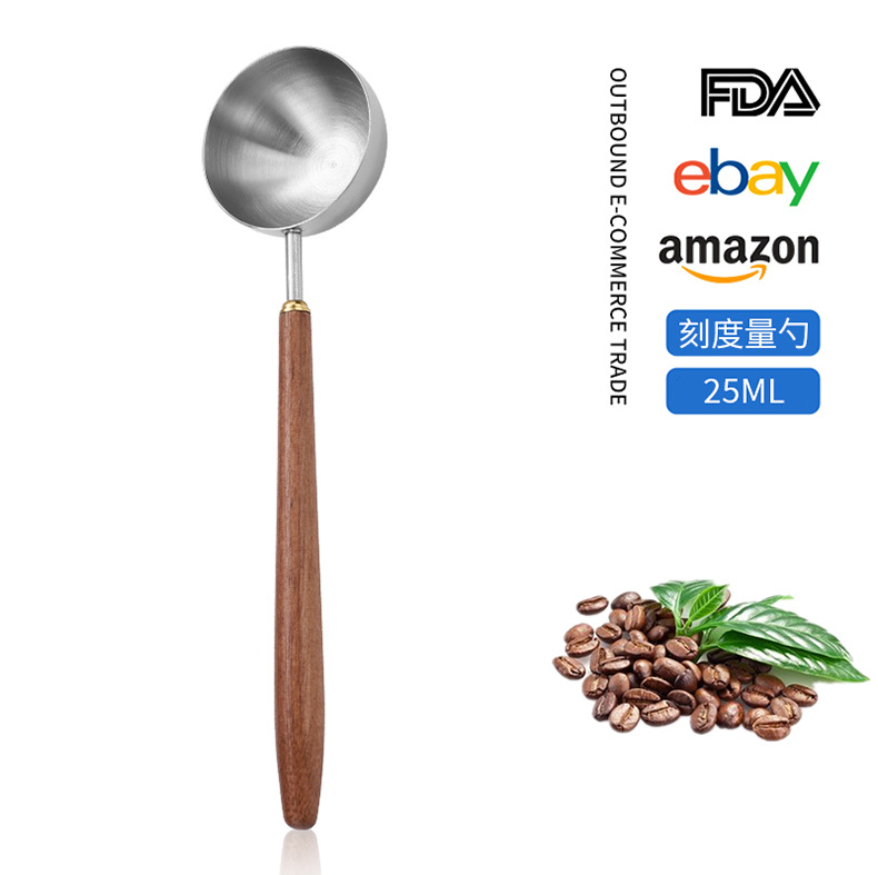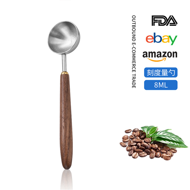 국경 간 304 스테인레스 스틸 커피 원두 측정 스푼 호두 손잡이 음식 저울 스푼 과일 가루 우유 차 가루 조미료 스푼