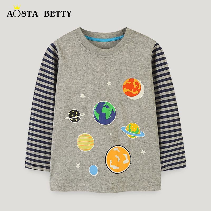 가을 새로운 빛나는 어린이 긴팔 티셔츠 유럽과 미국 스타일의 패션 바느질 톱 소년의 면베이스 셔츠스토어 가기