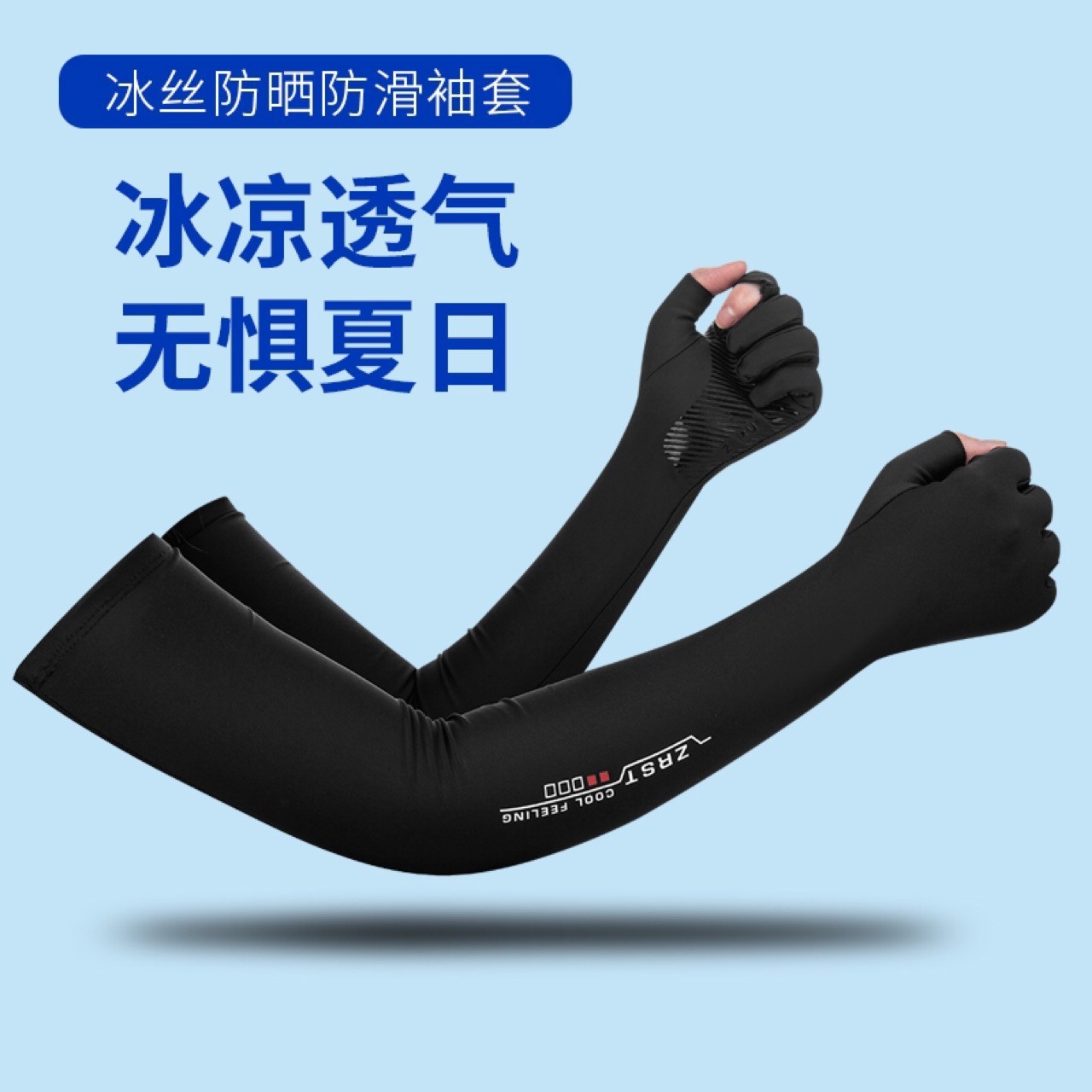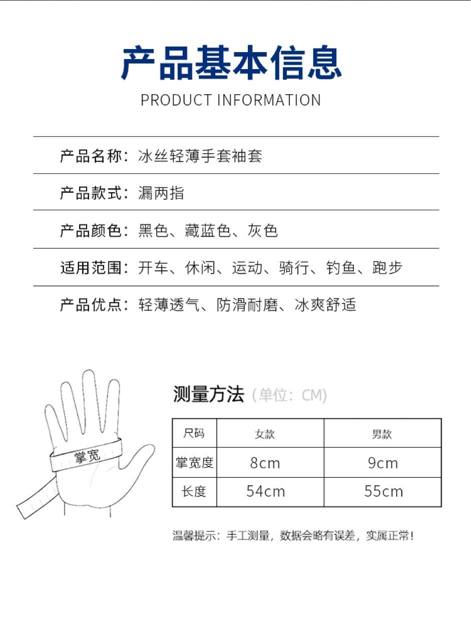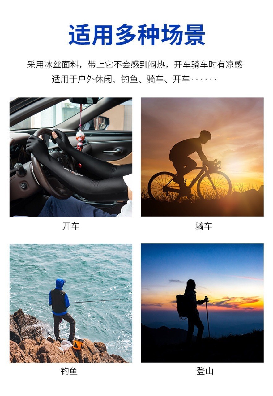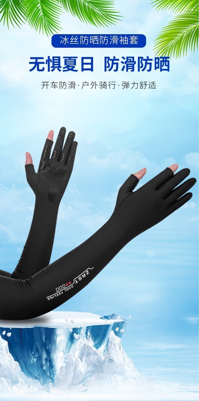 긴 얼음 소매 태양 보호 장갑 남성 승마 아이스 실크 긴 소매 얇은 운전 미끄럼 방지 두 손가락 장갑 여성스토어 가기