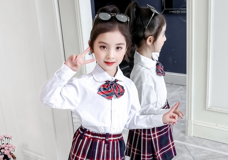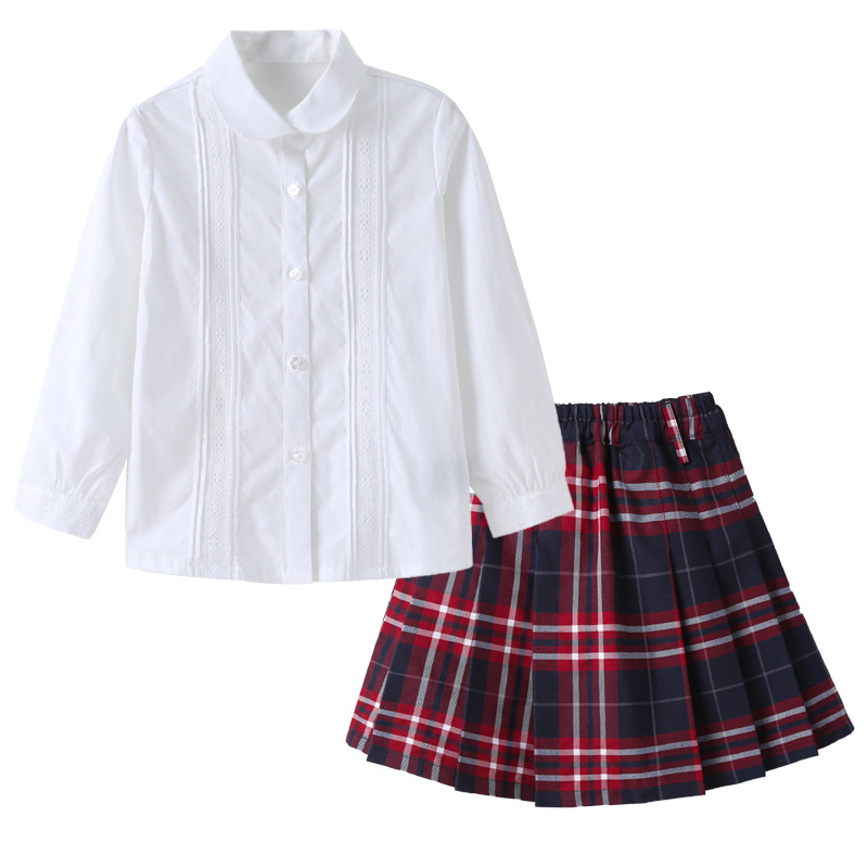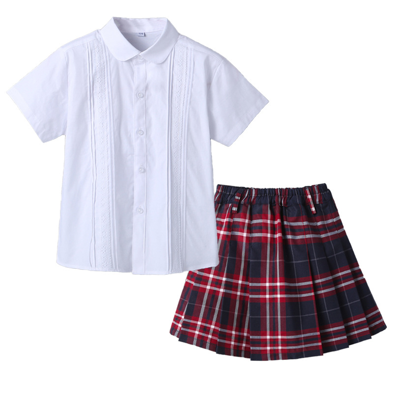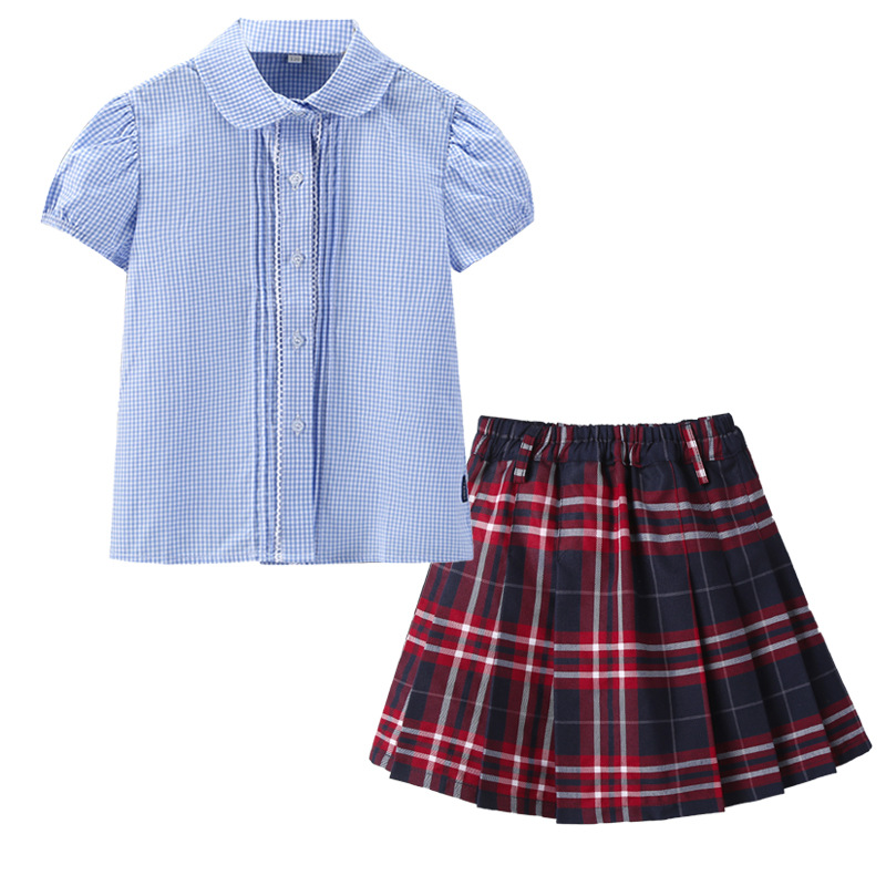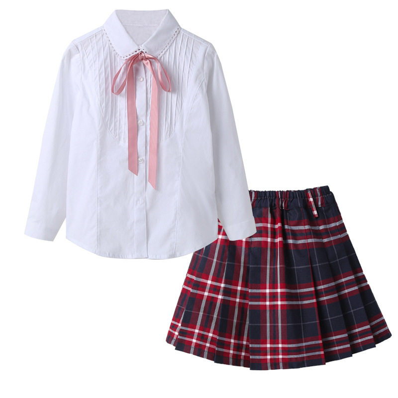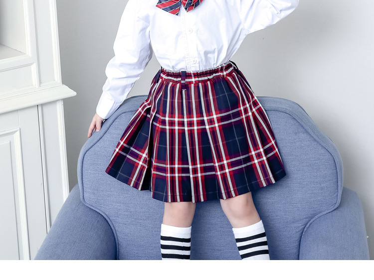 여아 스커트 세트 투피스 중대형 아동 교복 체크무늬 짧은 치마 아동복 봄 가을 플리츠 스커트 영국 스타일