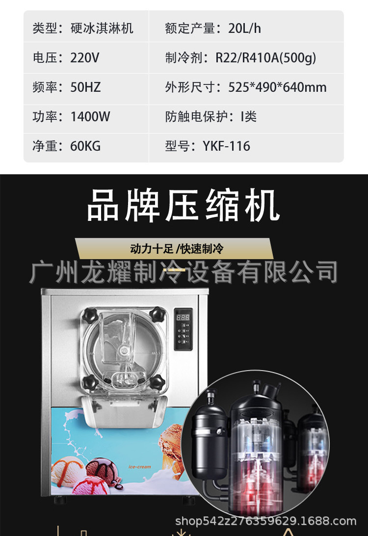 • 버튼형 하드 아이스크림 기계 YKF-116