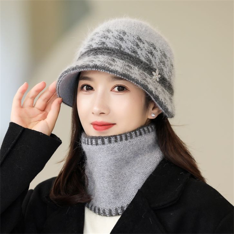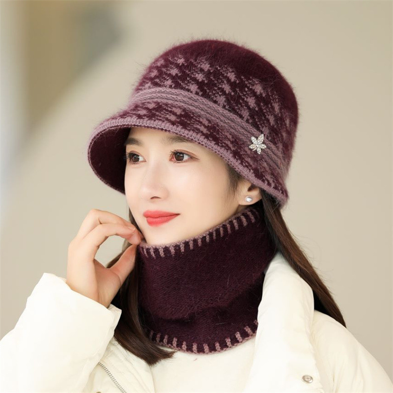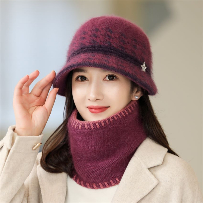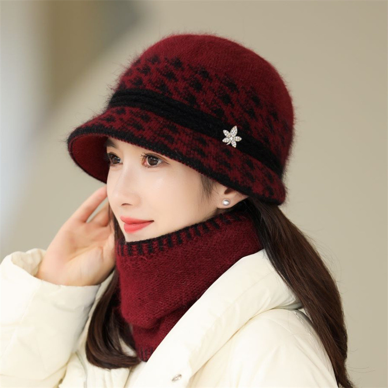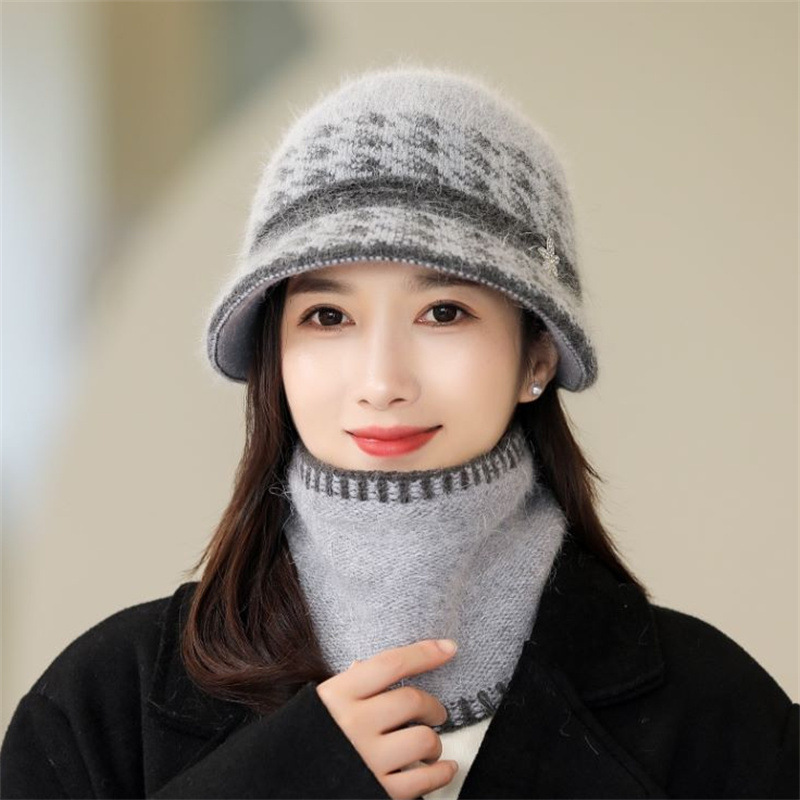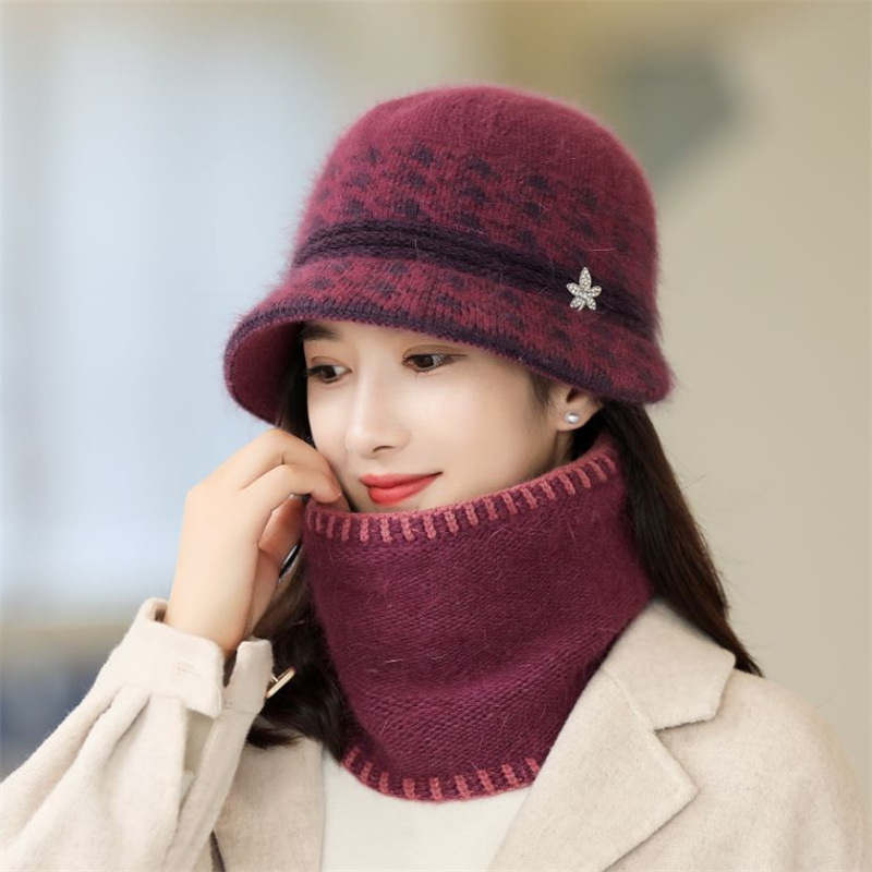중년과 노인 모자 여성 겨울 어머니 따뜻한 모자 기모 두꺼운 오래 된 모자 할머니 분지 모자 오래 된 니트 모직 모자스토어 가기