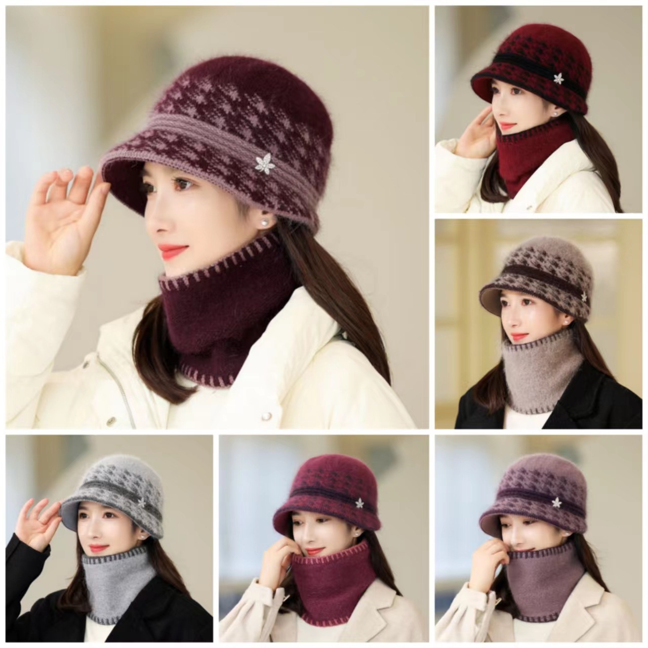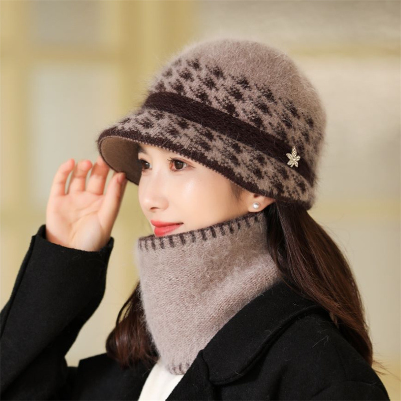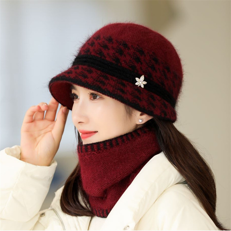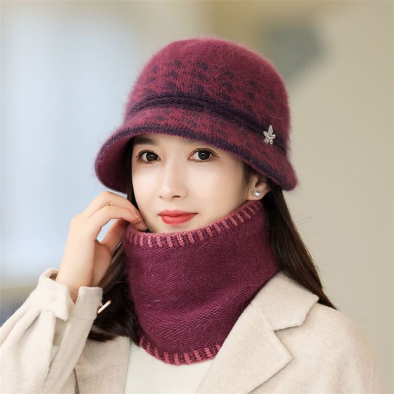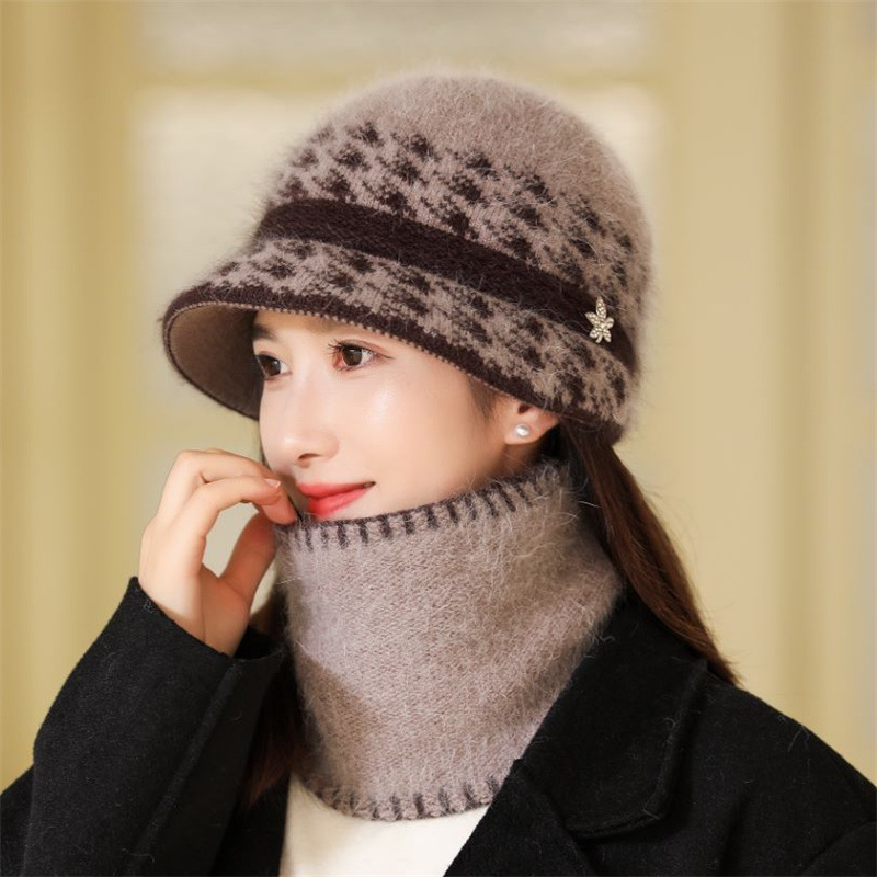 중년과 노인 모자 여성 겨울 어머니 따뜻한 모자 기모 두꺼운 오래 된 모자 할머니 분지 모자 오래 된 니트 모직 모자스토어 가기