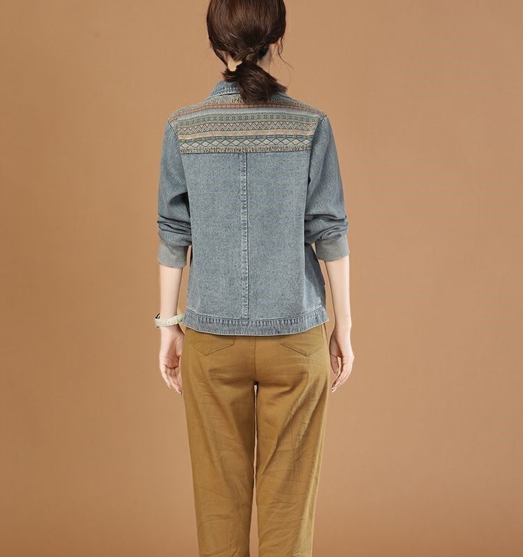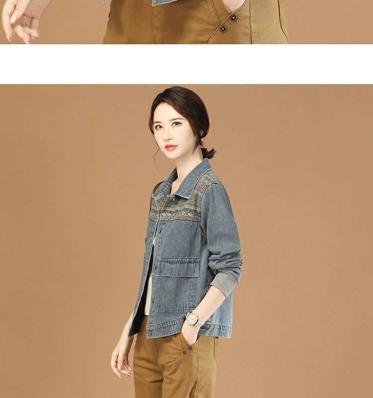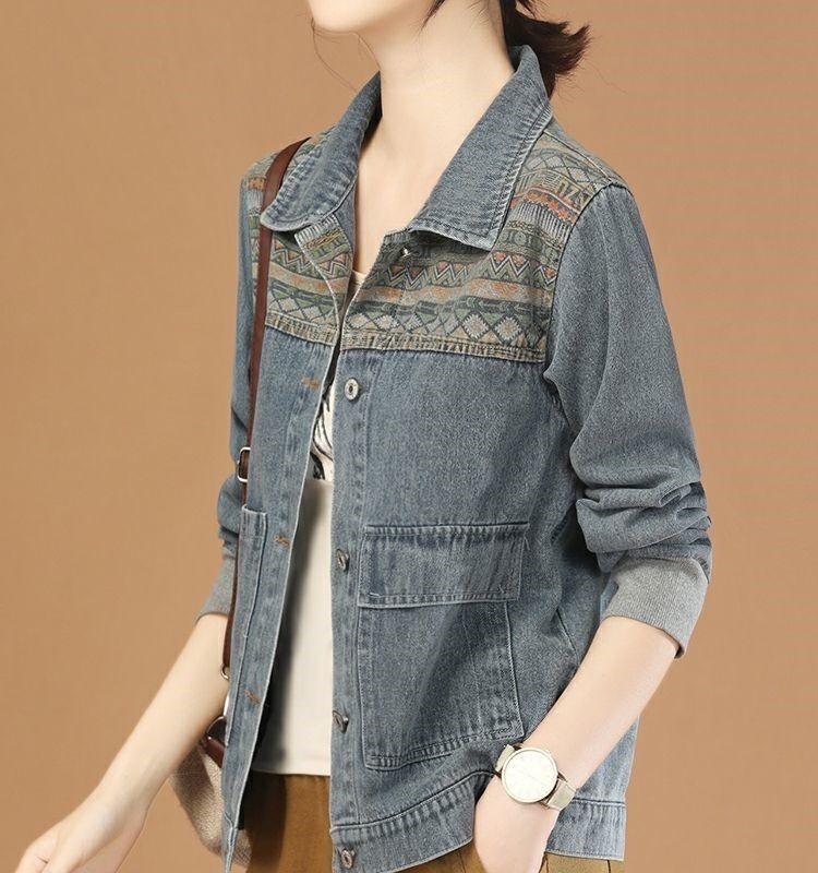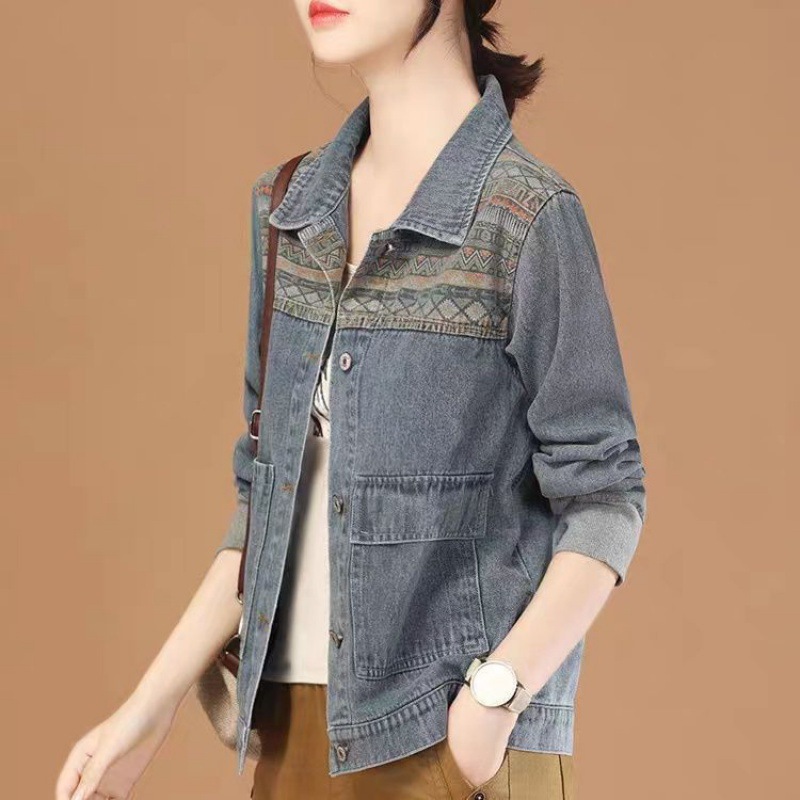 여성용 데님 재킷 2025 봄 가을 레트로 스티치 긴팔 캐주얼 재킷 상의