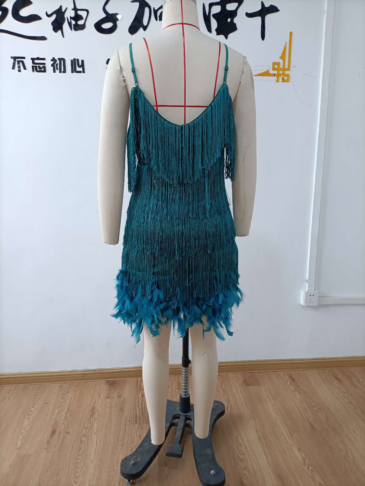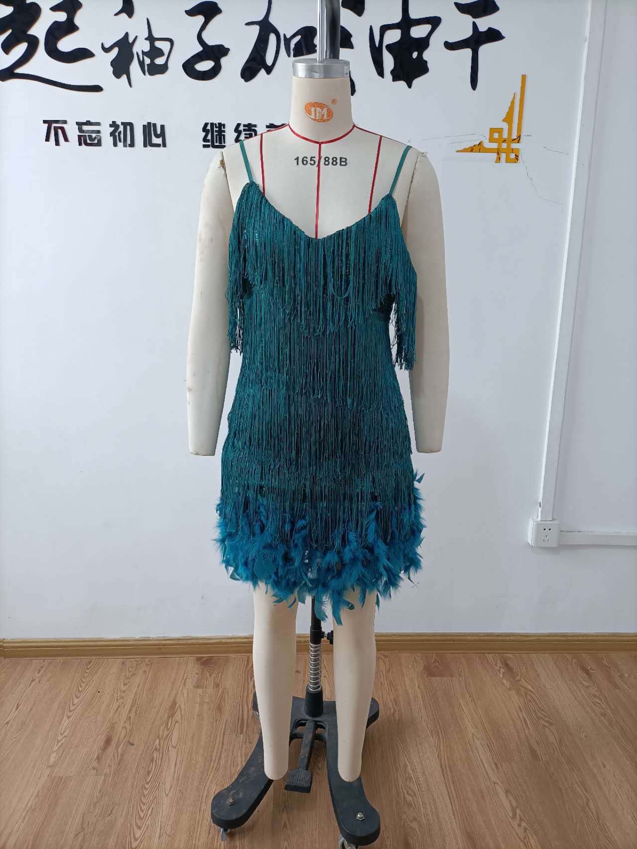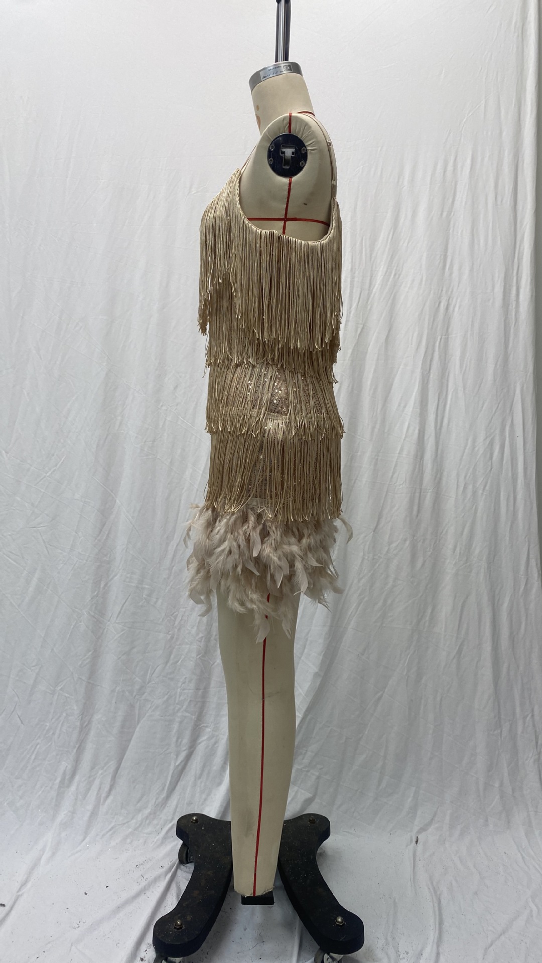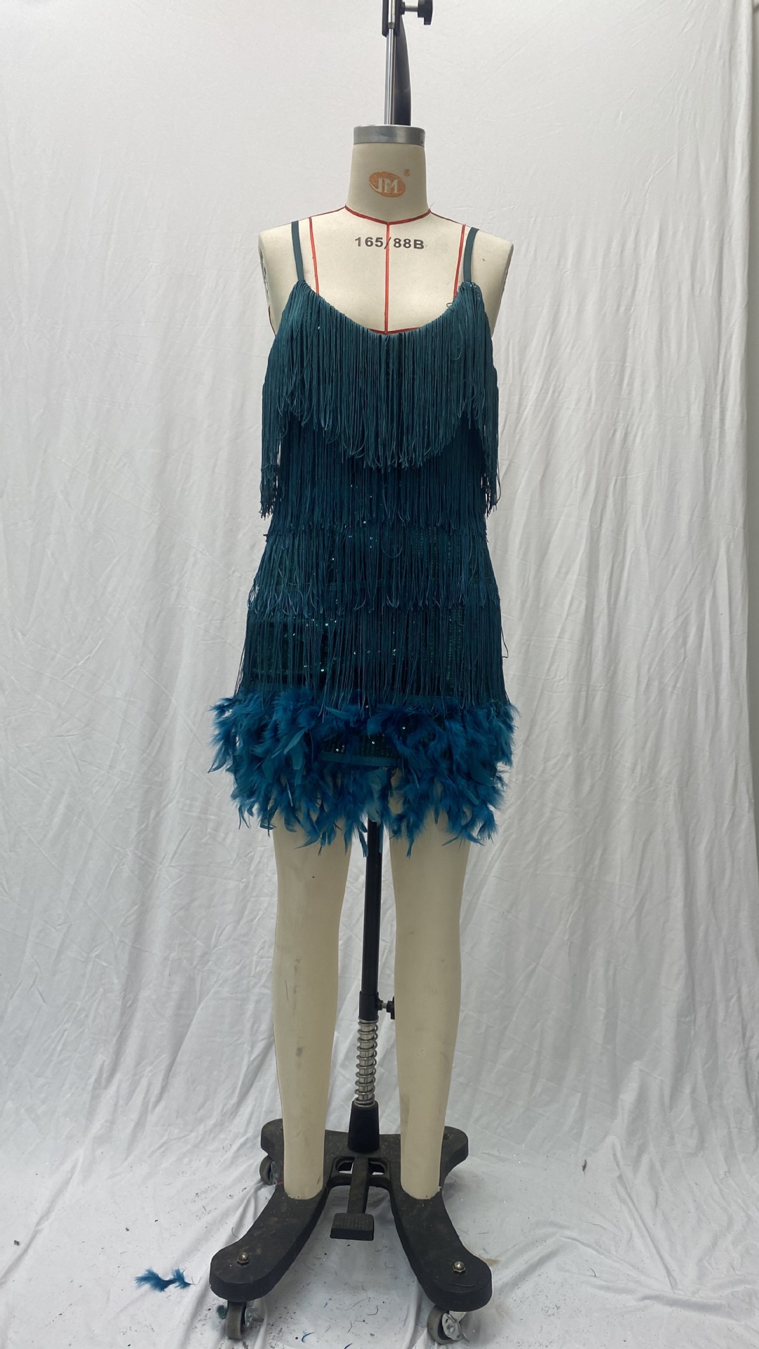 2025 년 여름 새로운 패션 술 sequins 깃털 스티칭 원피스 색상 원피스 아마존 여성 폭발 재고