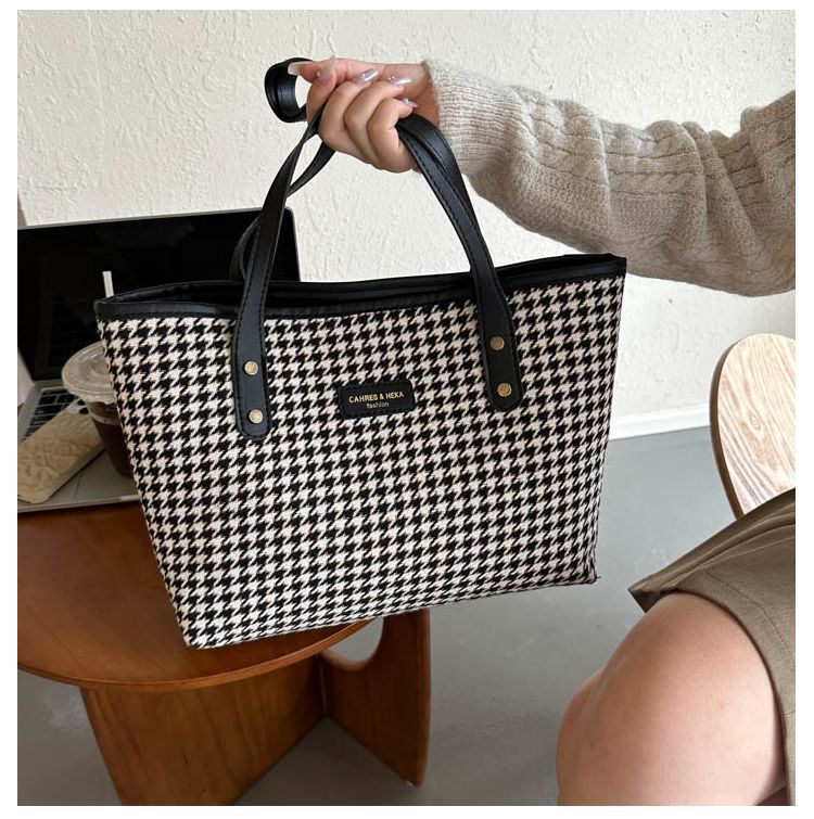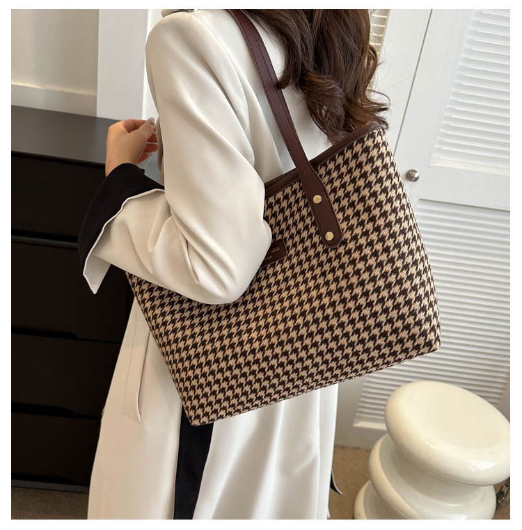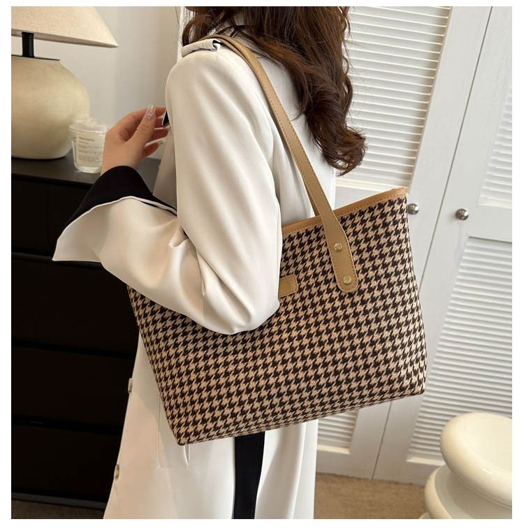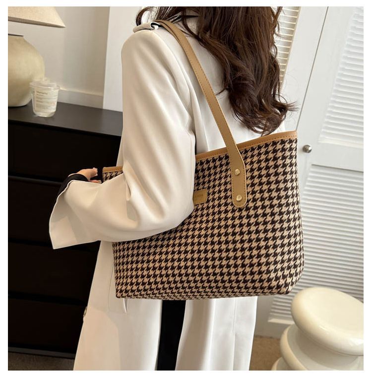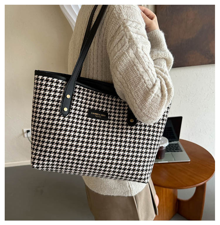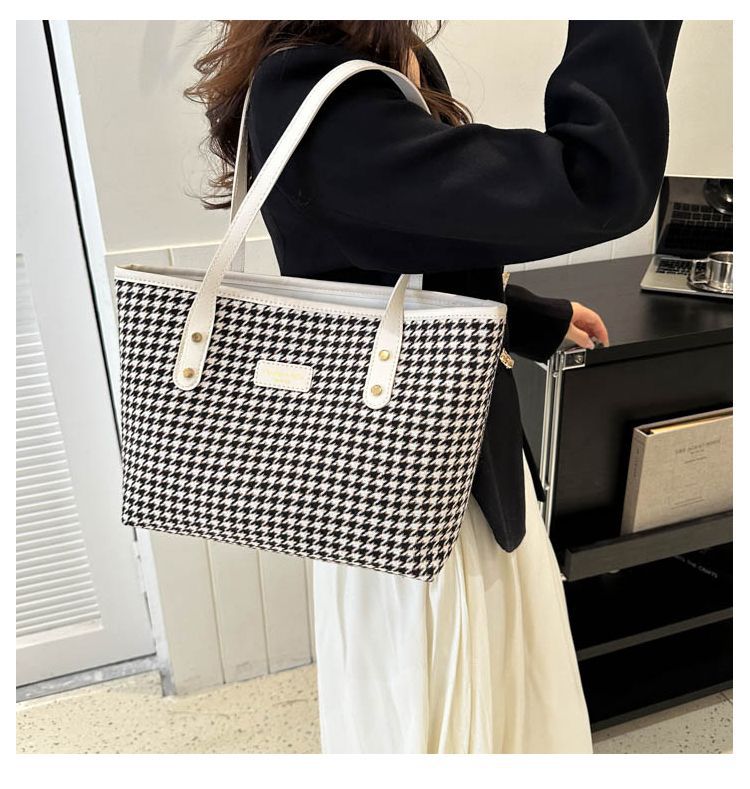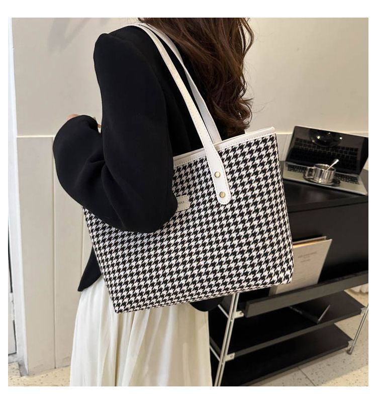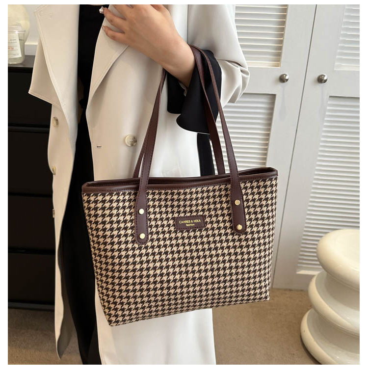 Houndstooth 가방 2025 새로운 복고풍 고급 질감 숄더백 통근 대용량 휴대용 여성용 토트 백