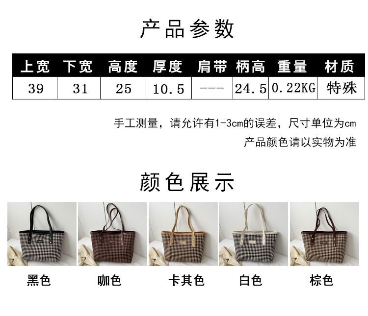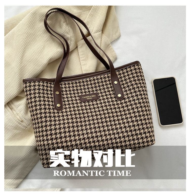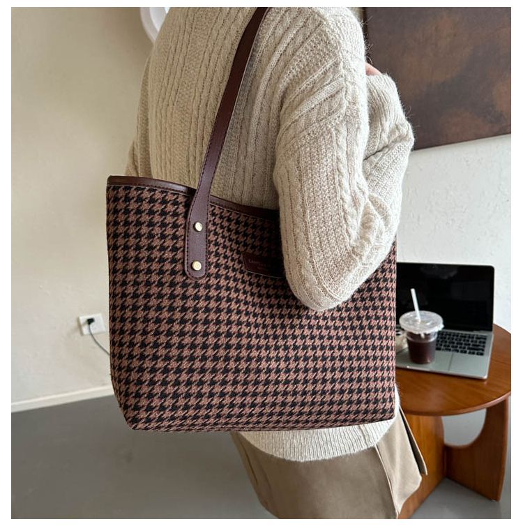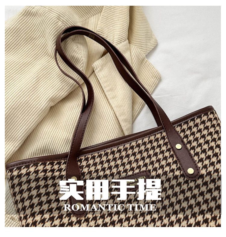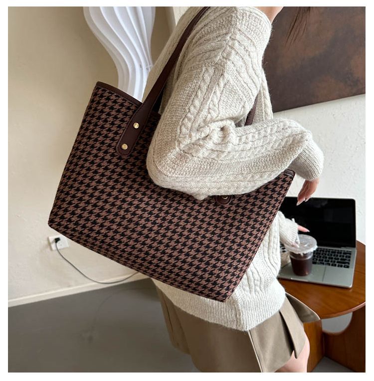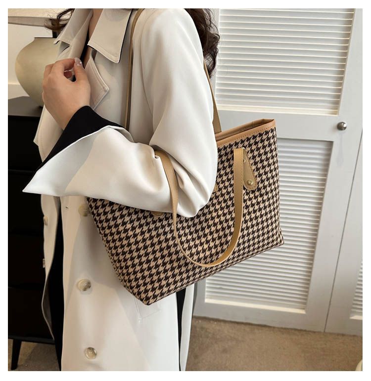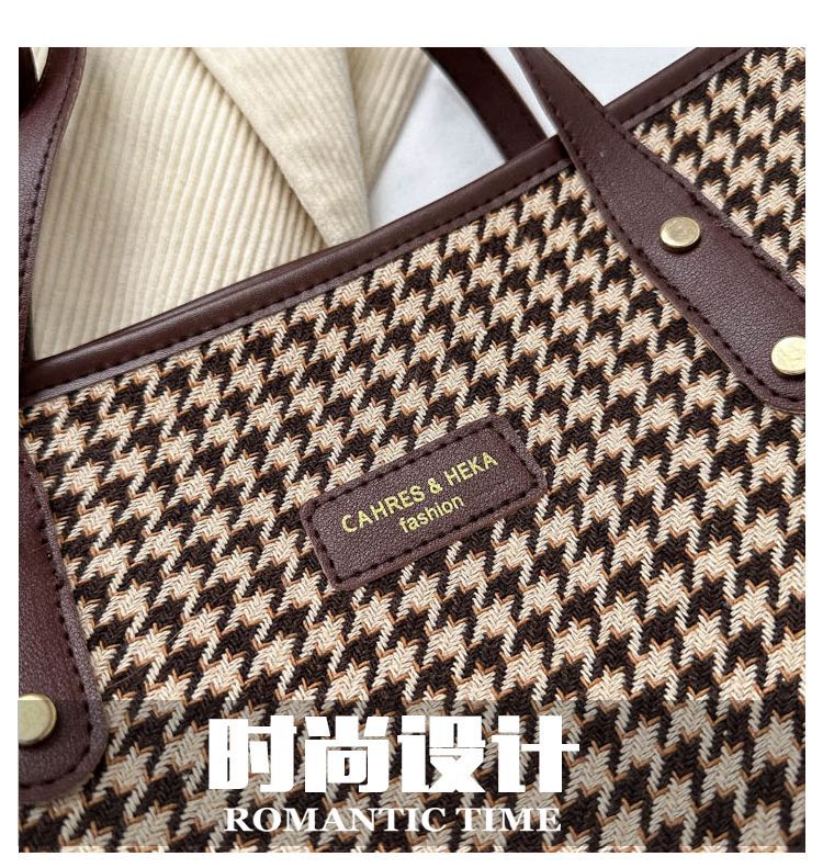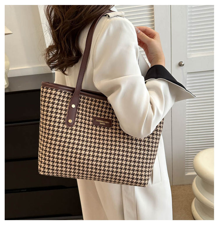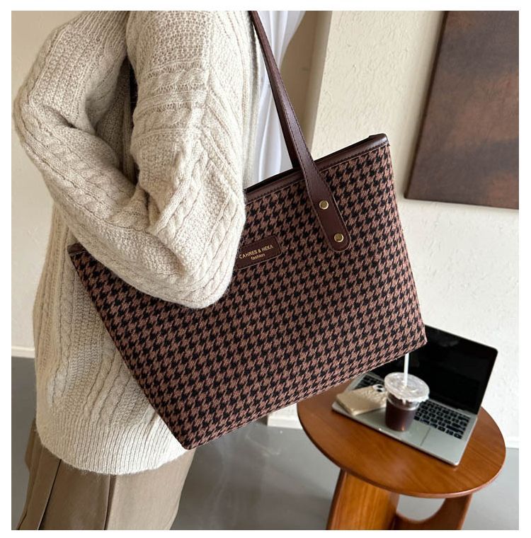 Houndstooth 가방 2025 새로운 복고풍 고급 질감 숄더백 통근 대용량 휴대용 여성용 토트 백