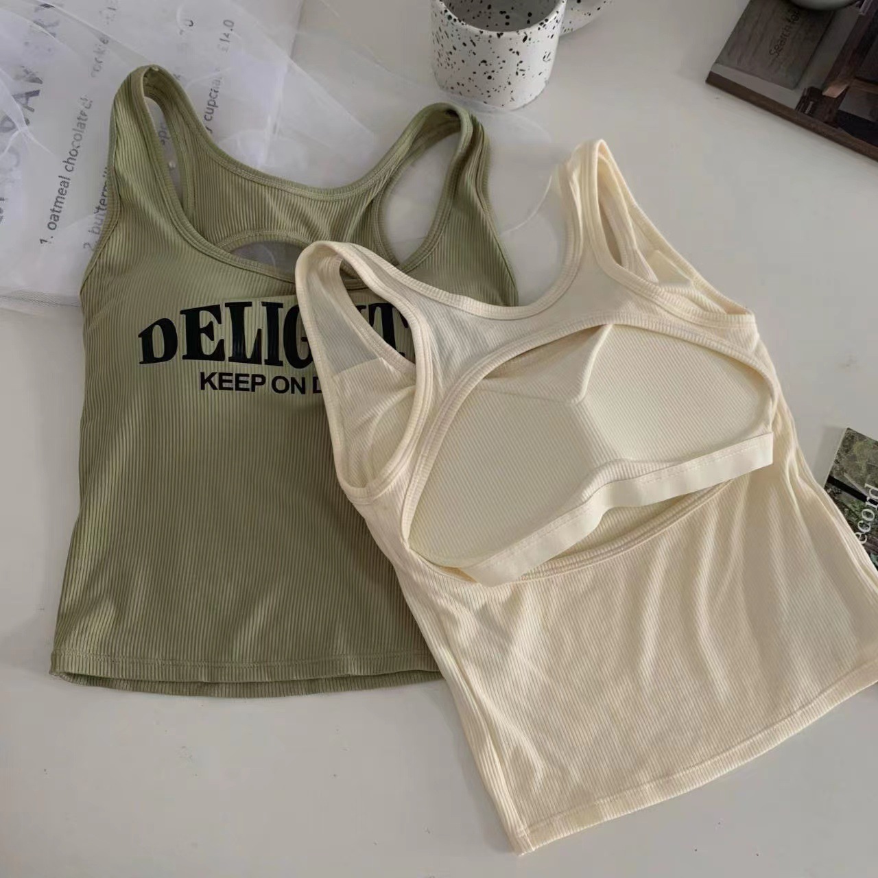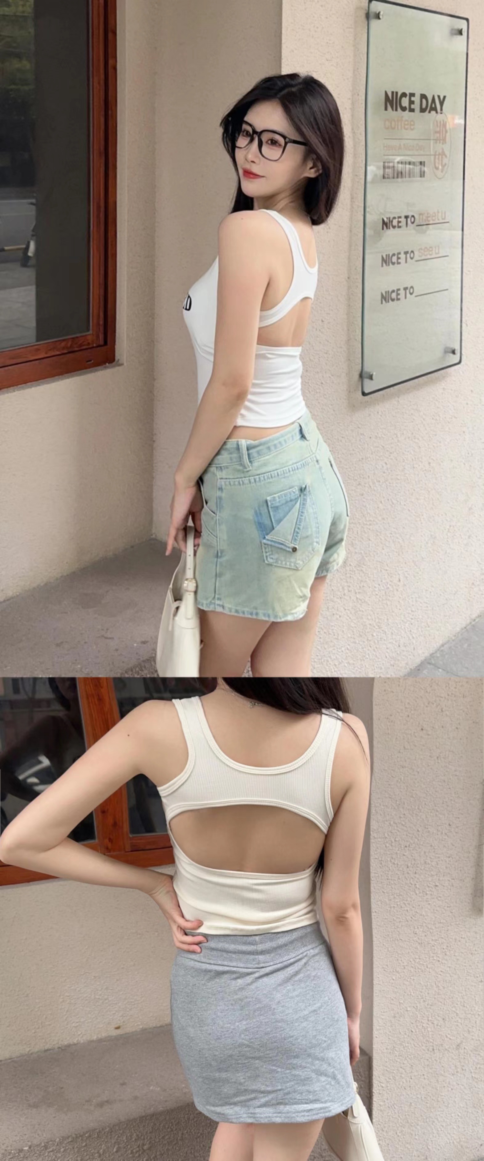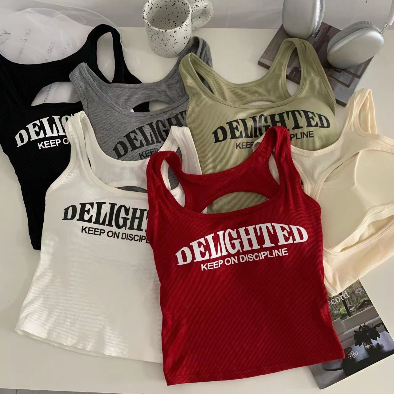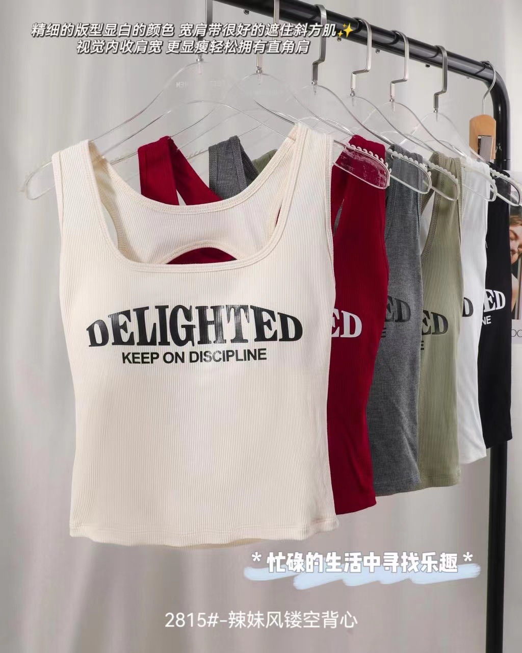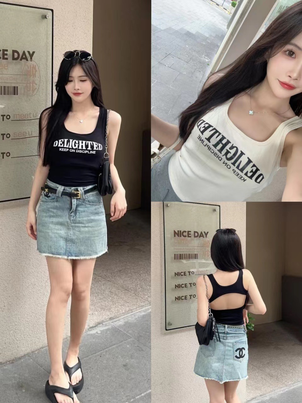 새로운 한국식 백 중공 스파이스 걸 패션 조끼 여성용 편안한 내부 슬링 슬림 레터 프린트 탑 트렌디스토어 가기