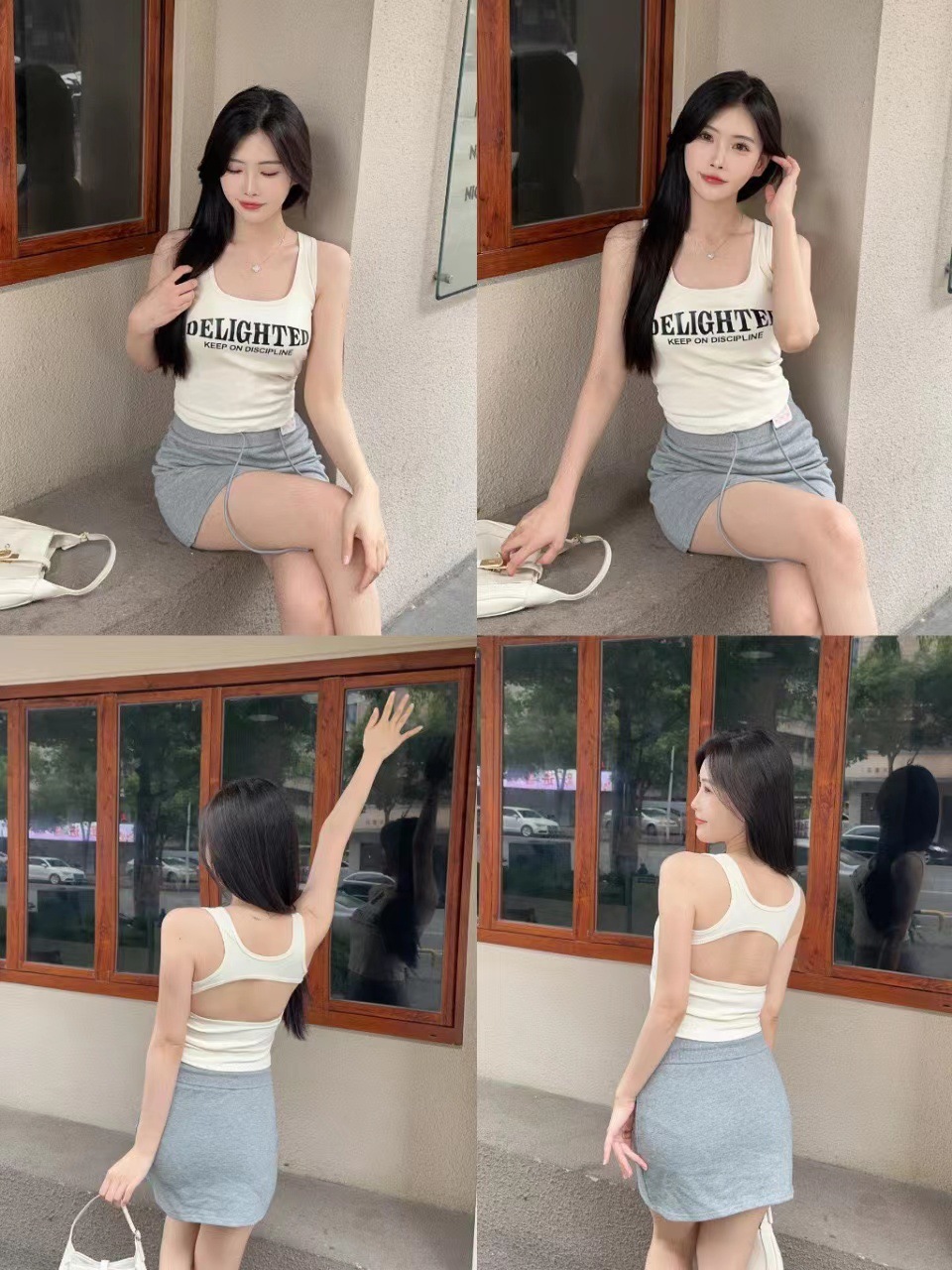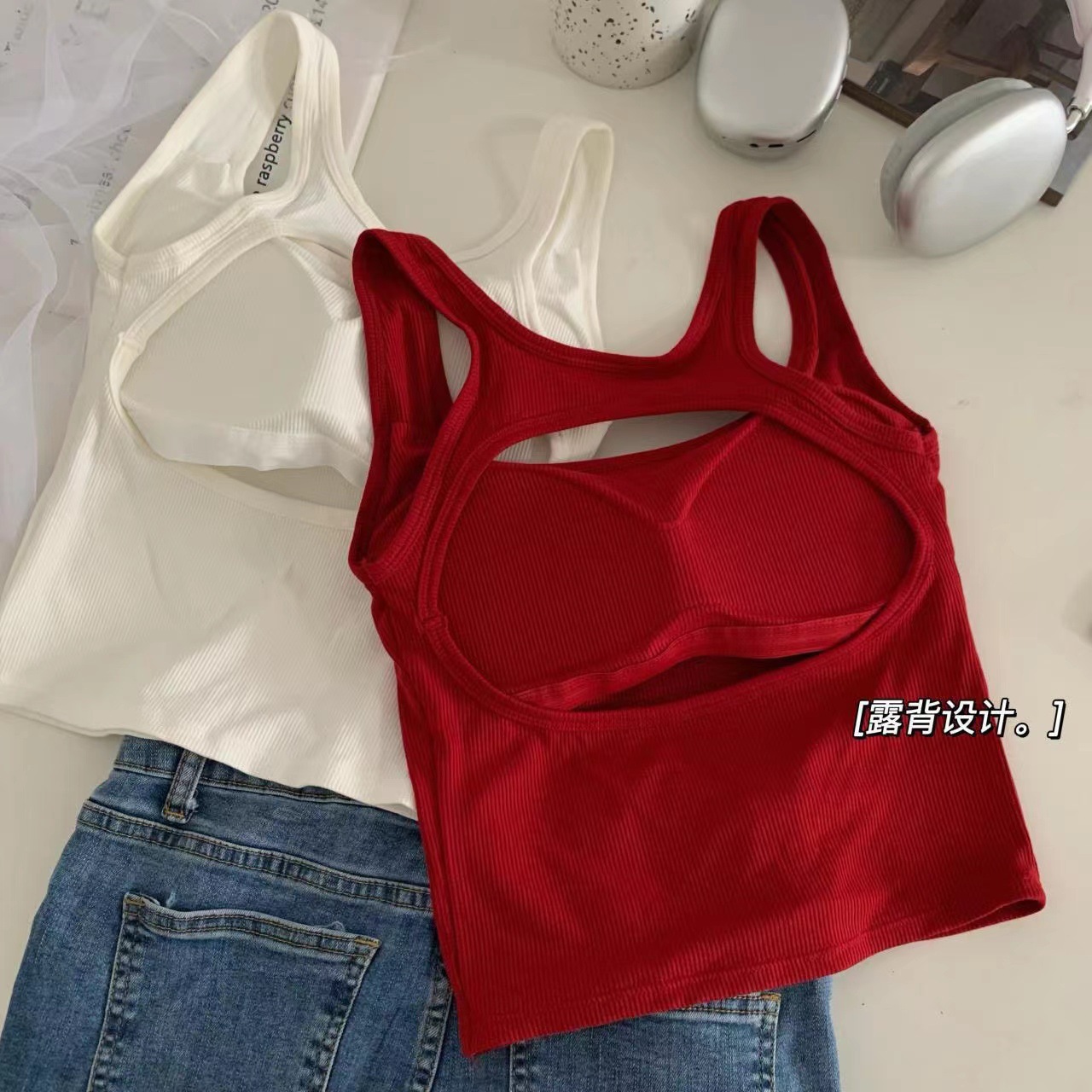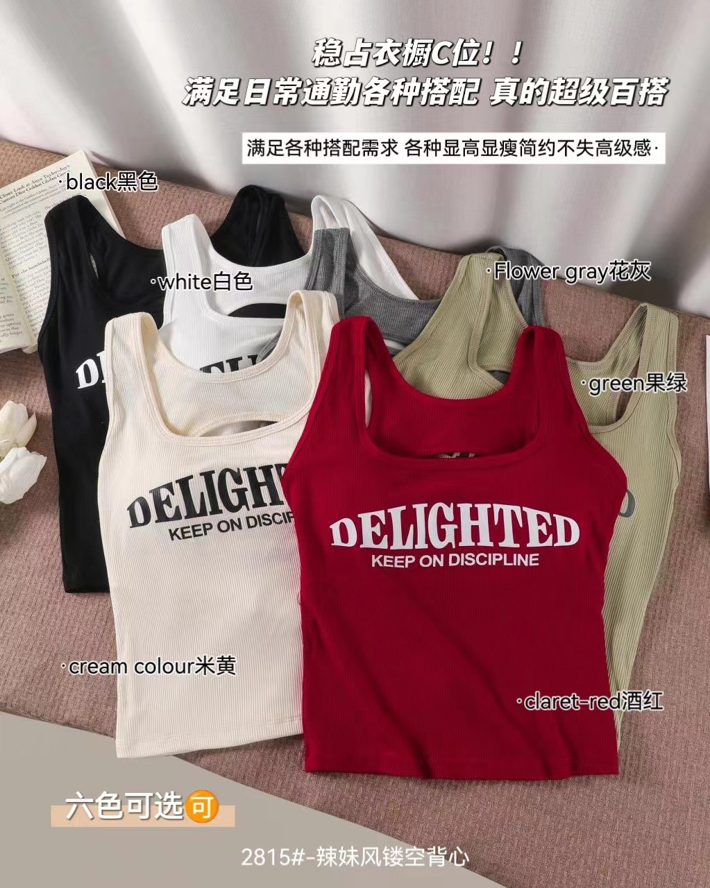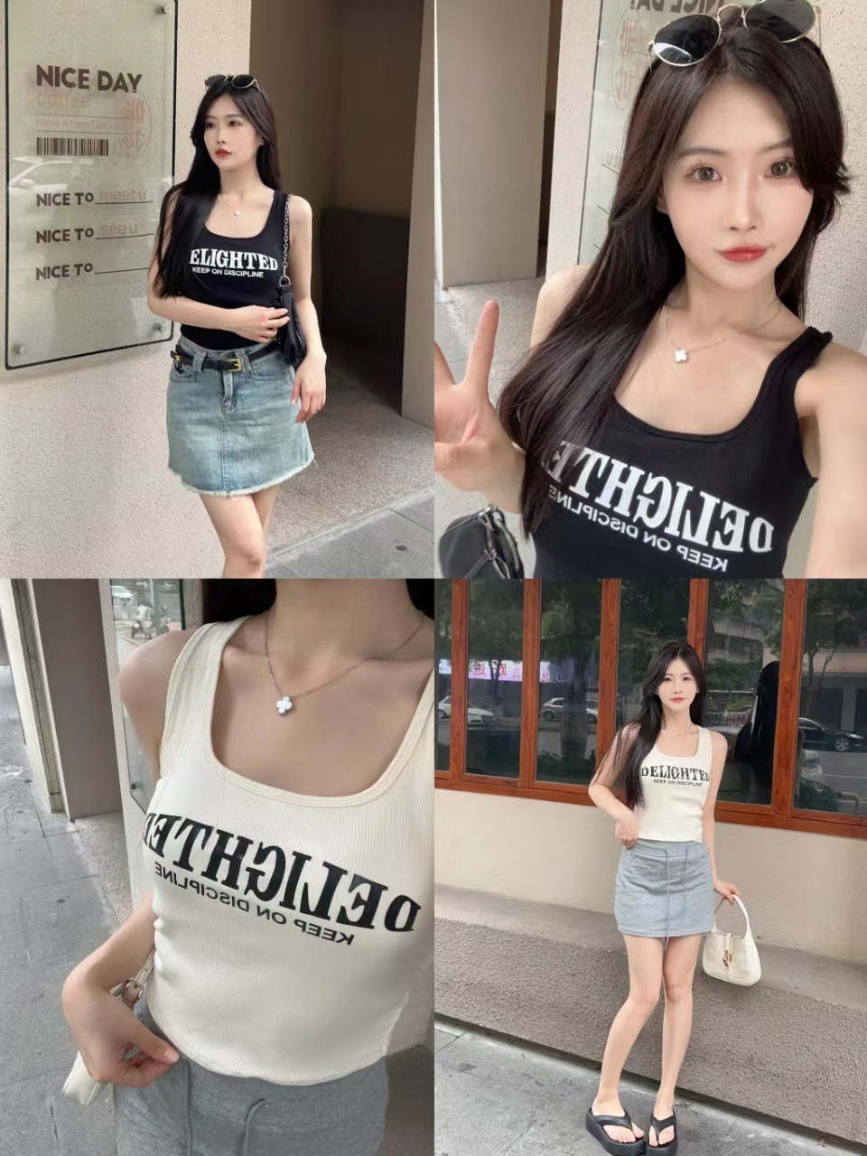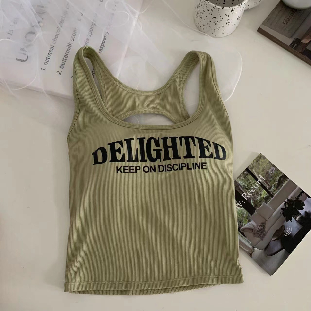 새로운 한국식 백 중공 스파이스 걸 패션 조끼 여성용 편안한 내부 슬링 슬림 레터 프린트 탑 트렌디스토어 가기