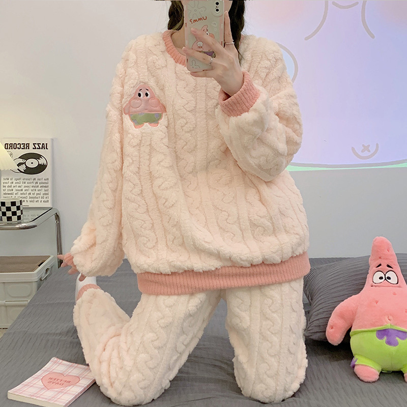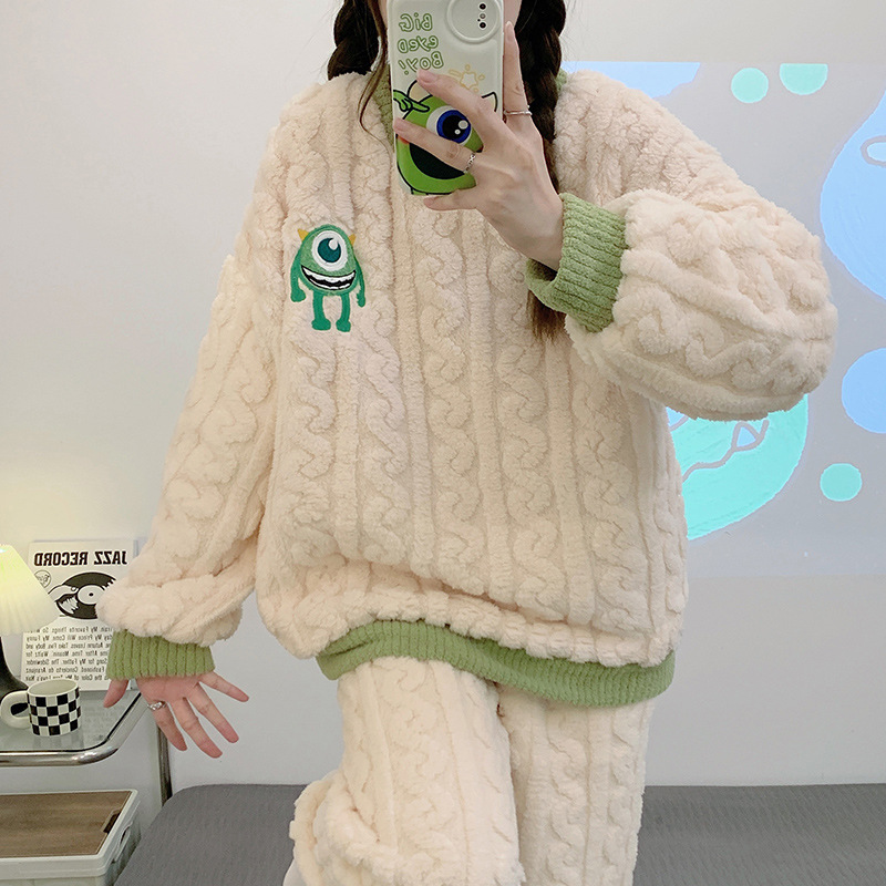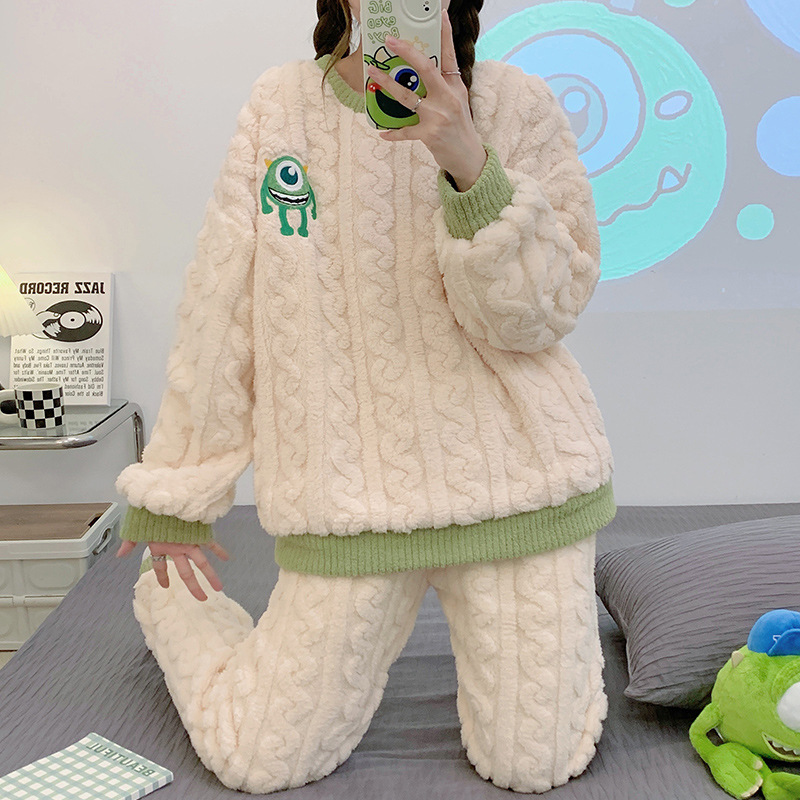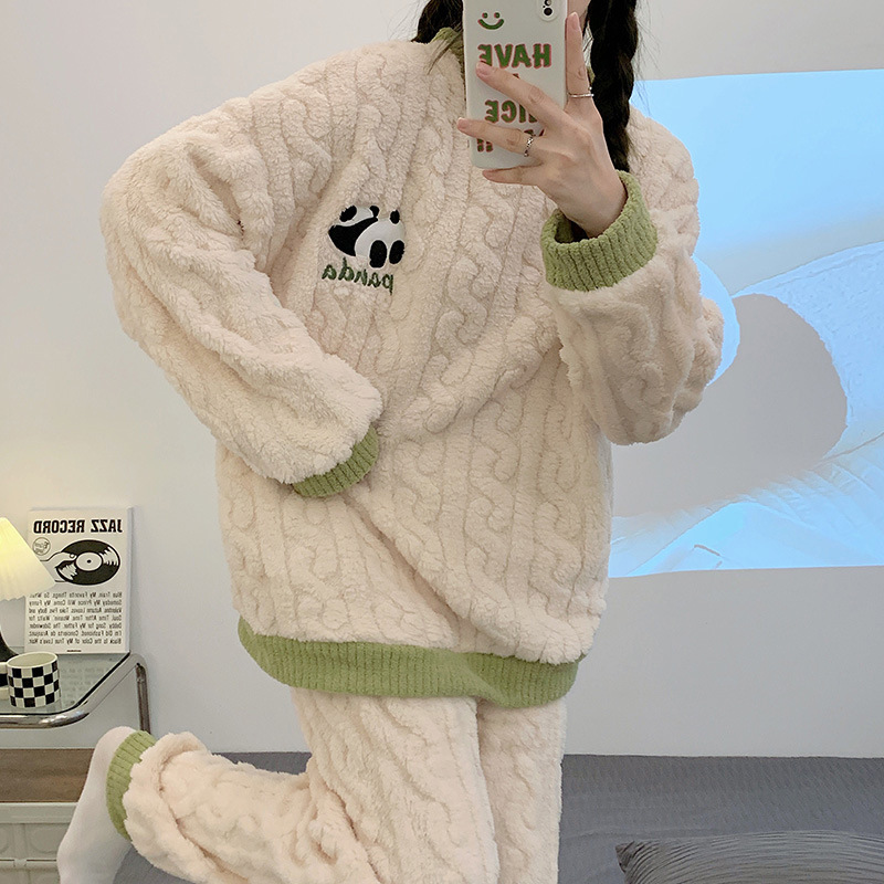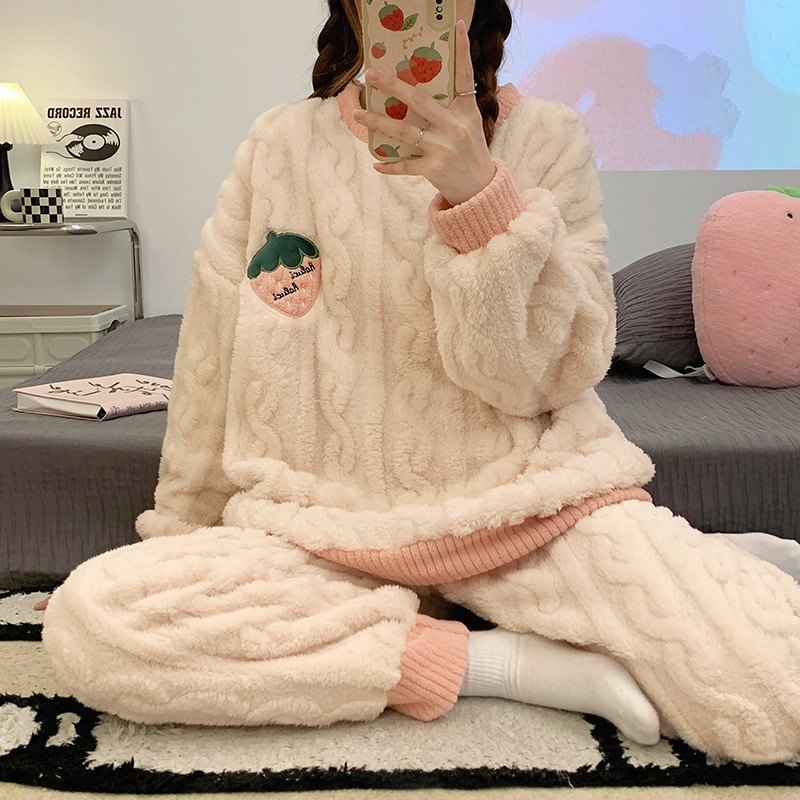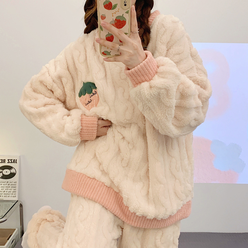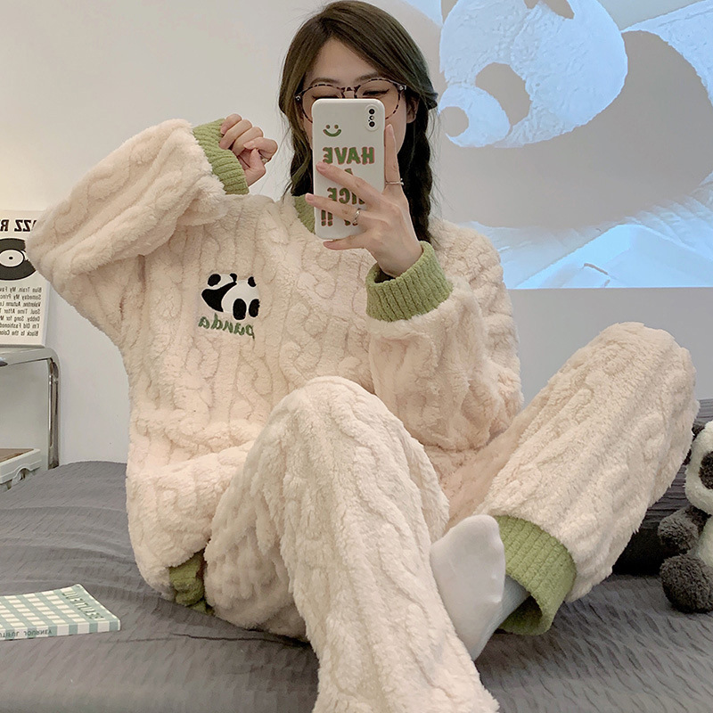 산호 양털 잠옷 여자의 겨울 긴 소매 2023 새로운 플란넬 두꺼운 따뜻한 봄과 가을 가정복 세트