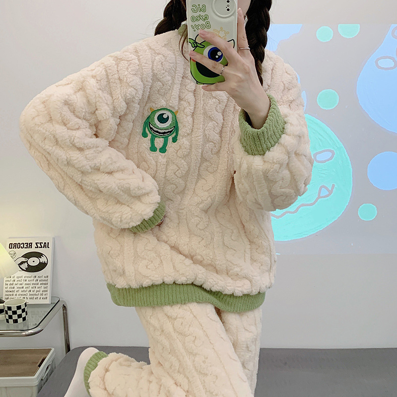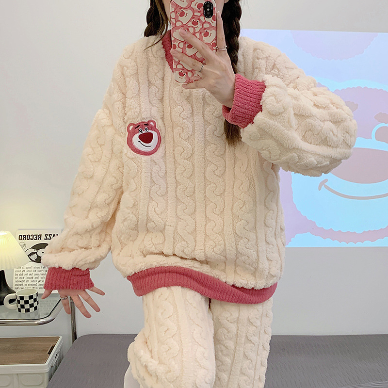 산호 양털 잠옷 여자의 겨울 긴 소매 2023 새로운 플란넬 두꺼운 따뜻한 봄과 가을 가정복 세트스토어 가기