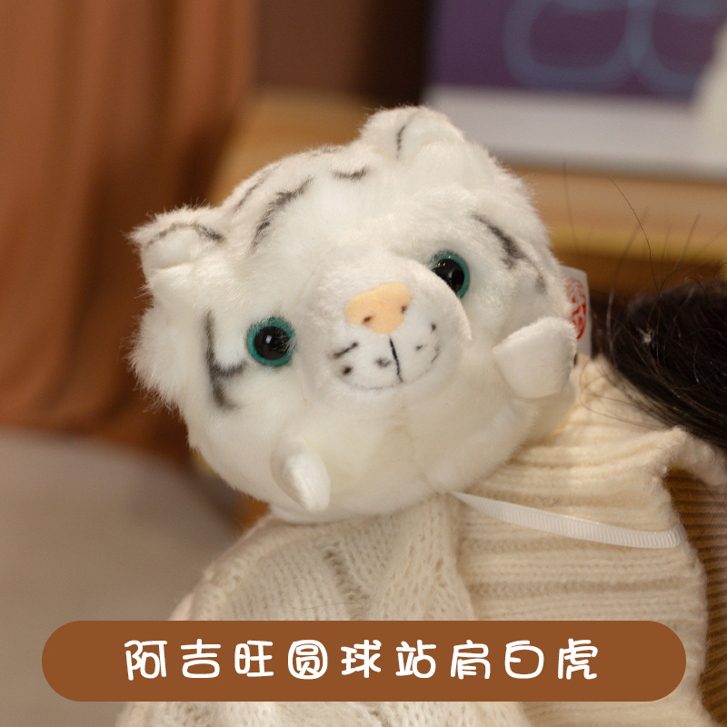 • 아지왕 흰색 쪼그리고 앉은 호랑이 서있는 어깨