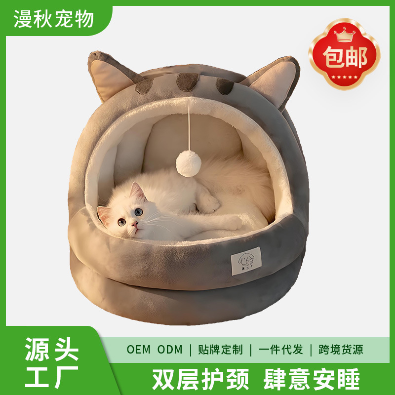 사계절 사용 가능한 반밀폐형 겨울철 보온 고양이 집, 고양이 케이지, 새끼 고양이와 강아지 둥지, 애완동물 용품, 두꺼운 고양이 집스토어 가기