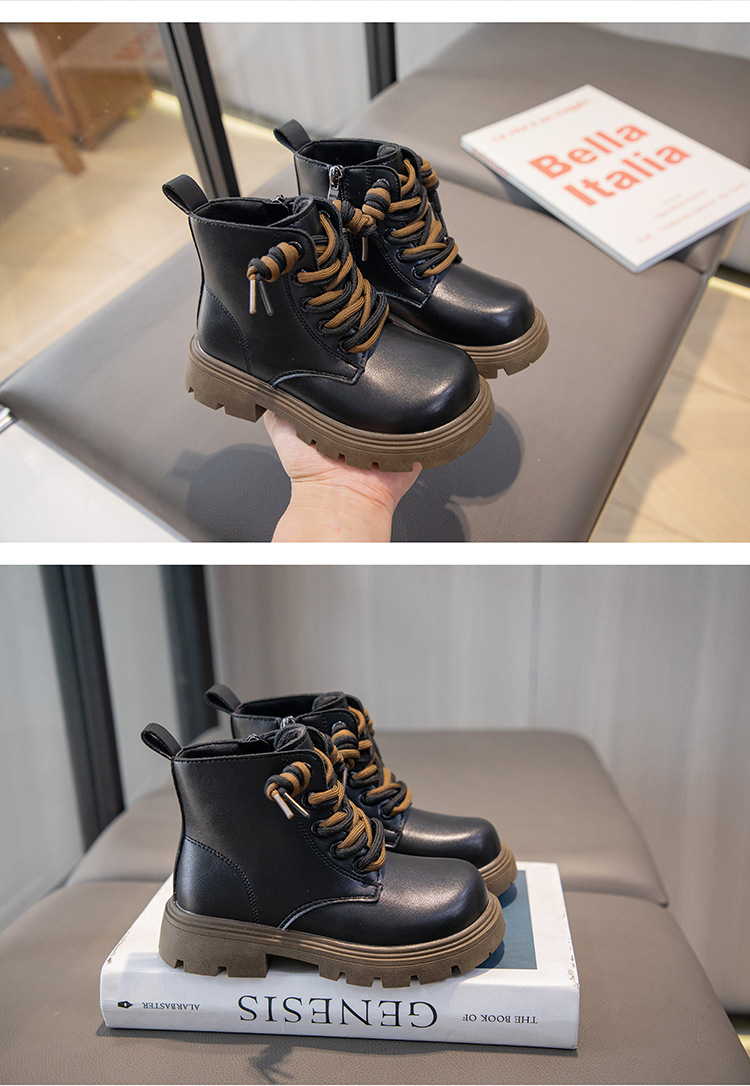 여자 부츠 가을 2023 새로운 어린이 부드러운 가죽 발목 부츠 남아 유행 부츠 큰 어린이 부드러운 바닥 마틴 부츠 유행스토어 가기