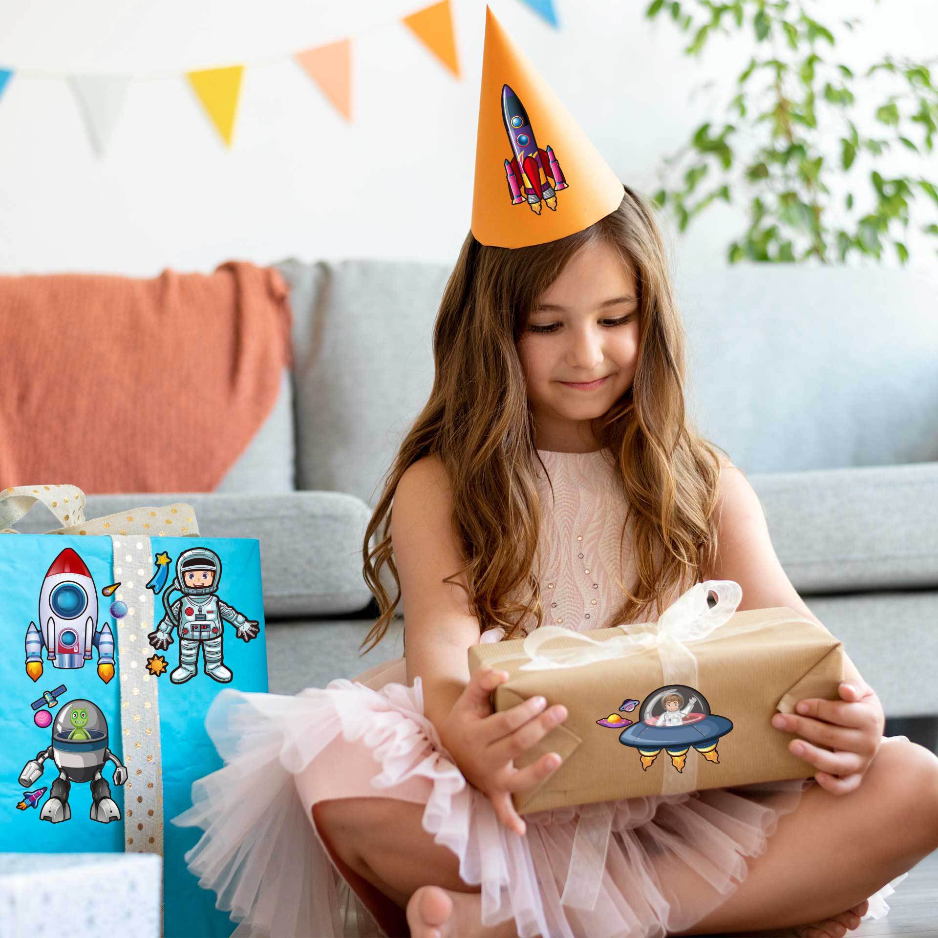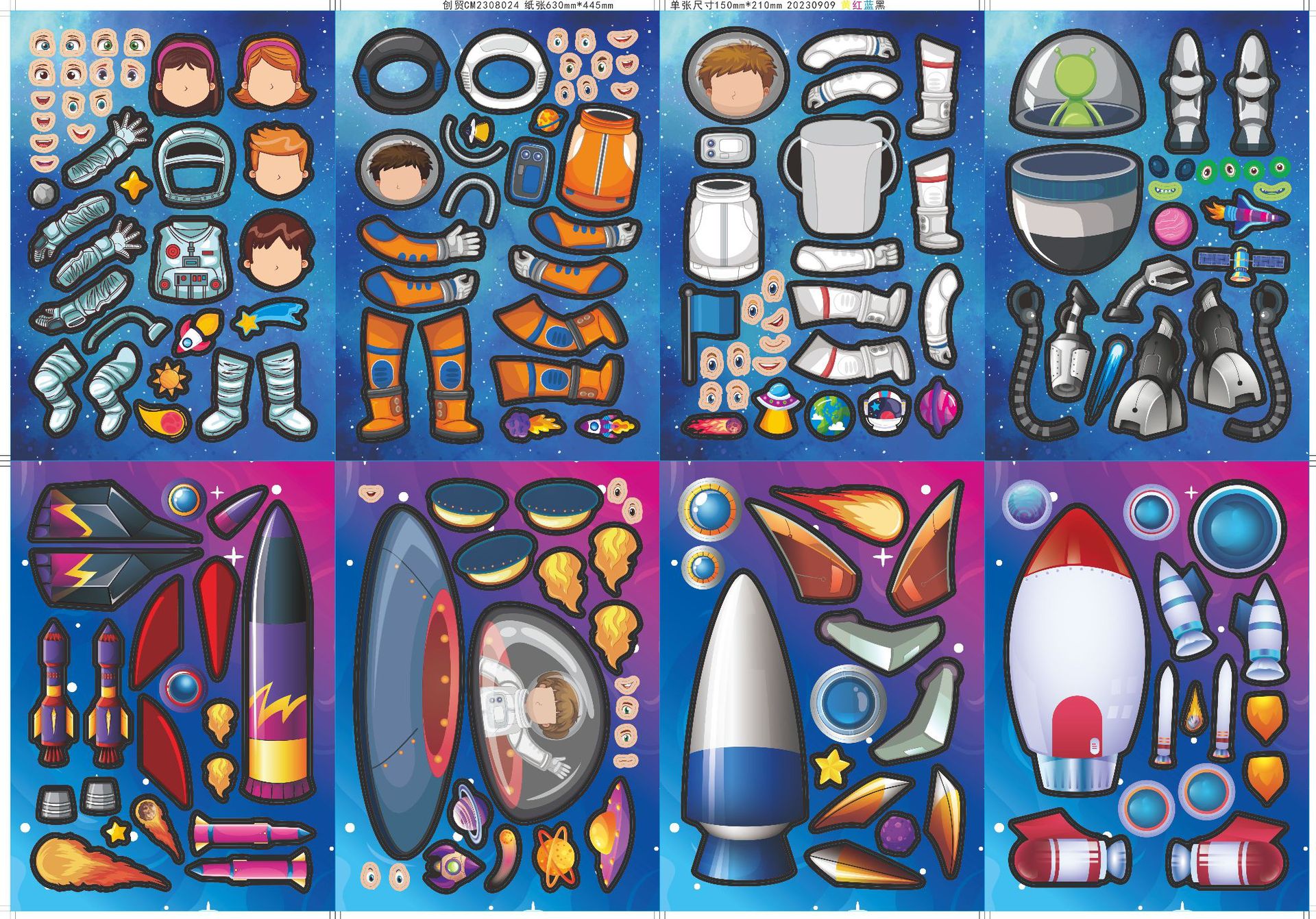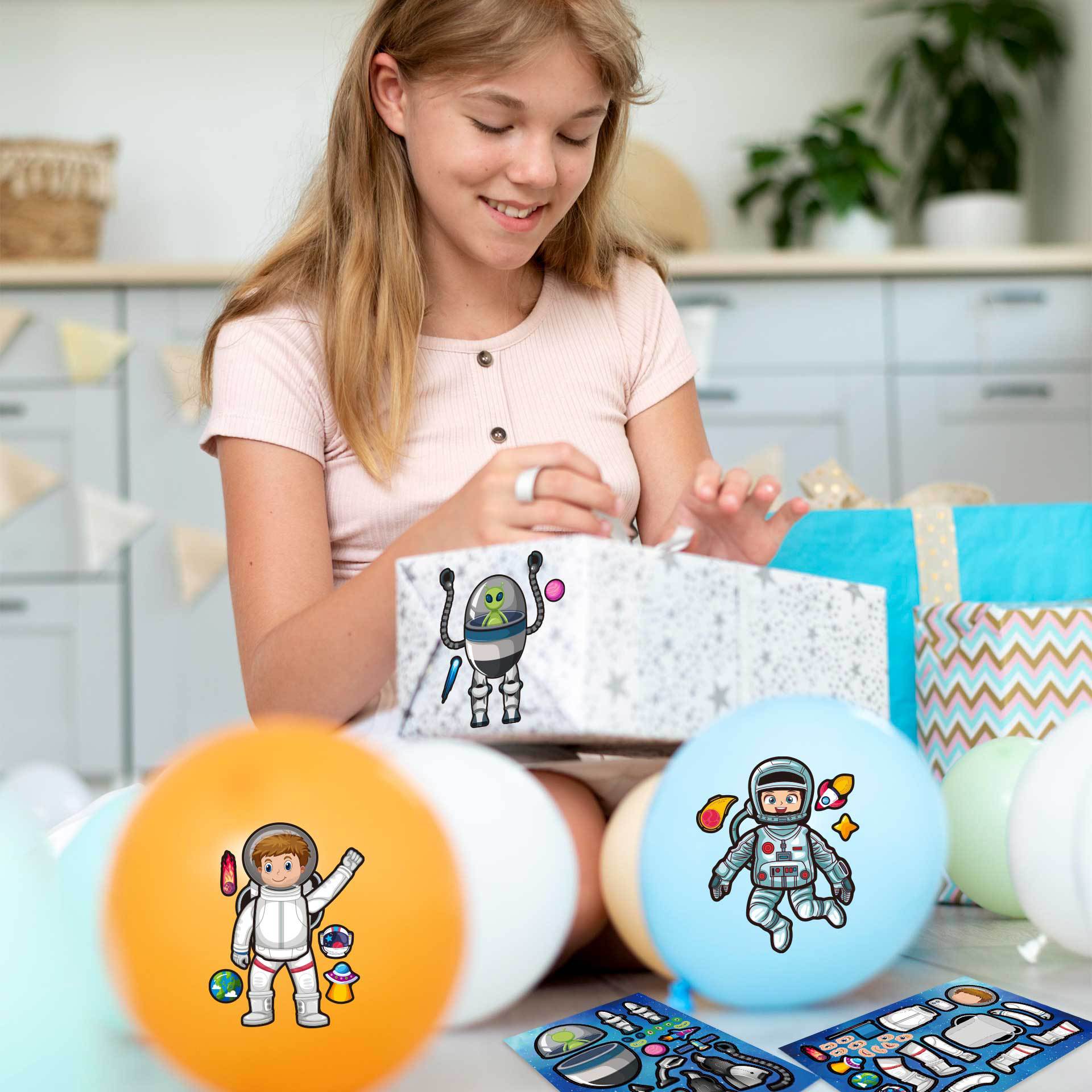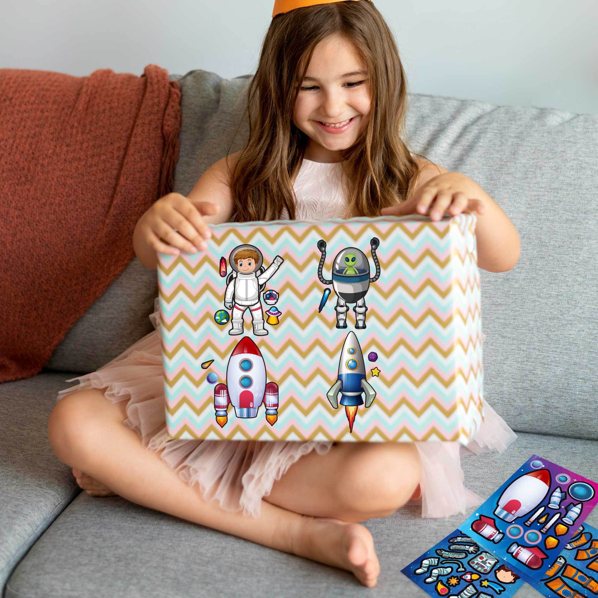 CM2308024 어린이 만화 귀여운 만화 우주선 부모-자식 대화 형 퍼즐 DIY 얼굴 스티커