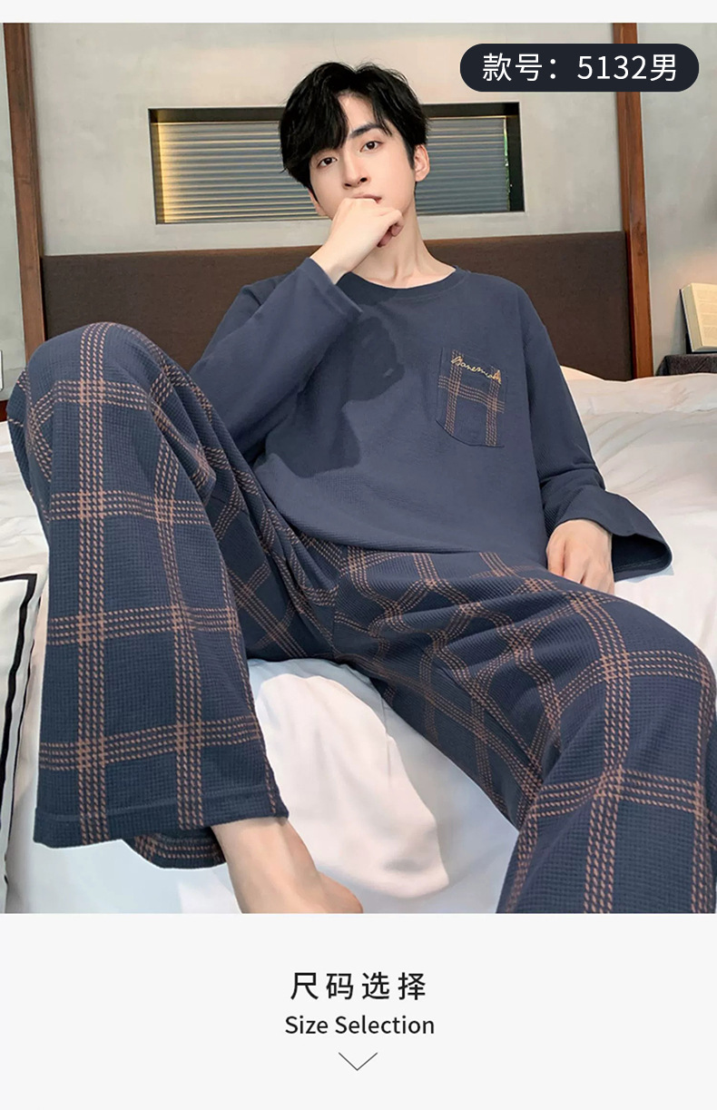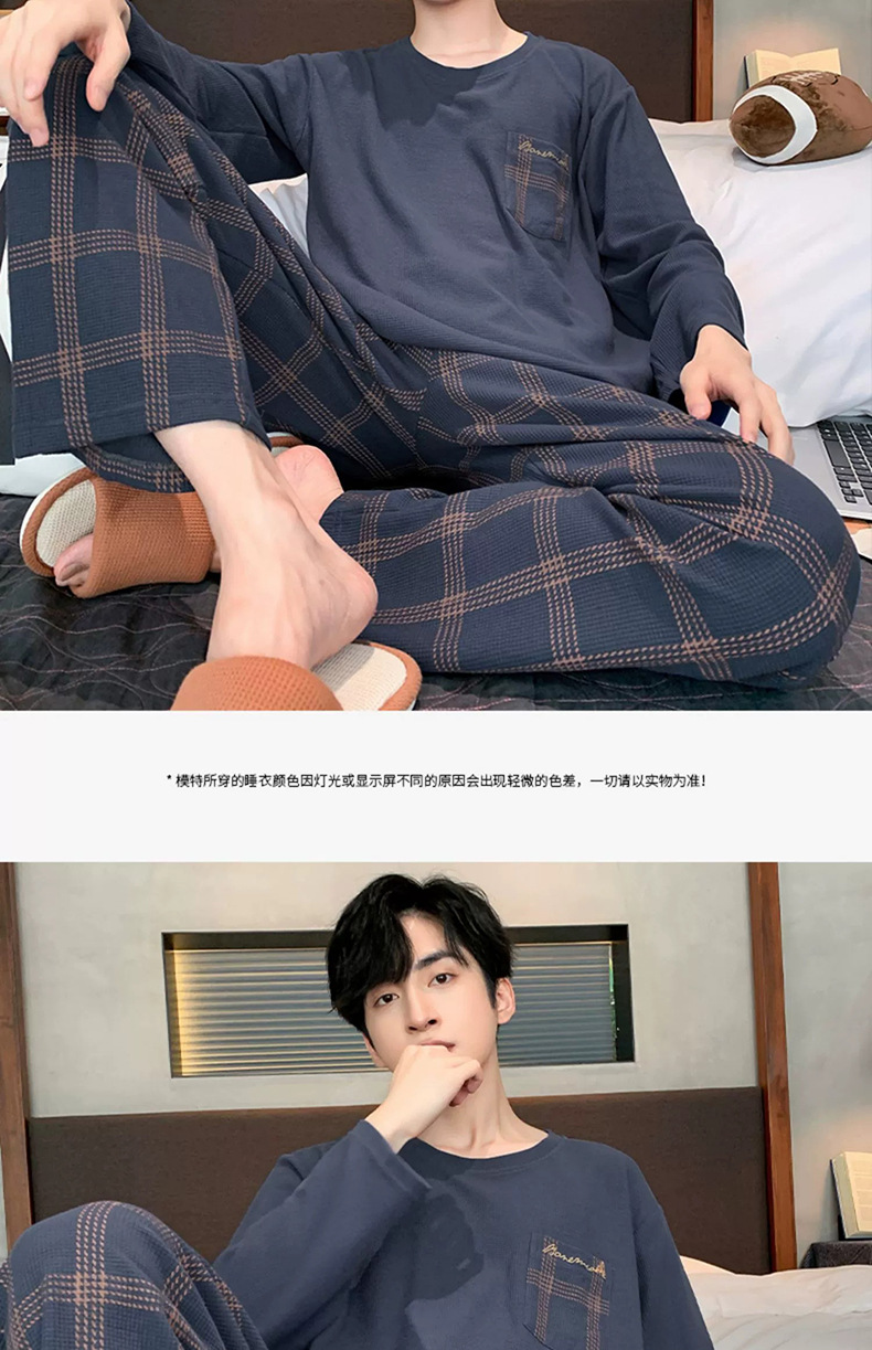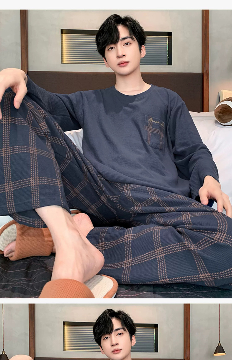 긴 소매 잠옷 남자의 봄과 가을 순면 플러스 사이즈 남자의 소년 십대 가을과 겨울 가을 겉옷을 입고 가정 의류스토어 가기