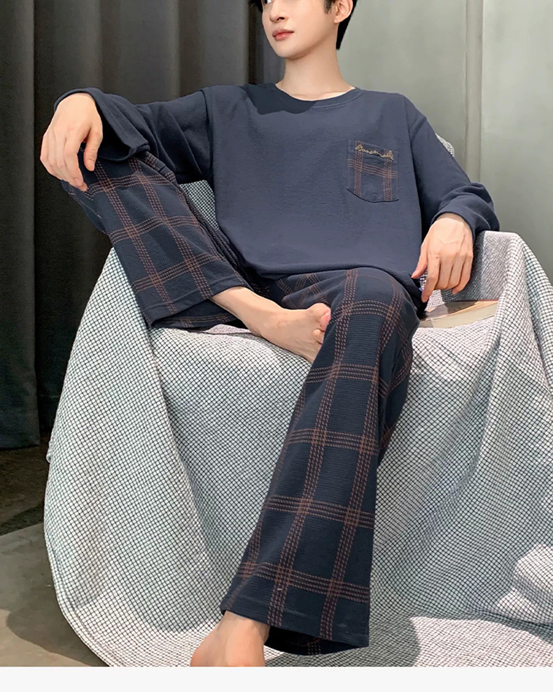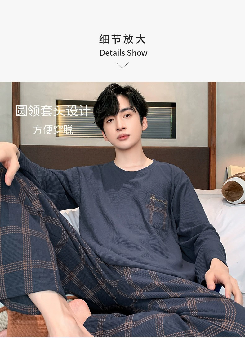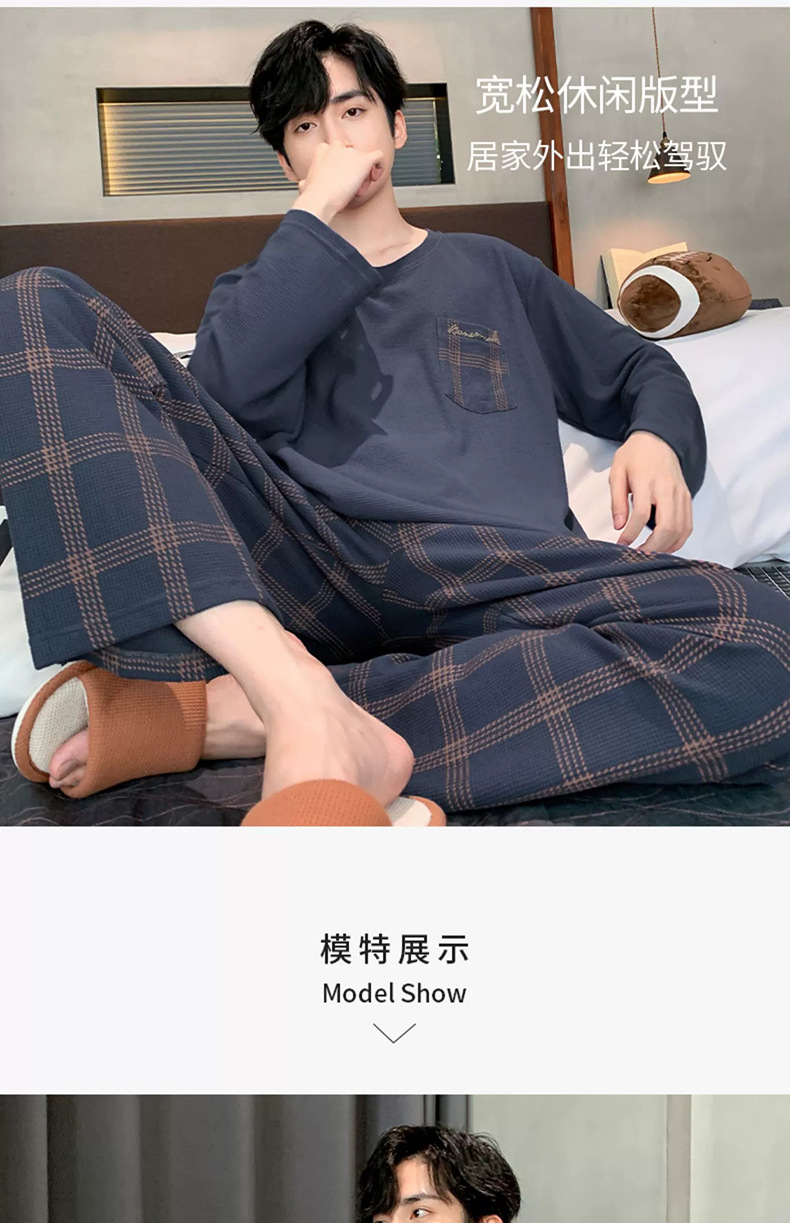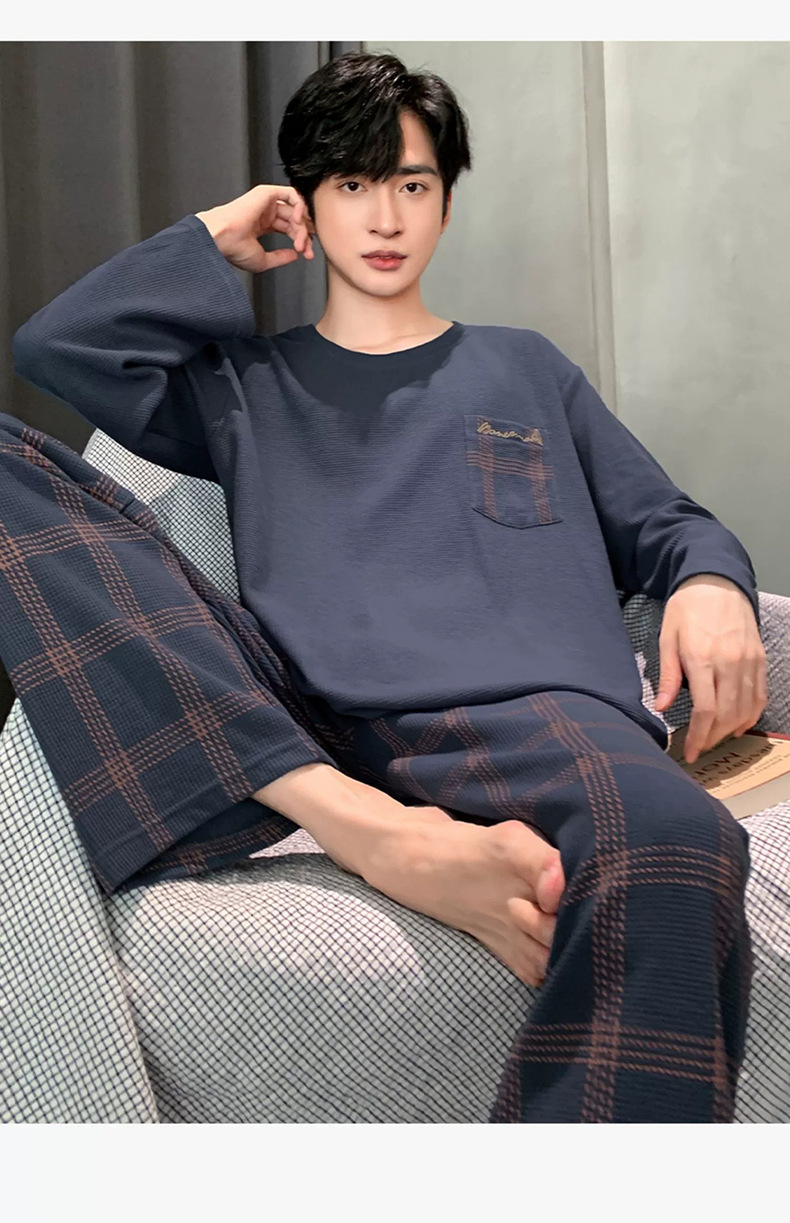 긴 소매 잠옷 남자의 봄과 가을 순면 플러스 사이즈 남자의 소년 십대 가을과 겨울 가을 겉옷을 입고 가정 의류스토어 가기
