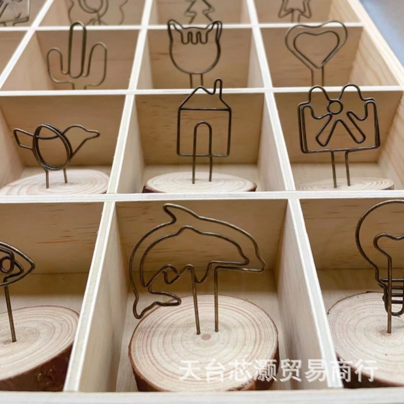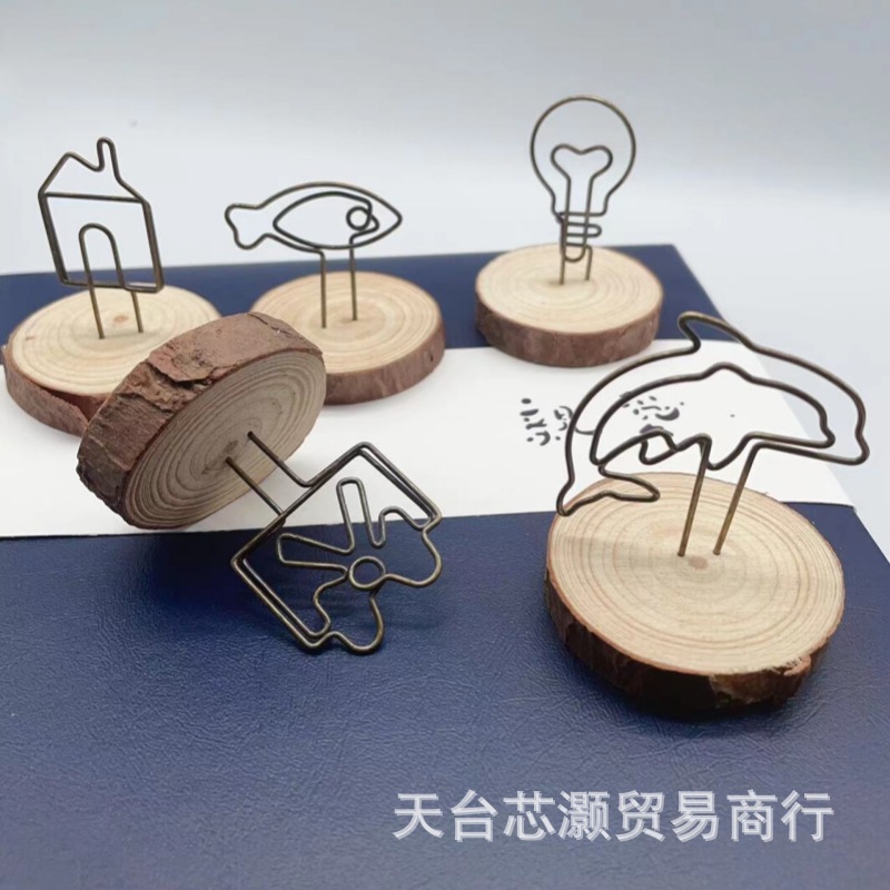 크리 에이 티브 나무 메모 홀더 나무 판자 기본 명함 홀더 복고풍 로그 사진 메시지 홀더 데스크탑 장식품 도매