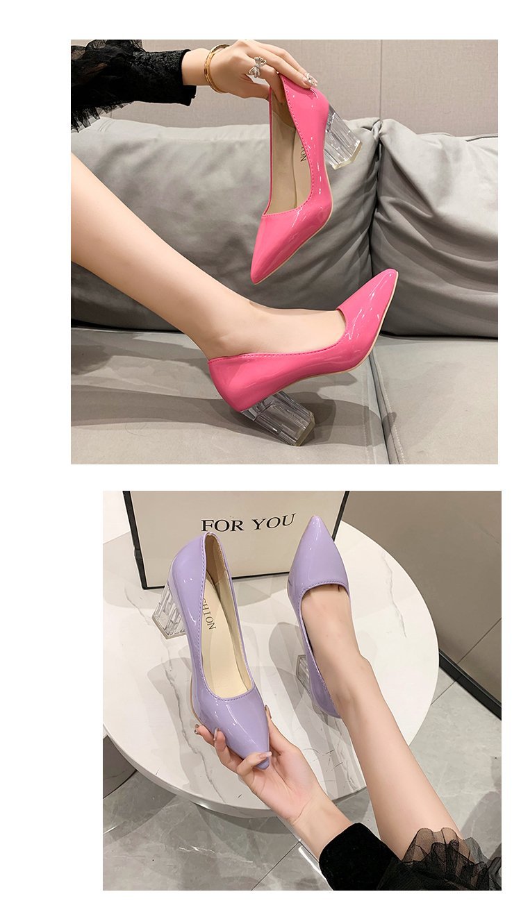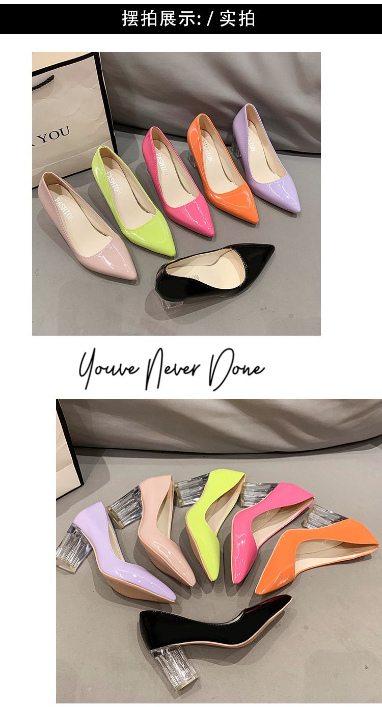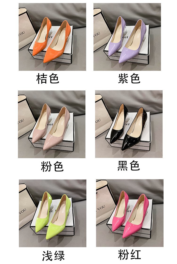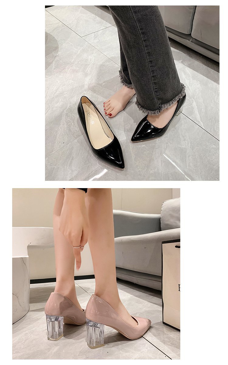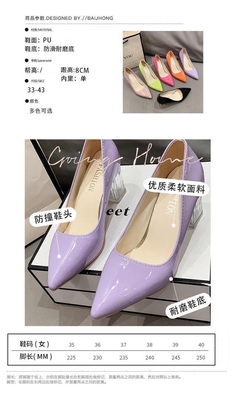 크기 35-43 플러스 사이즈 유럽과 미국 하이힐 여성용 41 작업 신발 에나멜 가죽 여성 신발 패션 뾰족한 얕은 시크 힐 싱글 신발스토어 가기