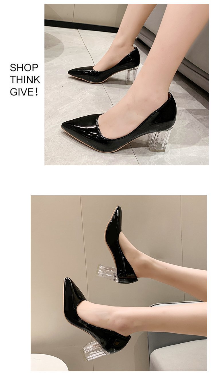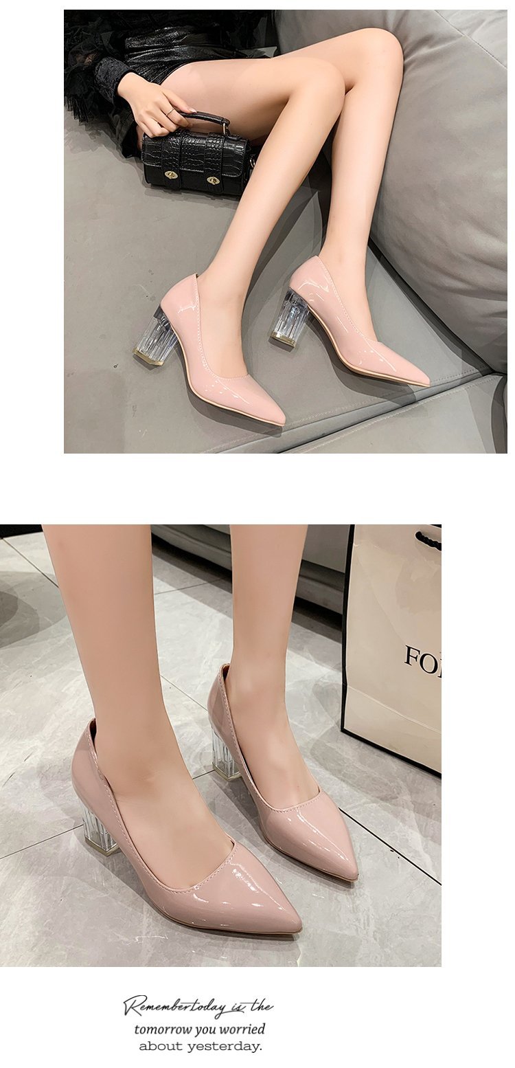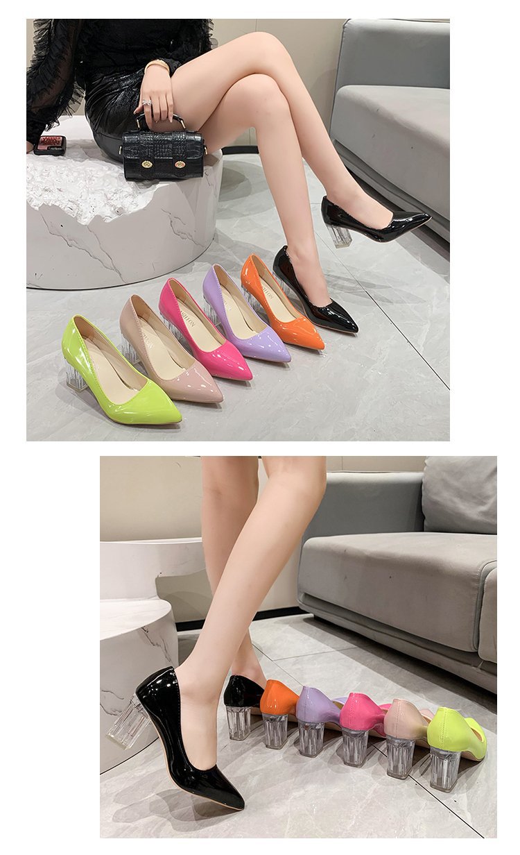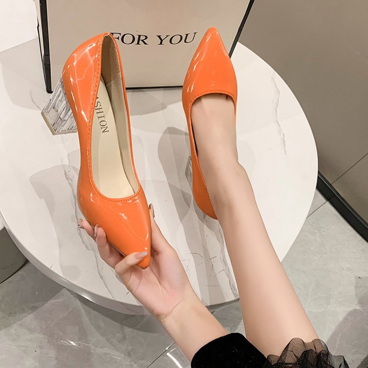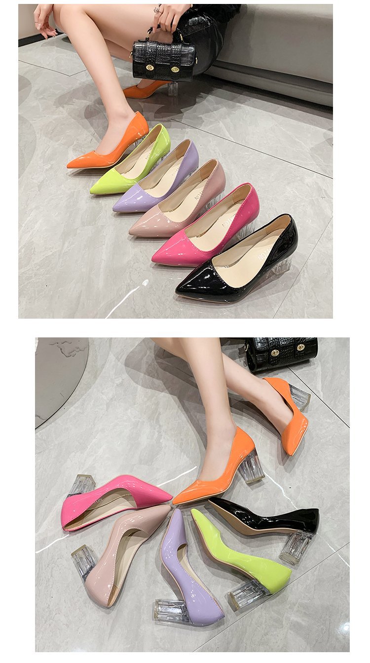 크기 35-43 플러스 사이즈 유럽과 미국 하이힐 여성용 41 작업 신발 에나멜 가죽 여성 신발 패션 뾰족한 얕은 시크 힐 싱글 신발스토어 가기