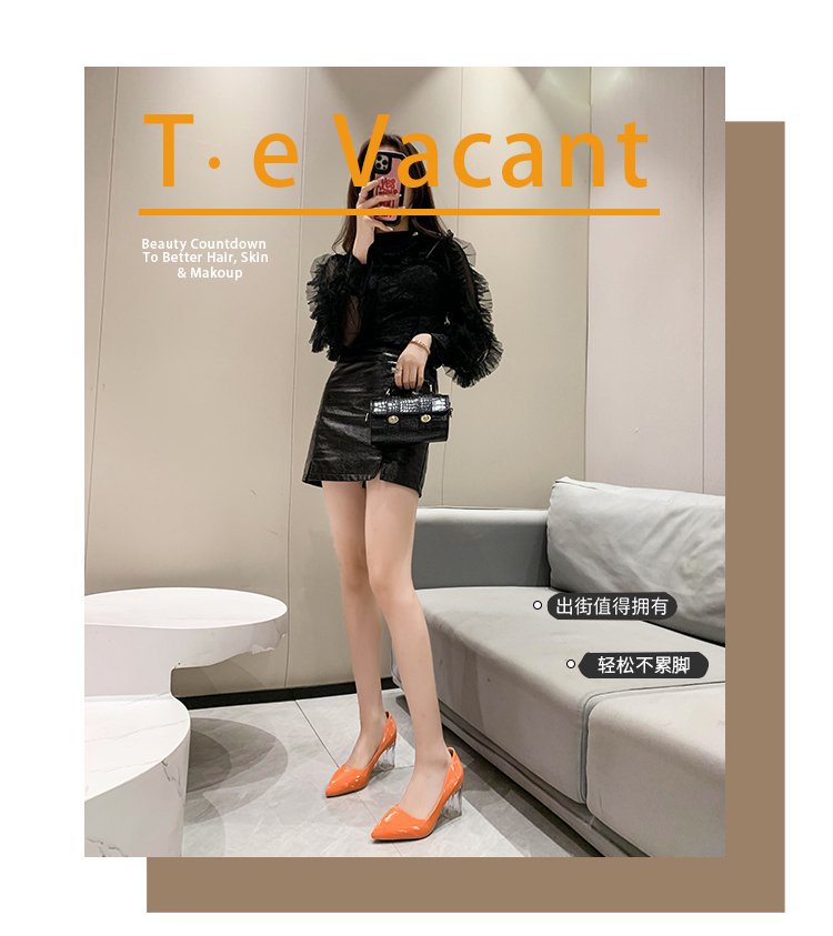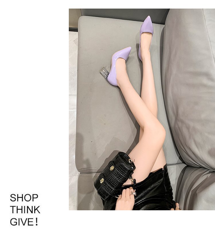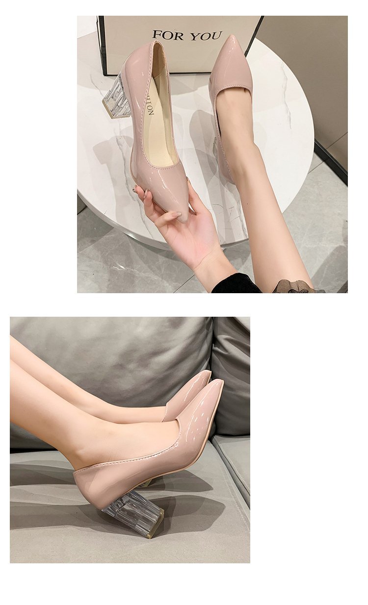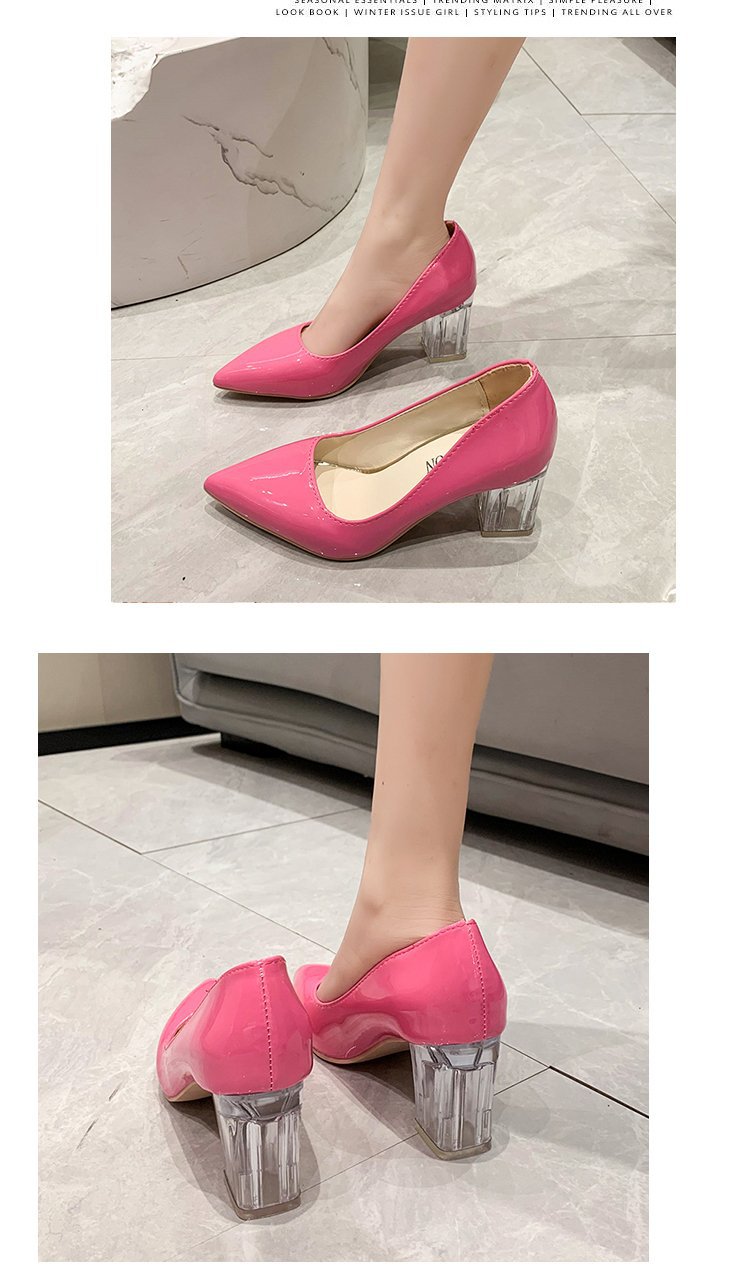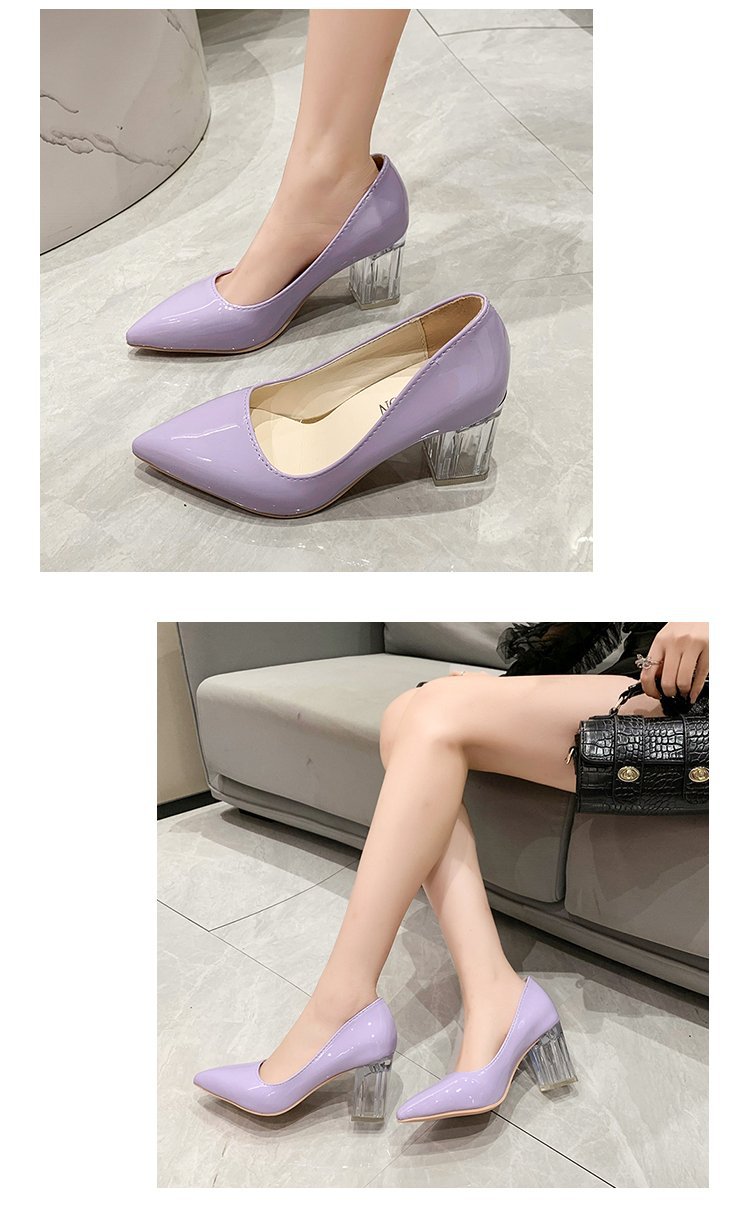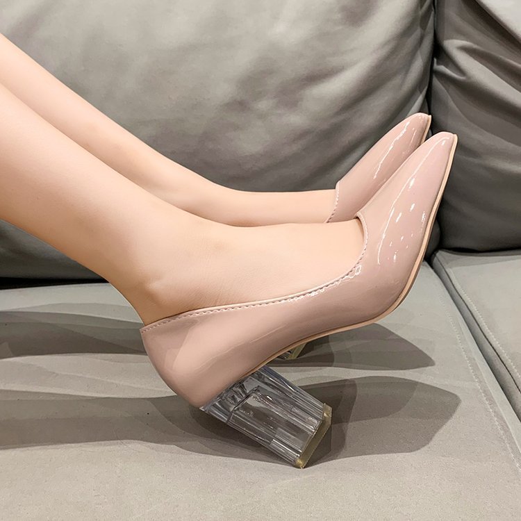 크기 35-43 플러스 사이즈 유럽과 미국 하이힐 여성용 41 작업 신발 에나멜 가죽 여성 신발 패션 뾰족한 얕은 시크 힐 싱글 신발스토어 가기