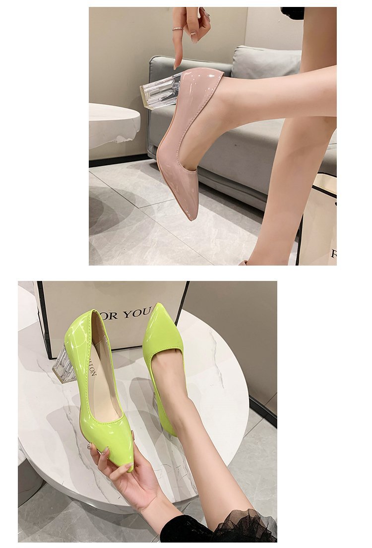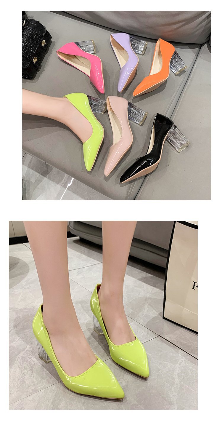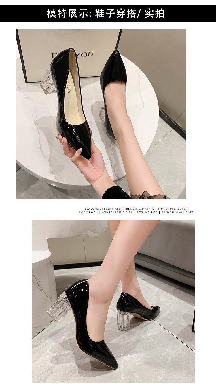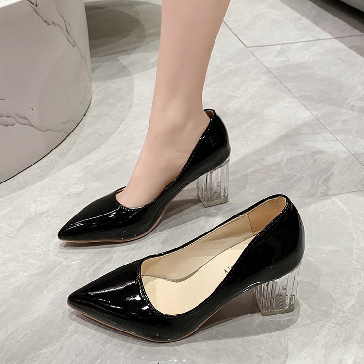 크기 35-43 플러스 사이즈 유럽과 미국 하이힐 여성용 41 작업 신발 에나멜 가죽 여성 신발 패션 뾰족한 얕은 시크 힐 싱글 신발