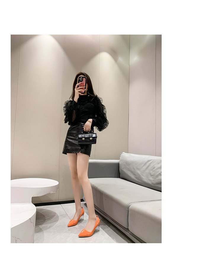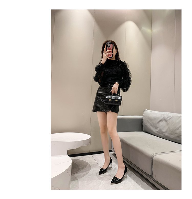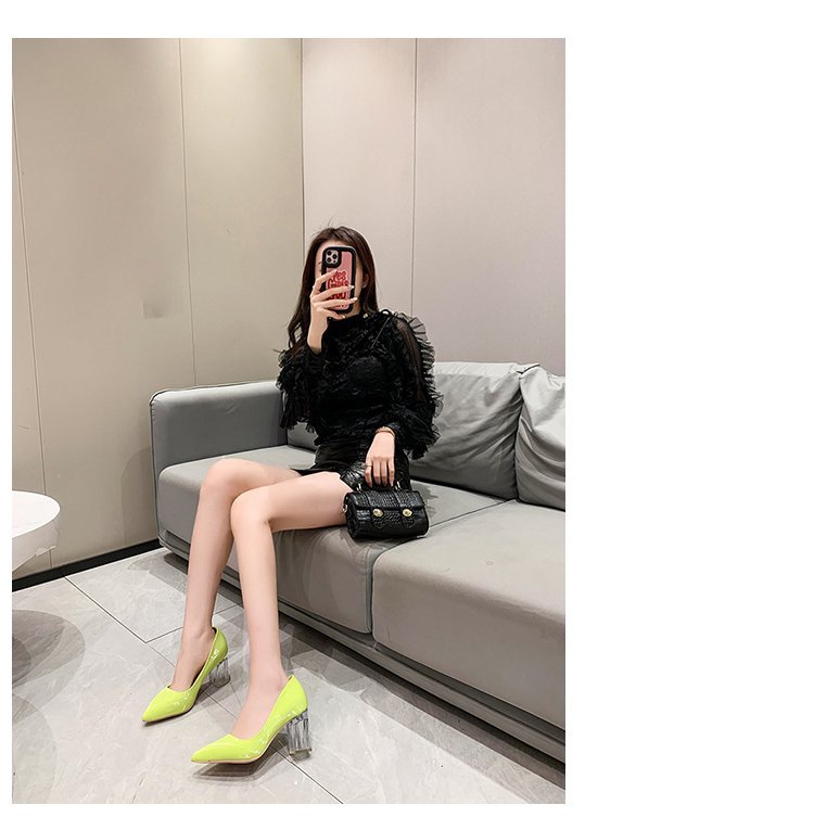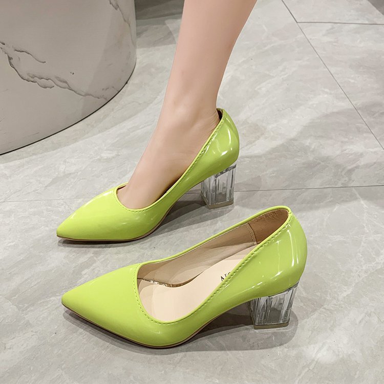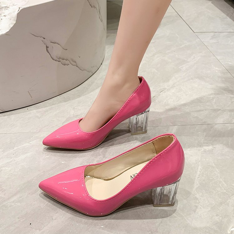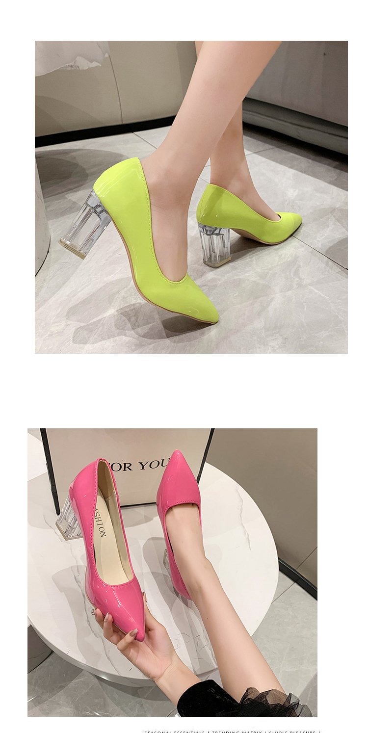 크기 35-43 플러스 사이즈 유럽과 미국 하이힐 여성용 41 작업 신발 에나멜 가죽 여성 신발 패션 뾰족한 얕은 시크 힐 싱글 신발