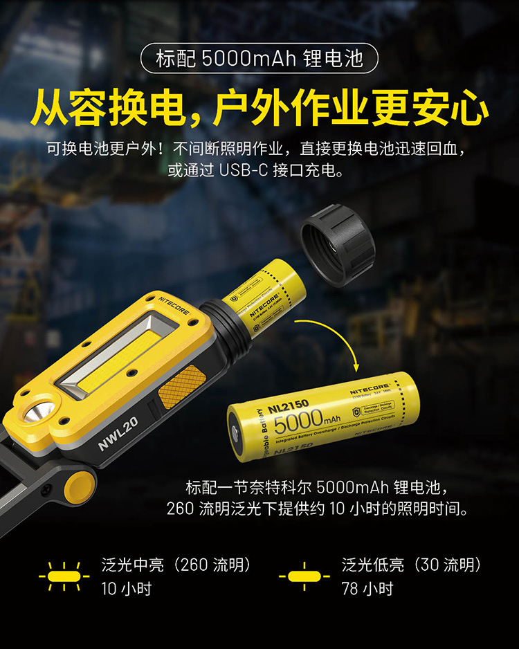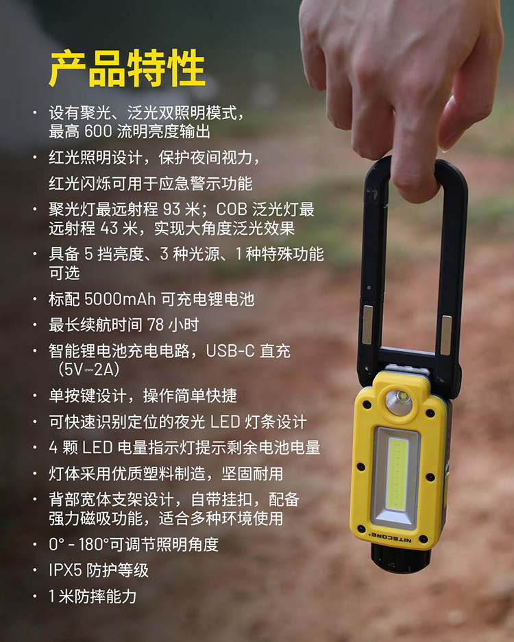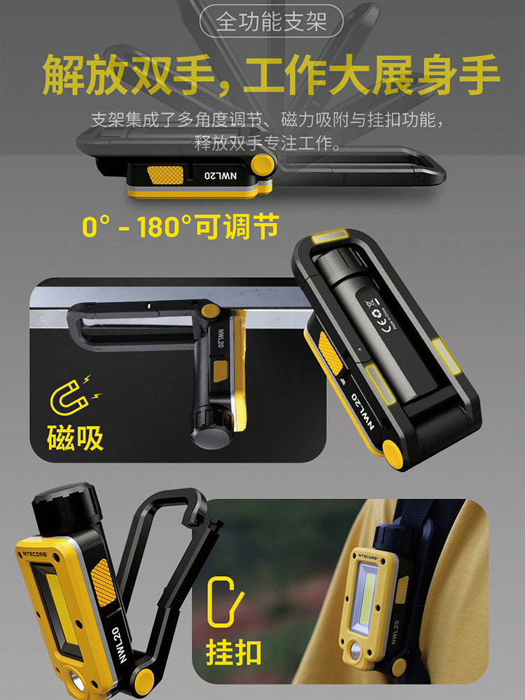나이트 콜 NWL20 작업 등 야외 강한 빛 슈퍼 밝은 충전식 손전등 led 자기 자동 수리 등