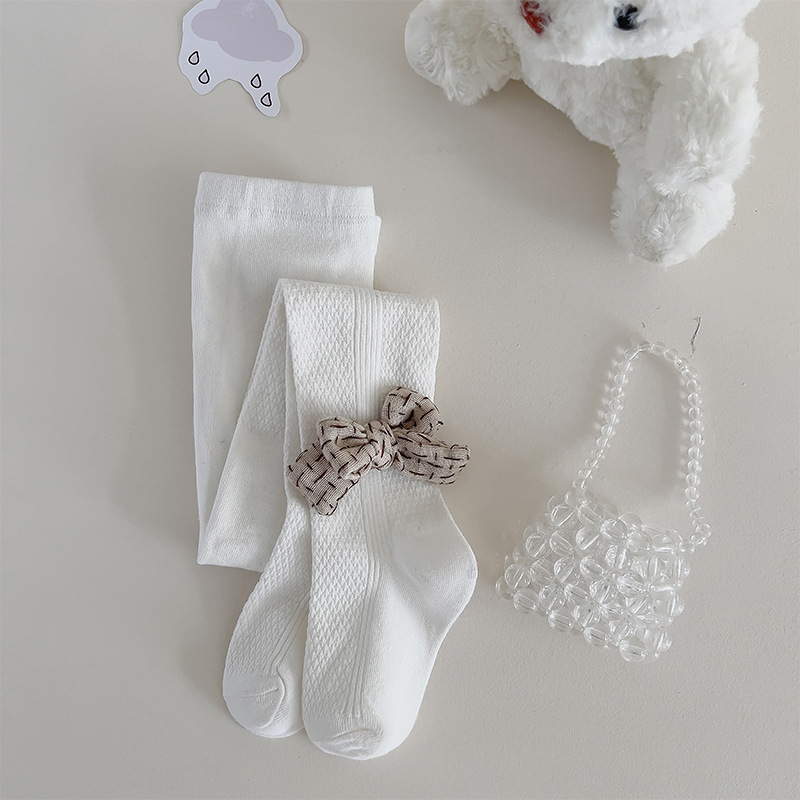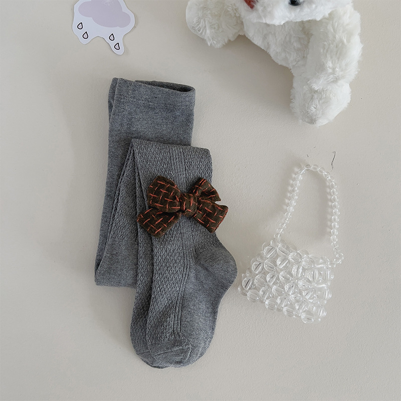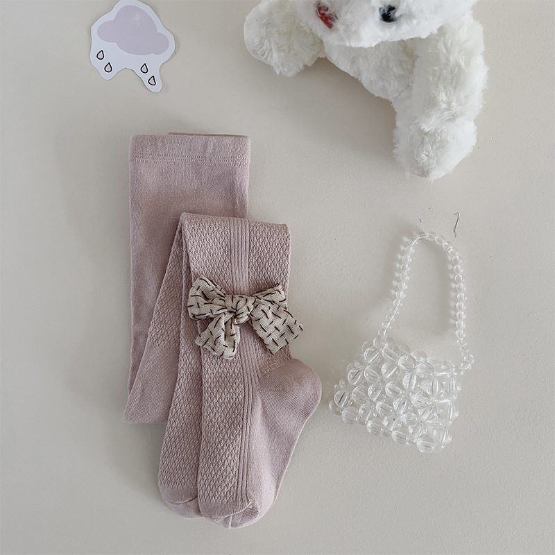 한국식 리본매듭 여아 팬티 스타킹 가을과 겨울 단색 통기성 피부 친화적 어린이 아기 겉옷 레깅스