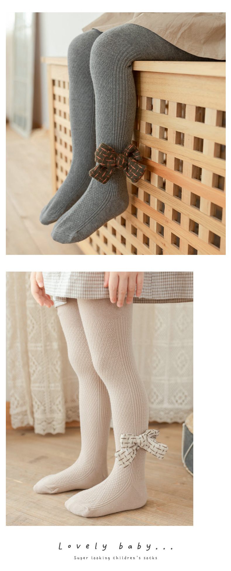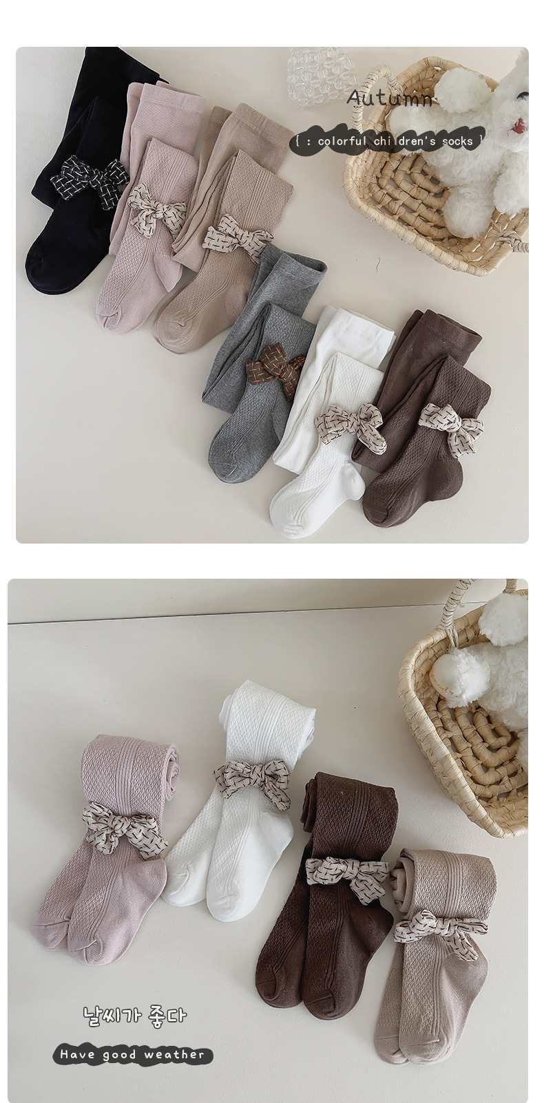 한국식 리본매듭 여아 팬티 스타킹 가을과 겨울 단색 통기성 피부 친화적 어린이 아기 겉옷 레깅스스토어 가기