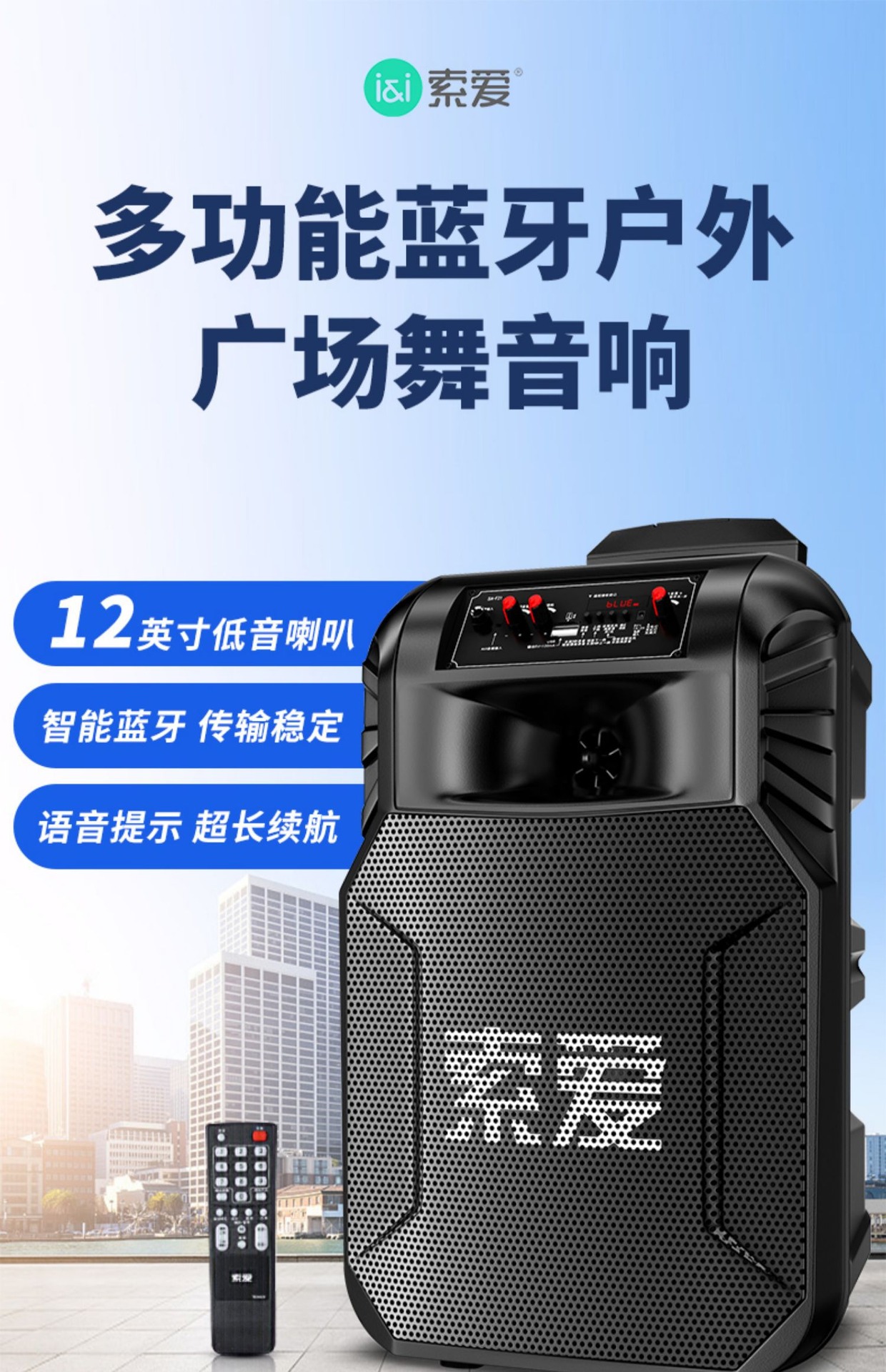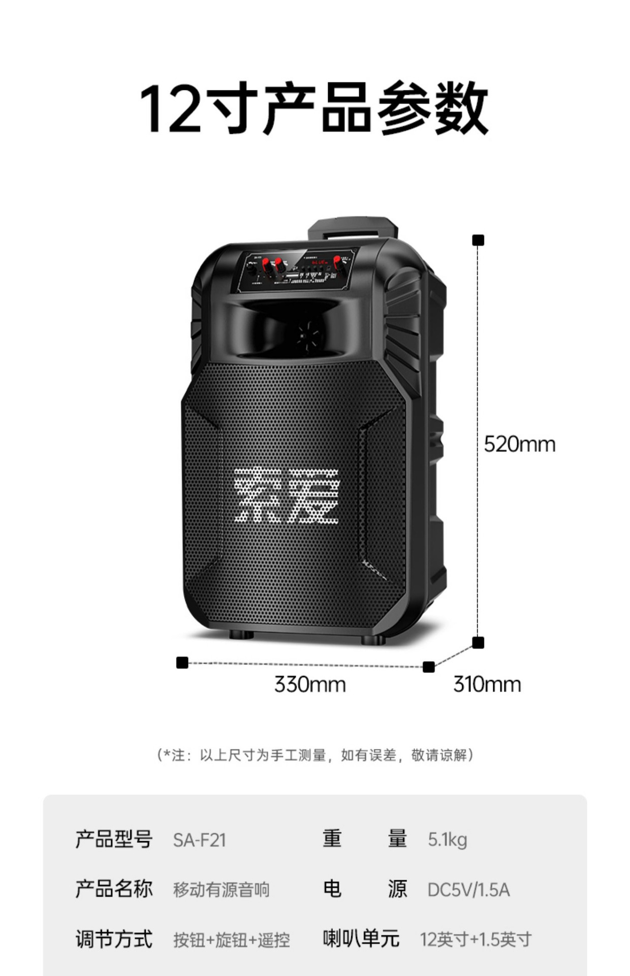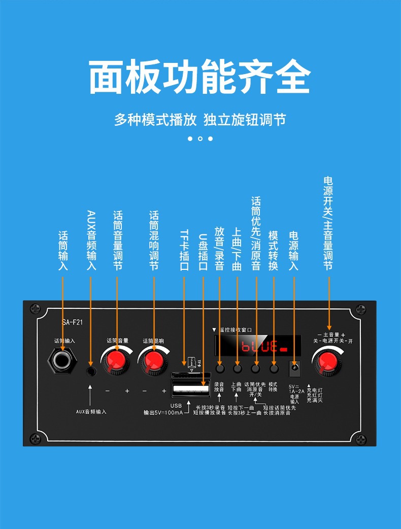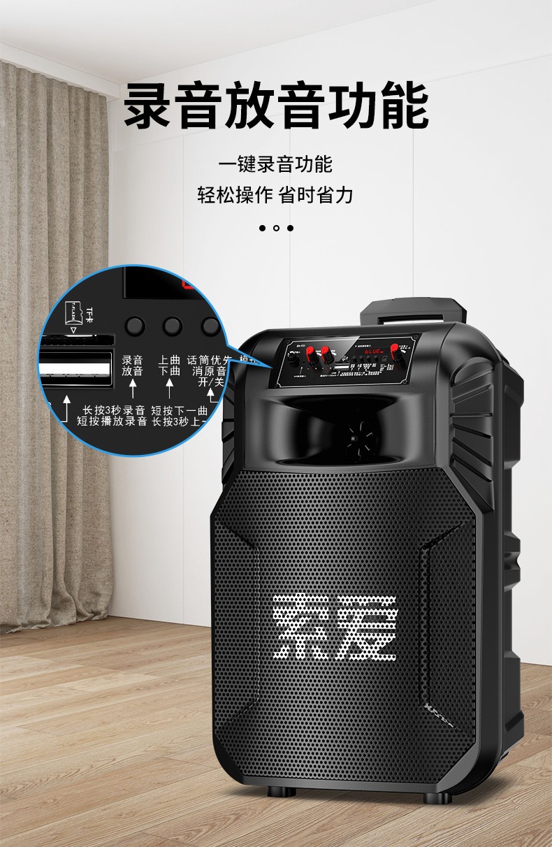 SOAIY F21 블루투스 스피커 모바일 트롤리 12inch 휴대용 스퀘어 댄스 스피커(무선 마이크 포함)