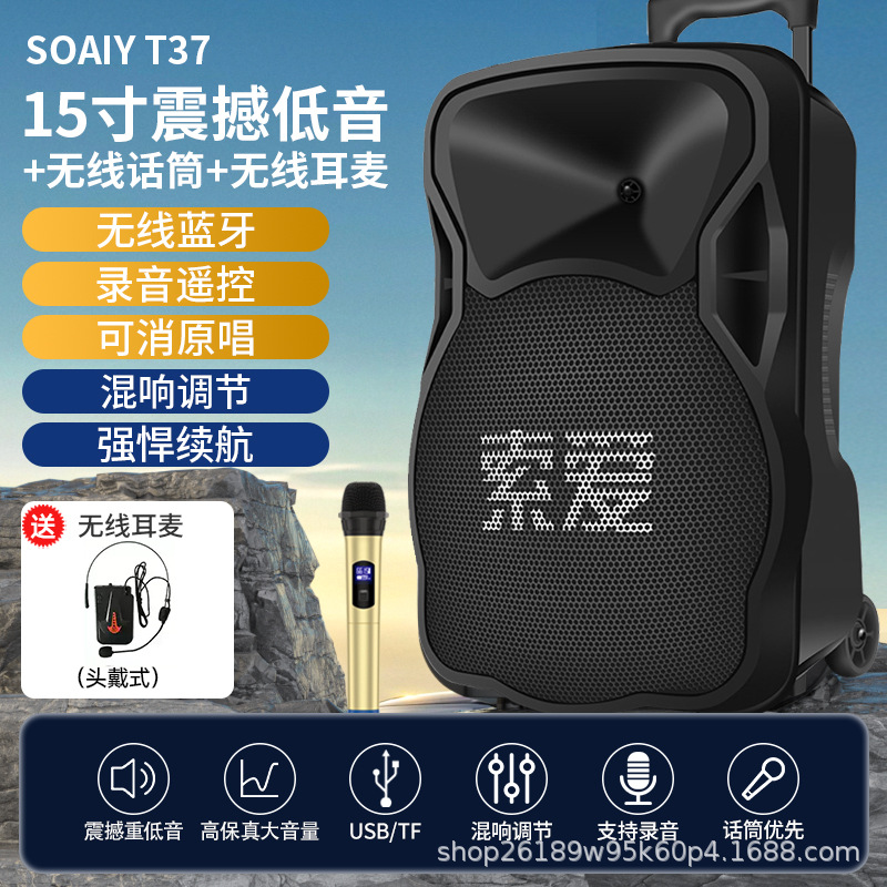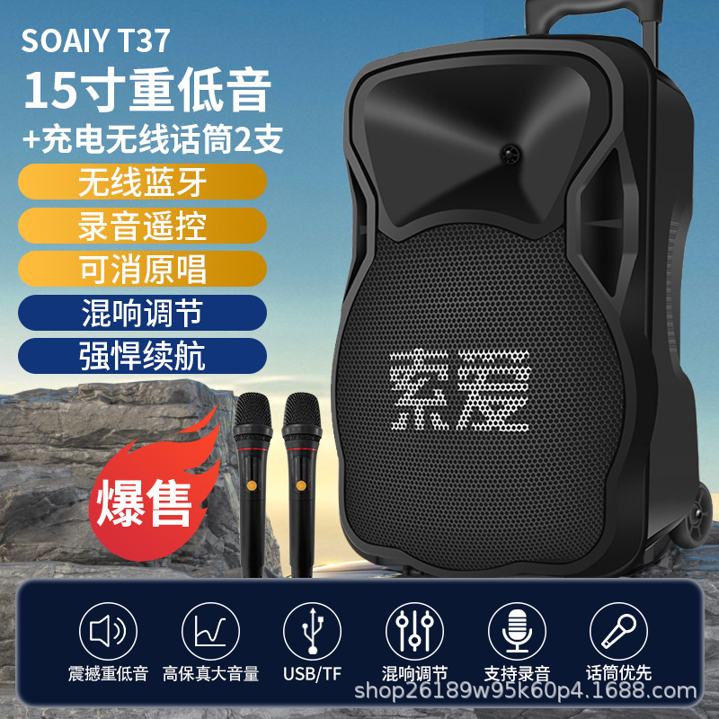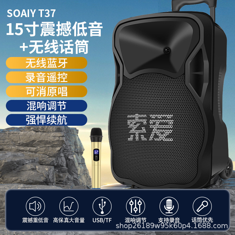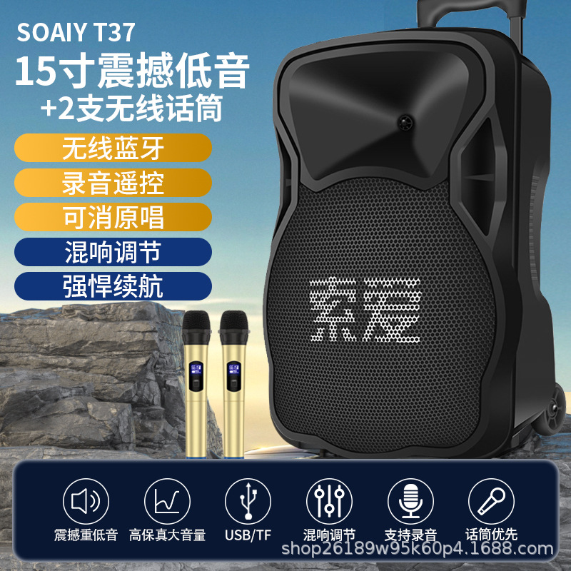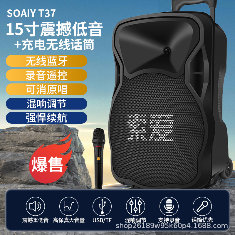 SOAIY F21 블루투스 스피커 모바일 트롤리 12inch 휴대용 스퀘어 댄스 스피커(무선 마이크 포함)스토어 가기