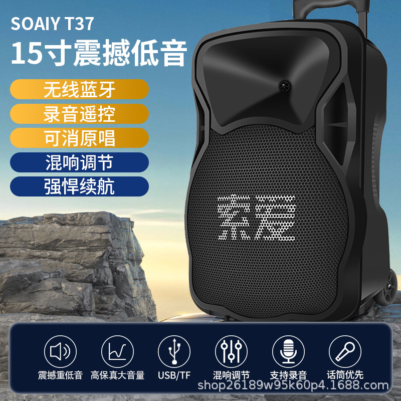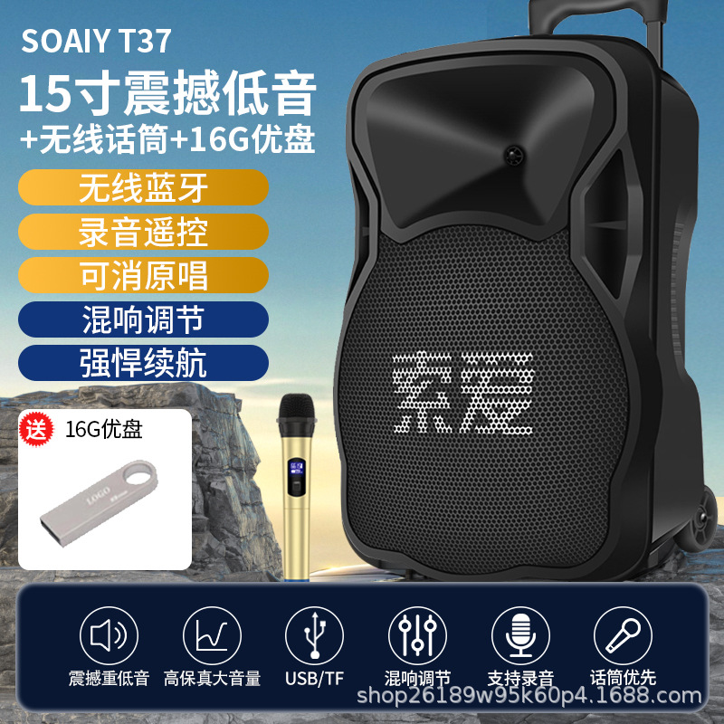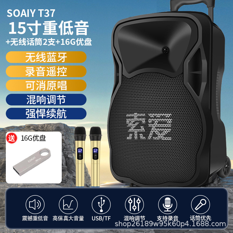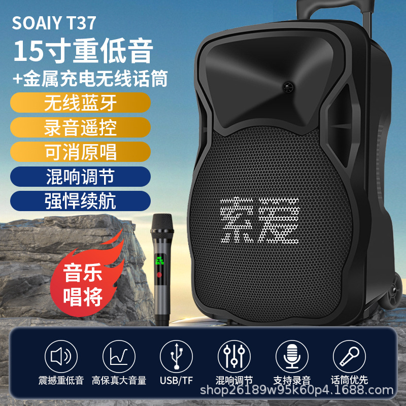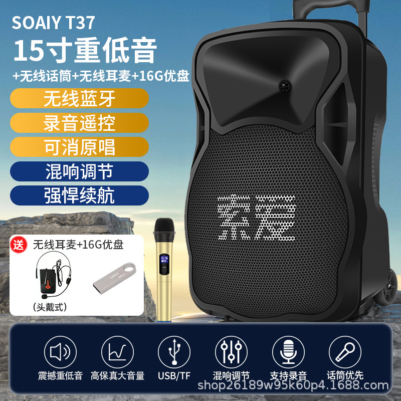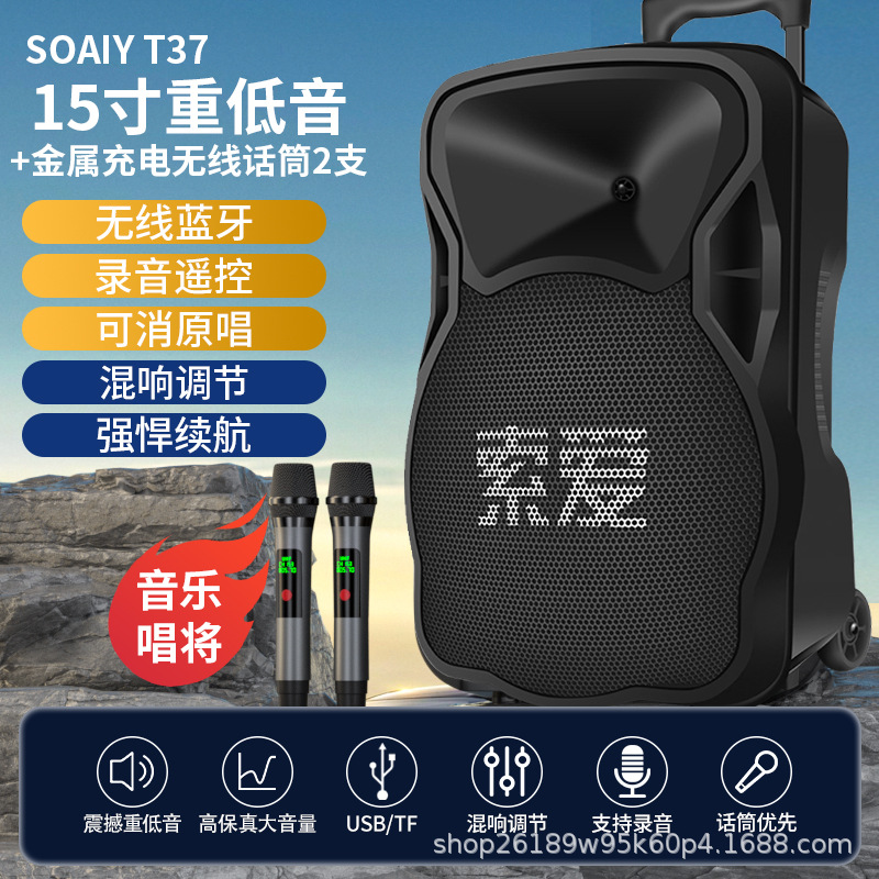 SOAIY F21 블루투스 스피커 모바일 트롤리 12inch 휴대용 스퀘어 댄스 스피커(무선 마이크 포함)스토어 가기