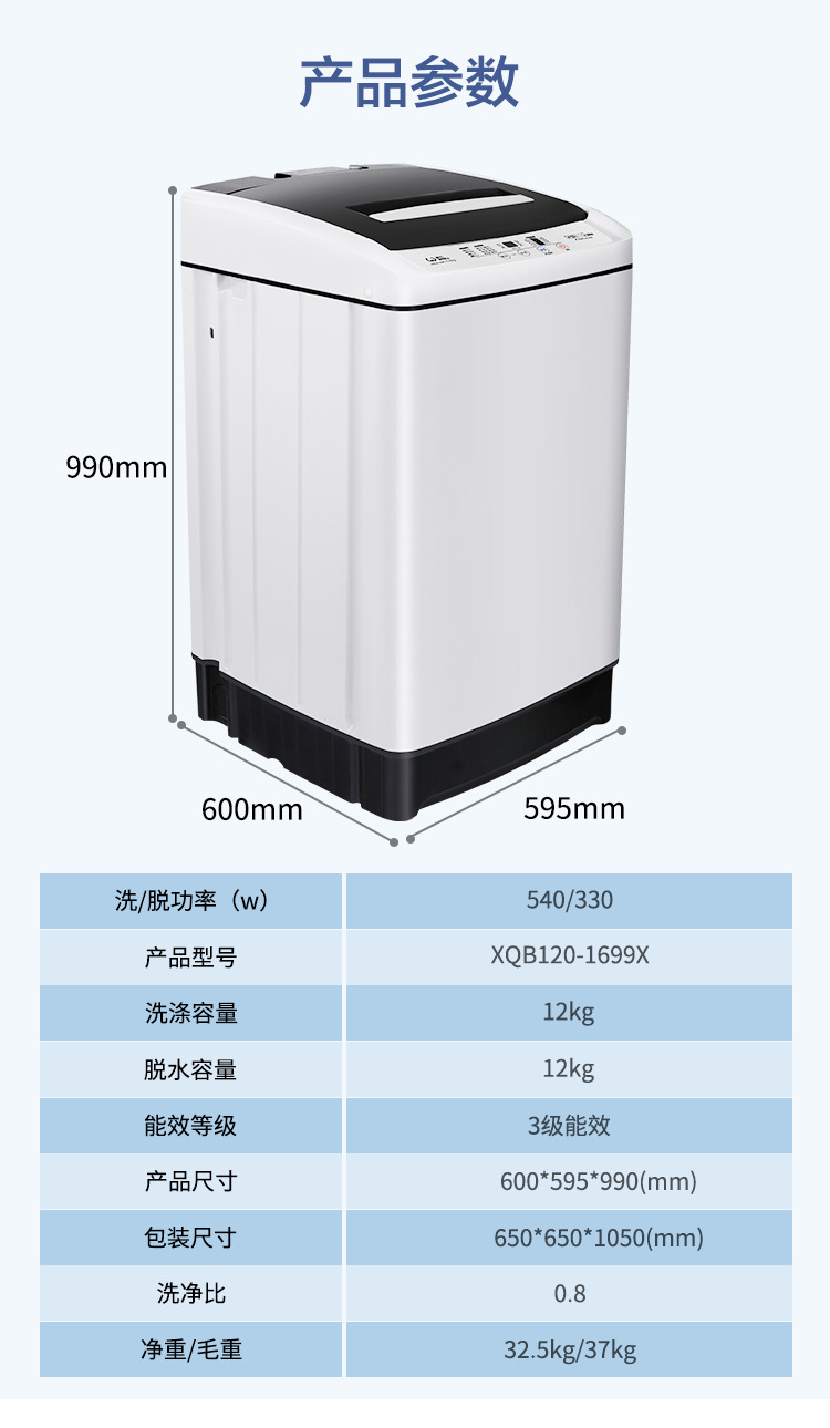 파워 12kg 완전 자동 맥동기 세탁기 대용량 가정용 13 분 빠른 세탁 옷 물 1699X