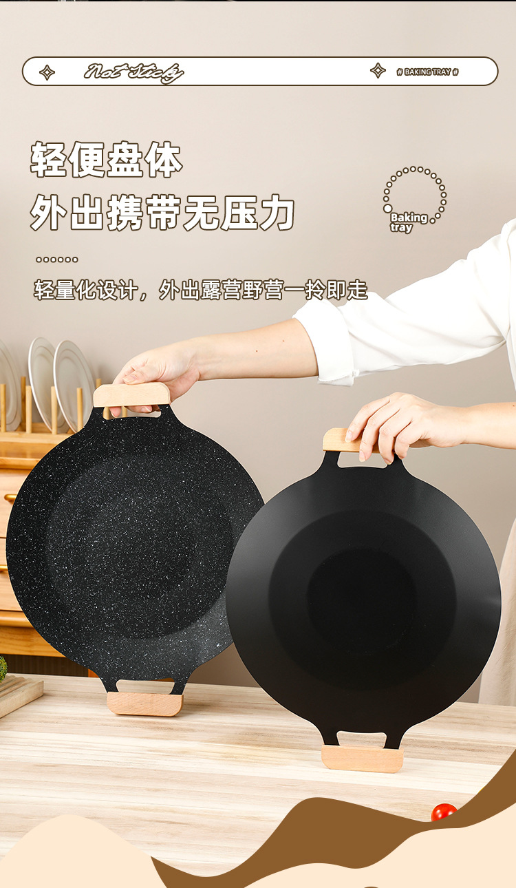 • 34cm 베이킹 팬 범용 두꺼운 (나무 손잡이)
