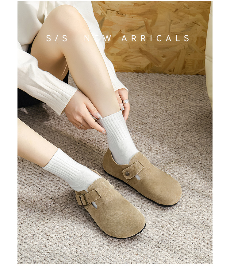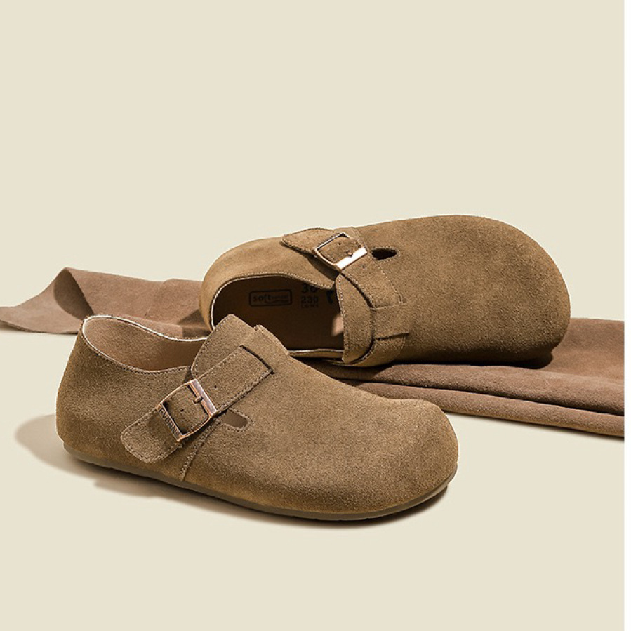 Sanxi Tongyi 전체 가죽 두꺼운 바닥 낚시 Bocken 신발 여성용 올인클루시브 싱글 레이어 신발 슬립온 아웃웨어 여성용 올인클루시브 보켄 신발