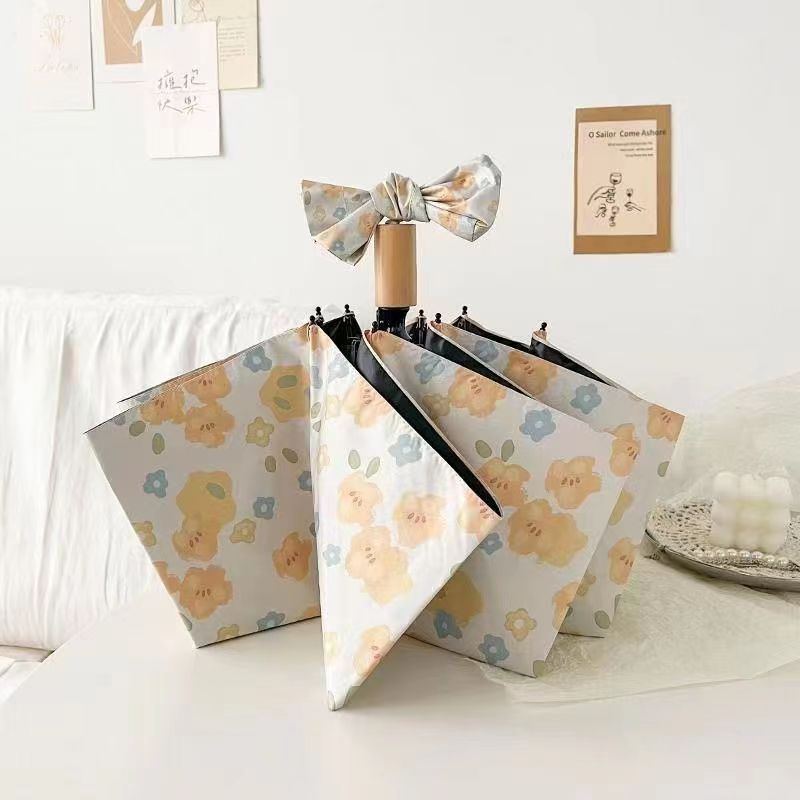 크로스 보더 작은 노란색 꽃 작은 비닐 태양 우산 차양 여성용 써니 우산 UV 이중 목적 자외선 차단제 이야기