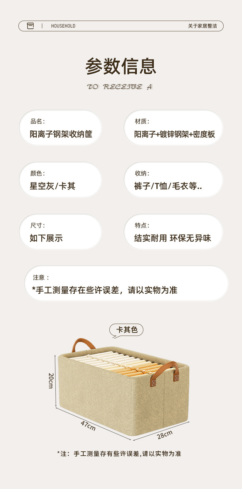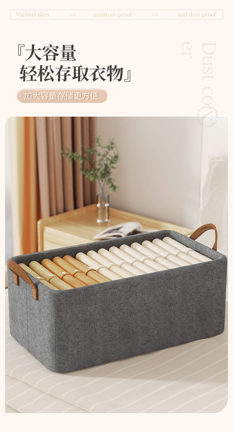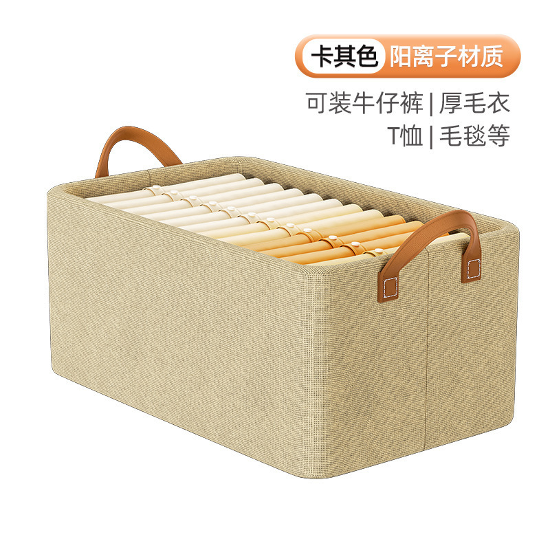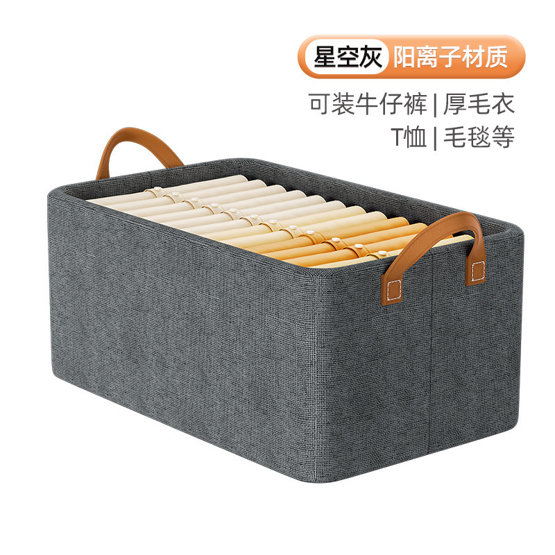 양이온 접이식 수납 바구니, 스틸 프레임 수납함, 가정용 옷장 의류 보관함, 방습 디자인 옷장