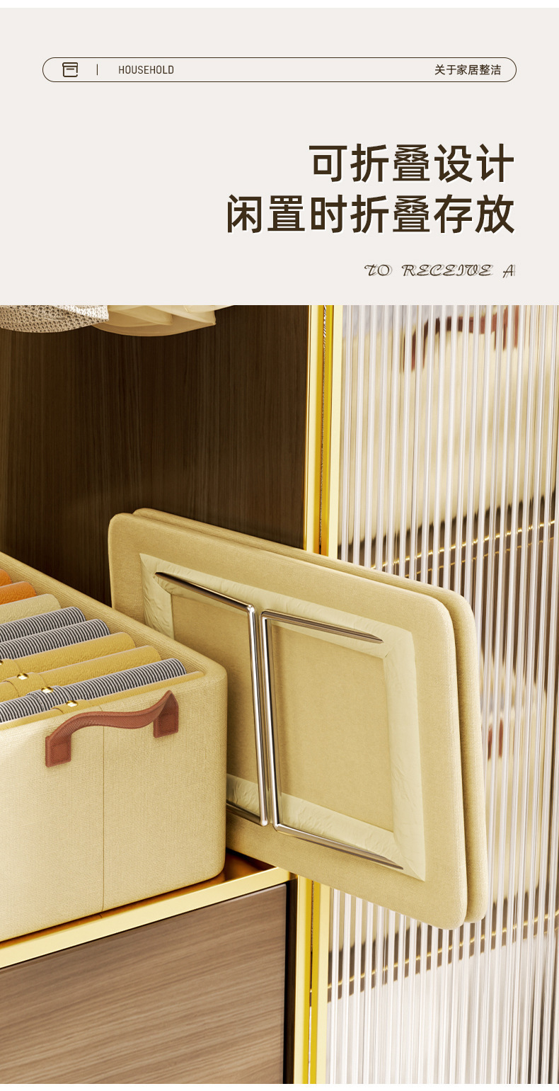양이온 접이식 수납 바구니, 스틸 프레임 수납함, 가정용 옷장 의류 보관함, 방습 디자인 옷장스토어 가기