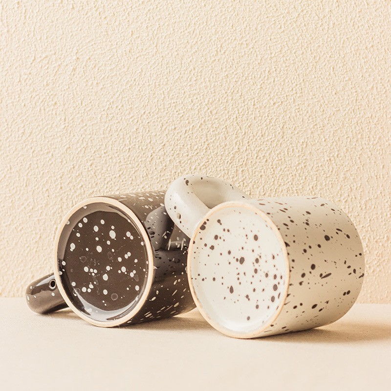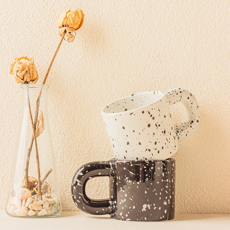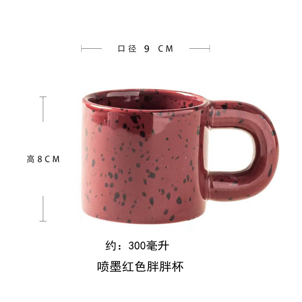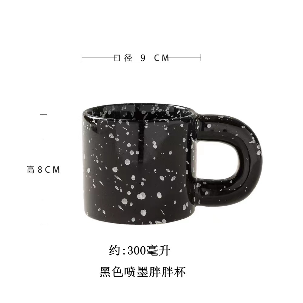 통통한 컵 한국식 인 가정용 물컵 스플래시 잉크 아침 식사 우유 오트밀 컵 세라믹 컵 심플 스팟 머그