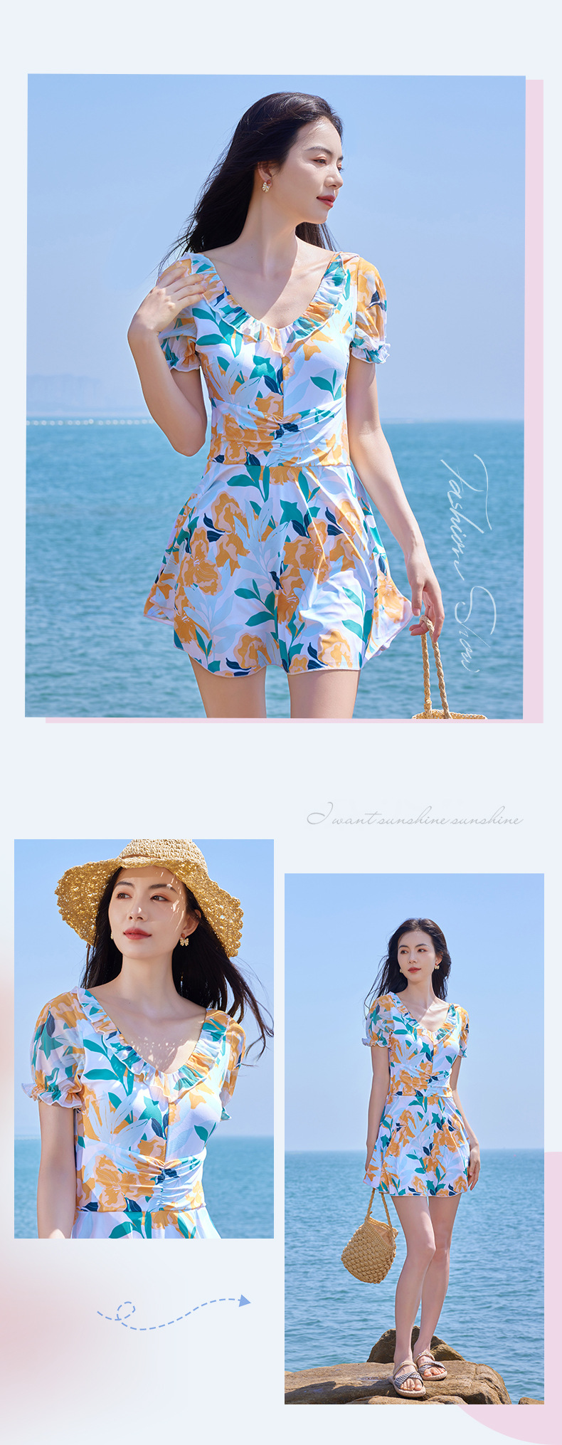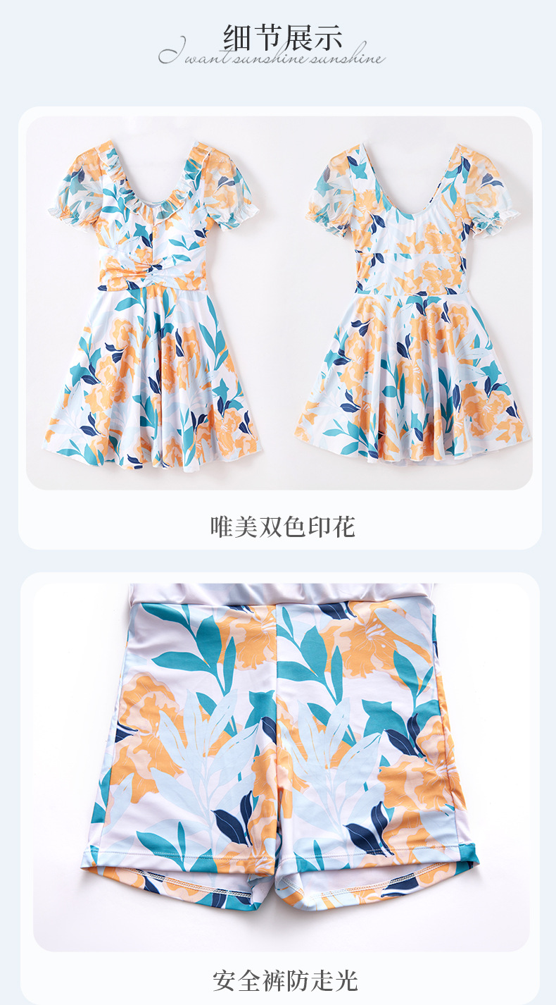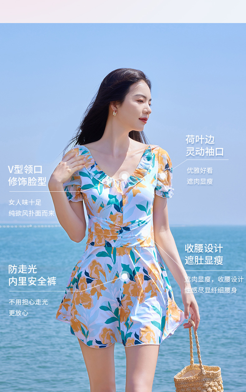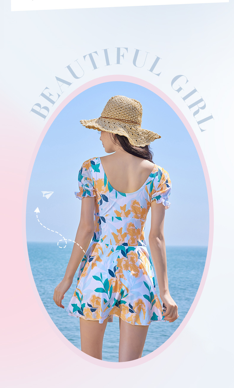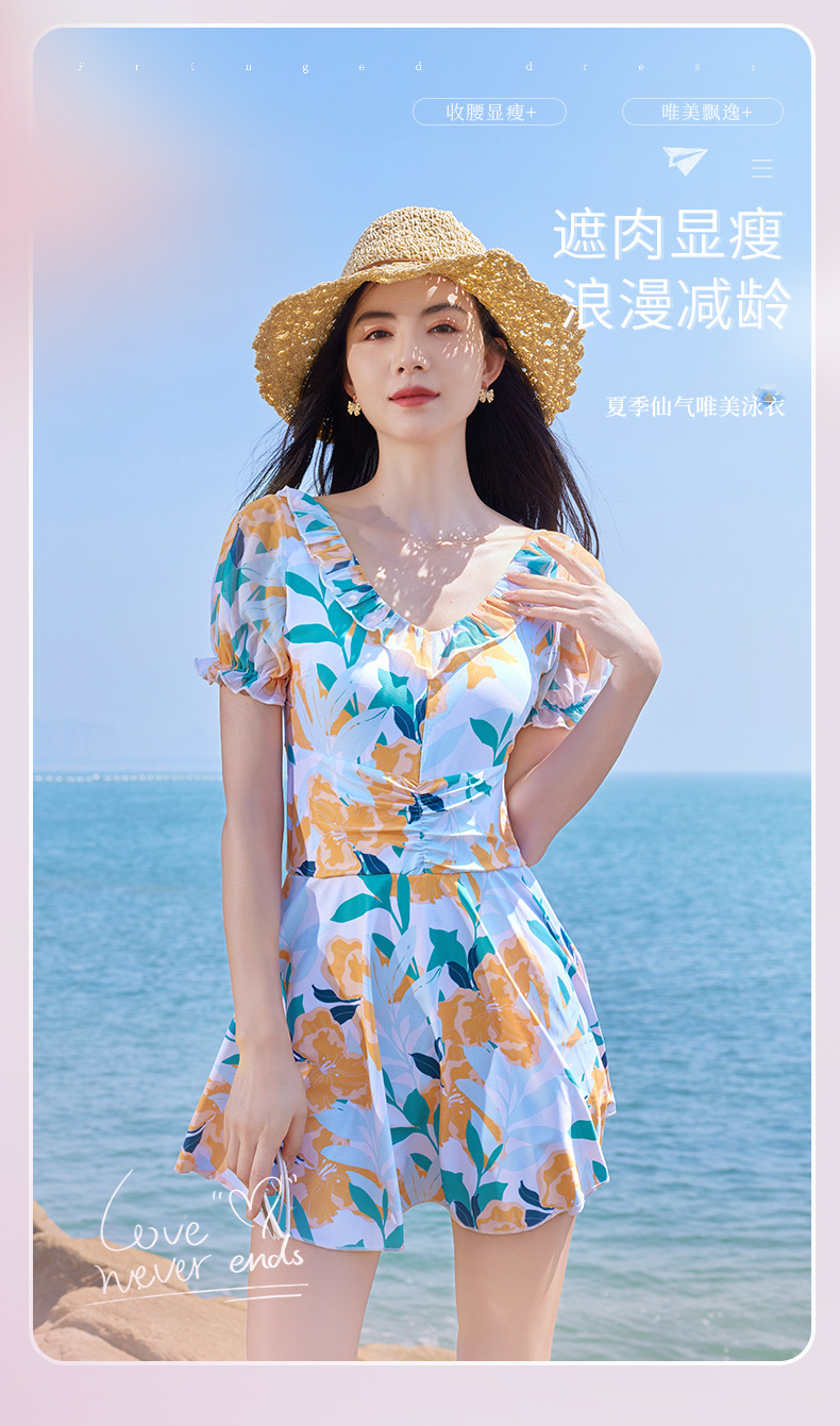 가을과 겨울 온천 여성 수영복 해변 휴가 신선한 꽃 수영복 스커트 원피스 하이 웨이스트 등이없는 수영복스토어 가기