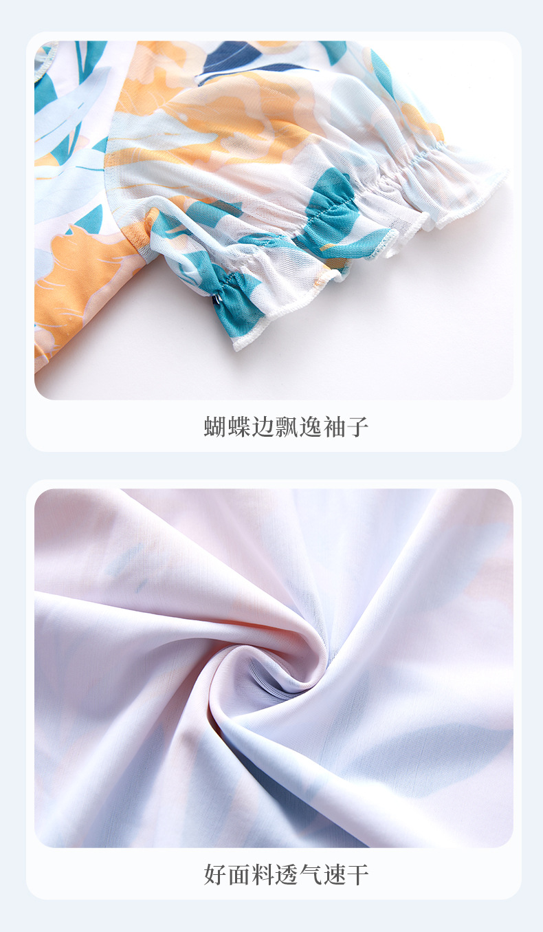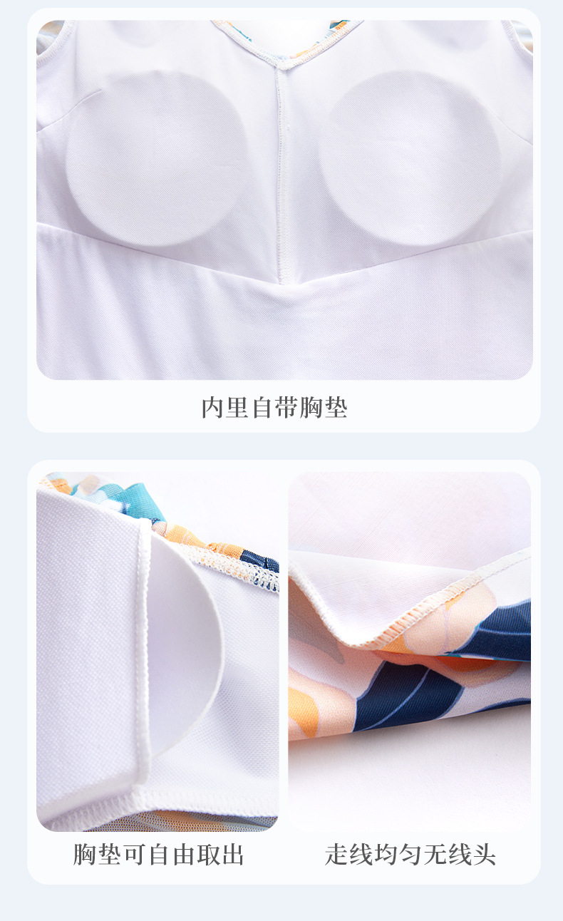 가을과 겨울 온천 여성 수영복 해변 휴가 신선한 꽃 수영복 스커트 원피스 하이 웨이스트 등이없는 수영복