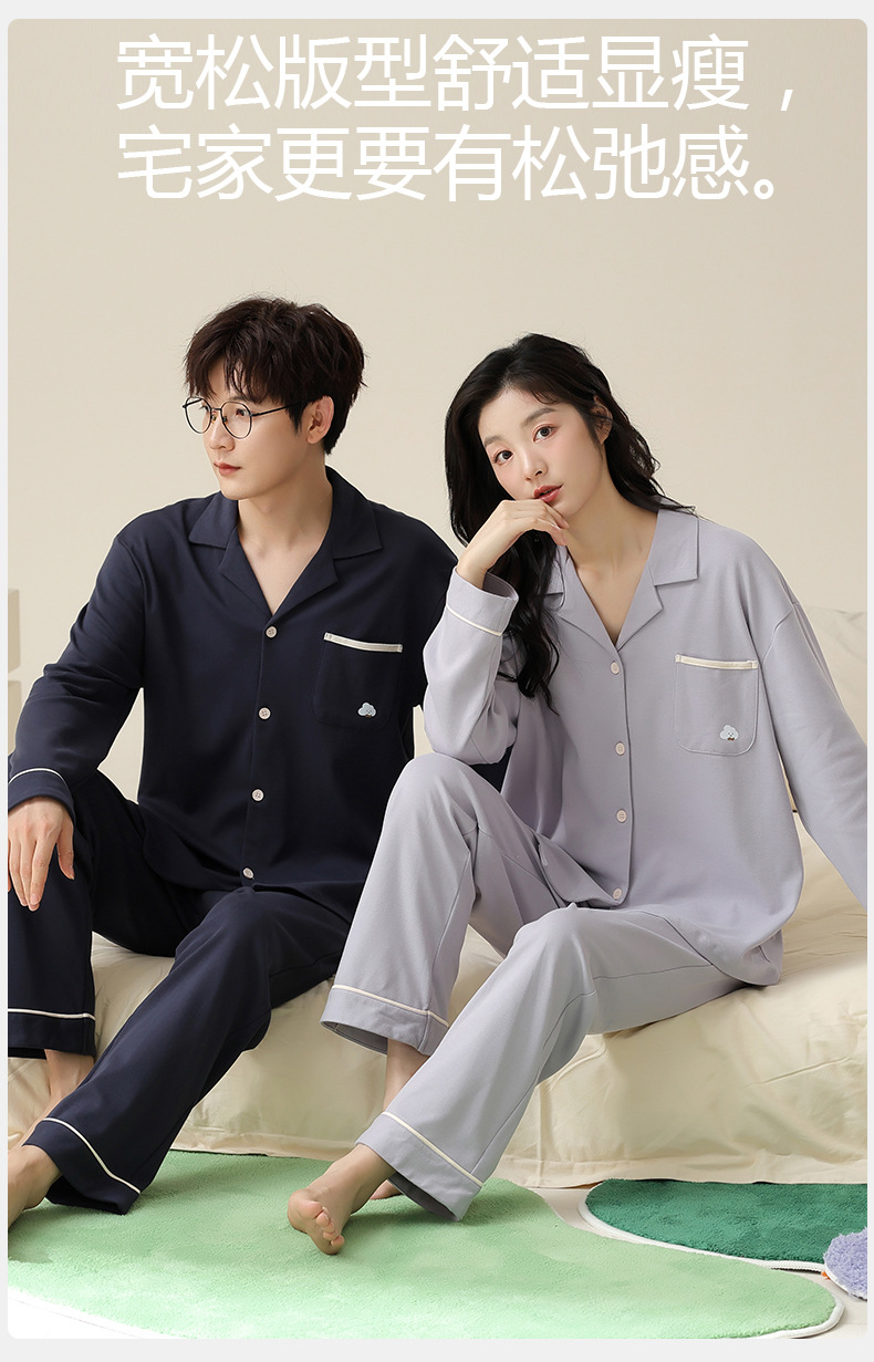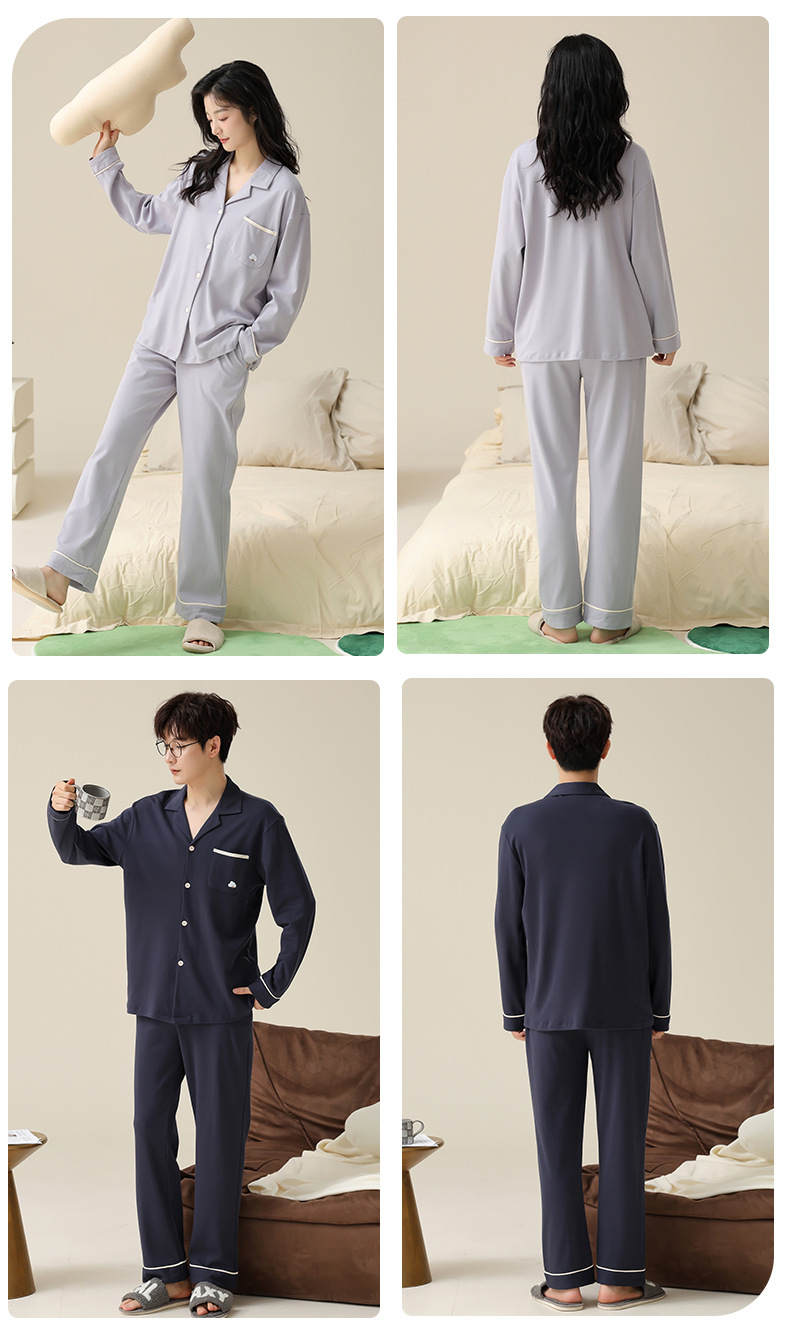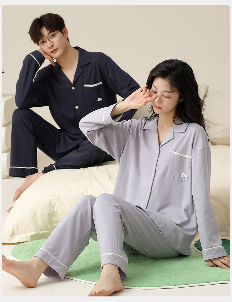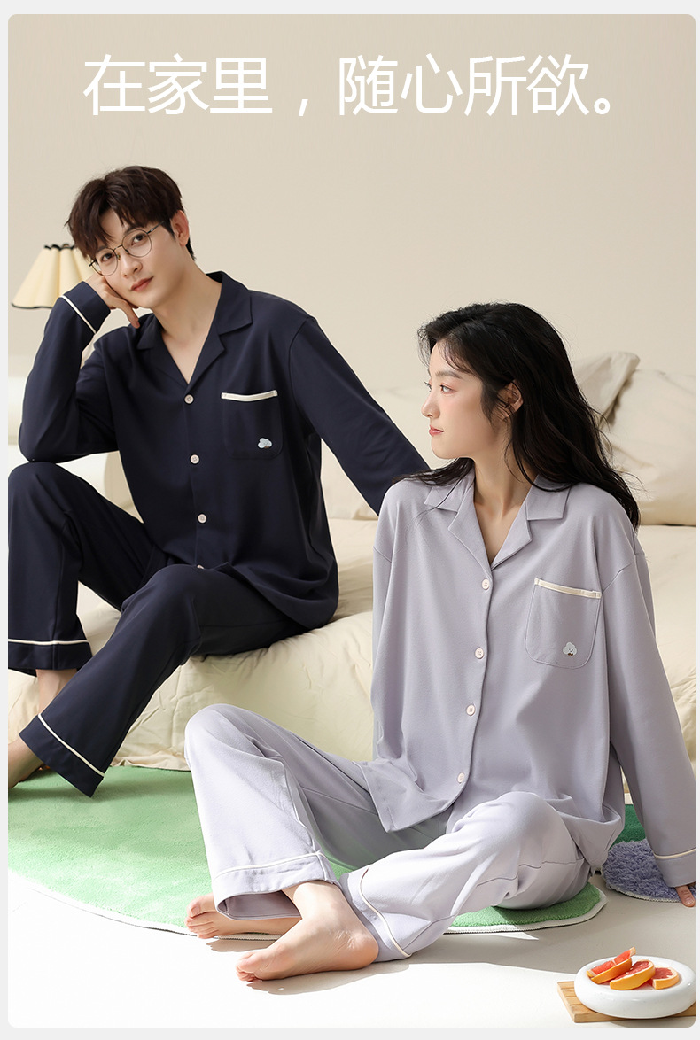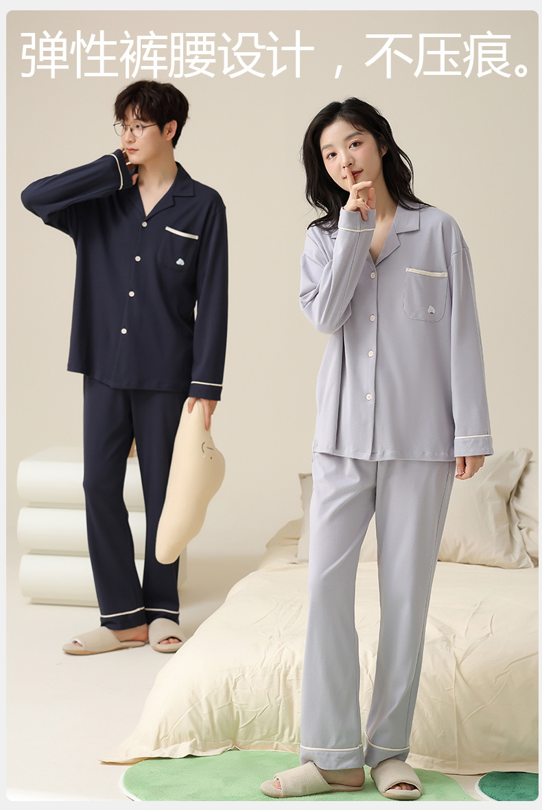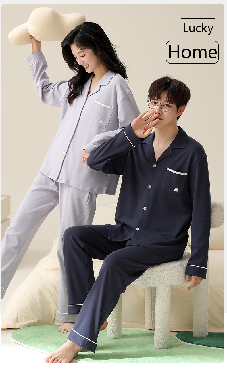 【순면】커플 잠옷 여성용 봄 가을 겨울용 가디건 심플 스타일 긴팔 홈웨어 남성용 투피스 세트스토어 가기